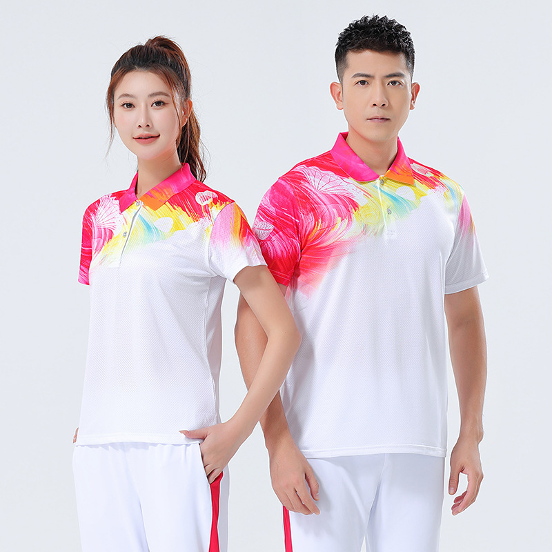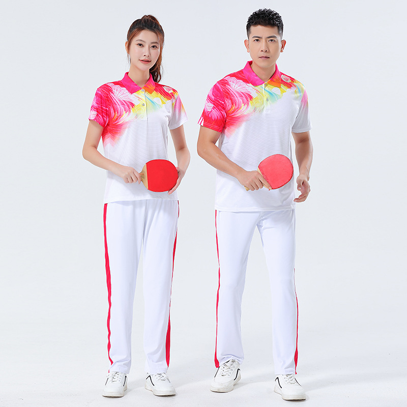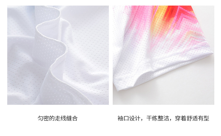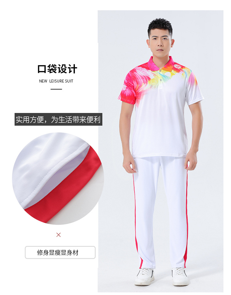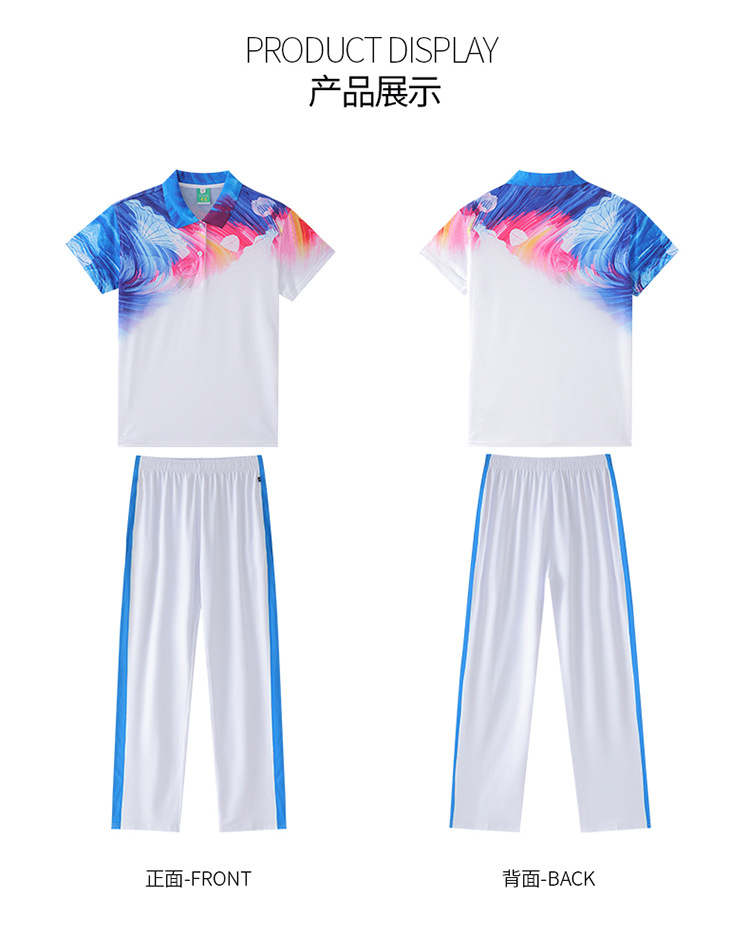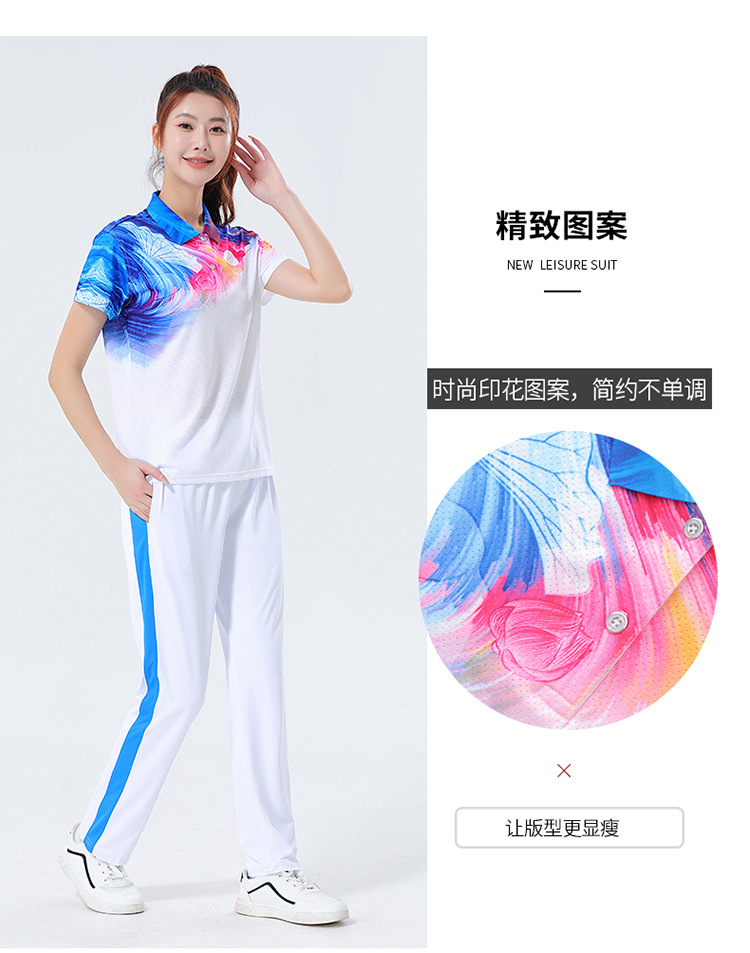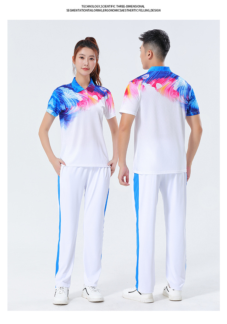 칭웨이 스퀘어 댄스 운동복 여성용 속건성 반팔 세트 남성용 공연복 워킹팀 상의 여름용 초박형 모델
