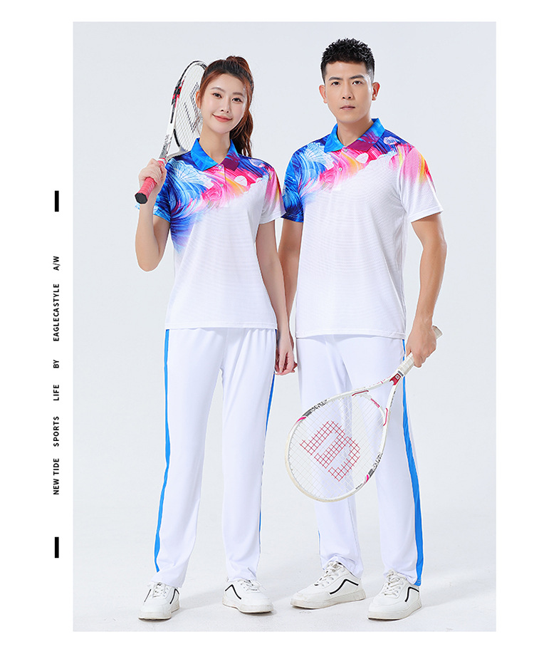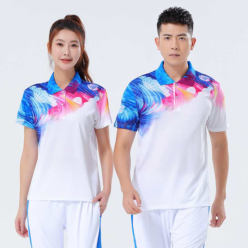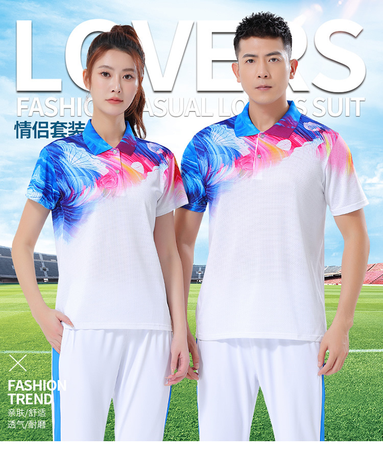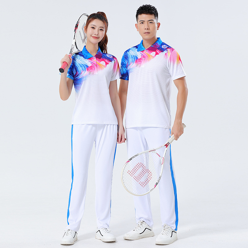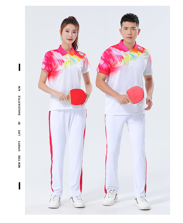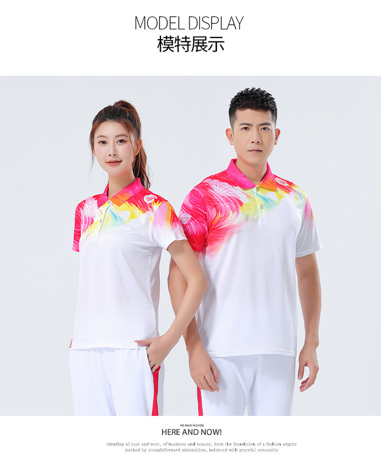 칭웨이 스퀘어 댄스 운동복 여성용 속건성 반팔 세트 남성용 공연복 워킹팀 상의 여름용 초박형 모델