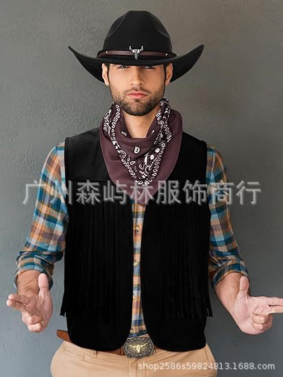국경을 넘는 유럽과 미국의 새로운 할로윈 7080 년대 서양 데님 남자 짧은 술 조끼 히피 조끼스토어 가기