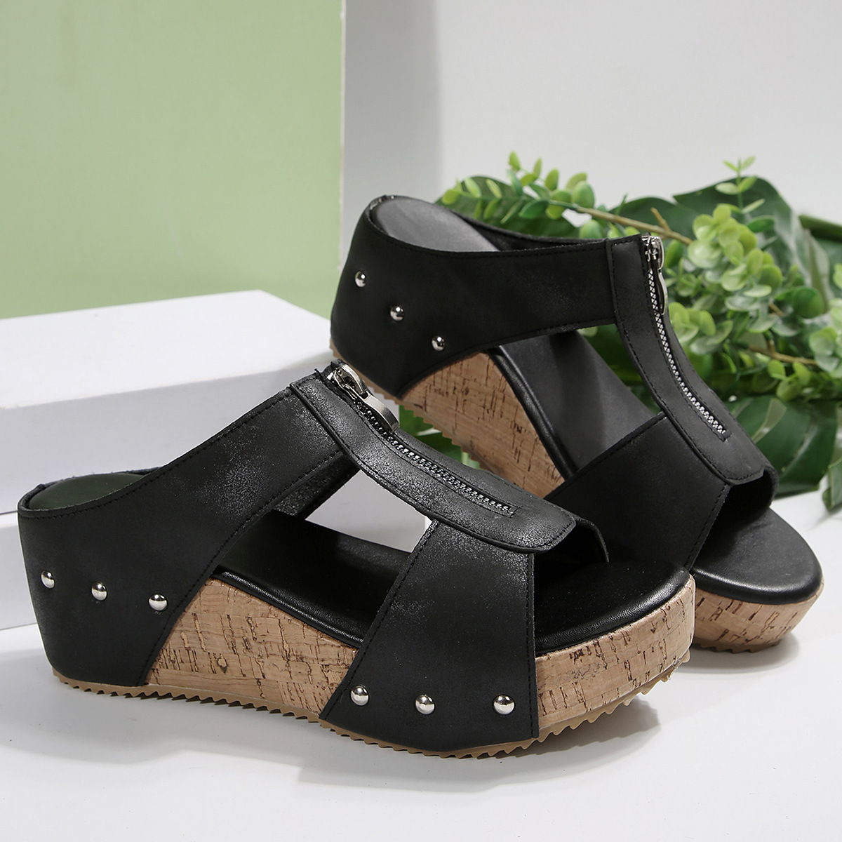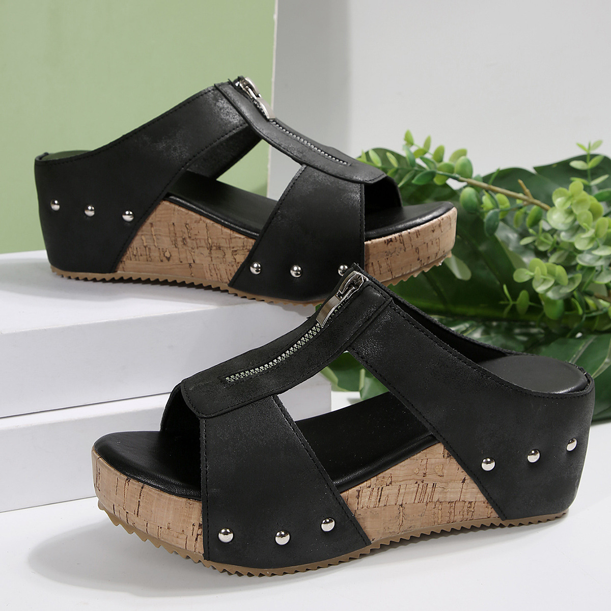 2025 새로운 대외 무역 여름 여성 두꺼운 밑창 웨지 슬리퍼 크로스 보더 대형 물고기 입 웨지 슬리퍼 여성 신발 도매스토어 가기