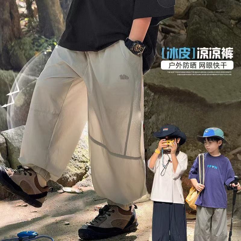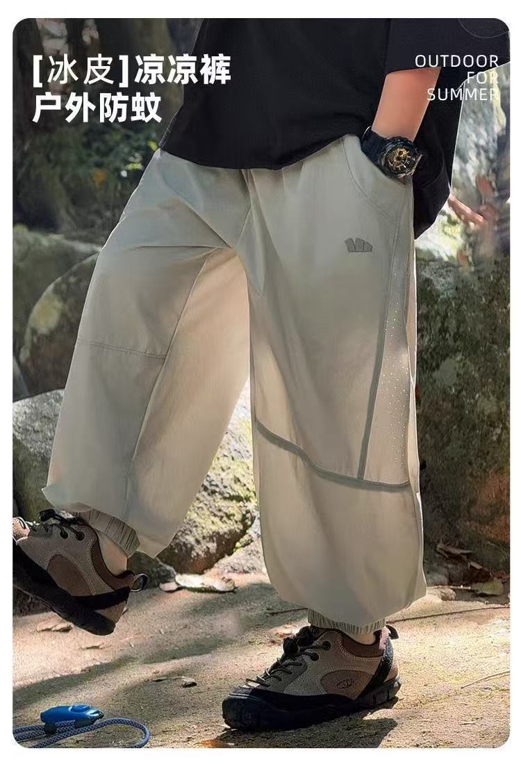 소년 모기 방지 바지 통기성 메쉬 2025 여름 새로운 스타일 중대형 어린이 얇은 바지 소년 캐주얼 느슨한 바지