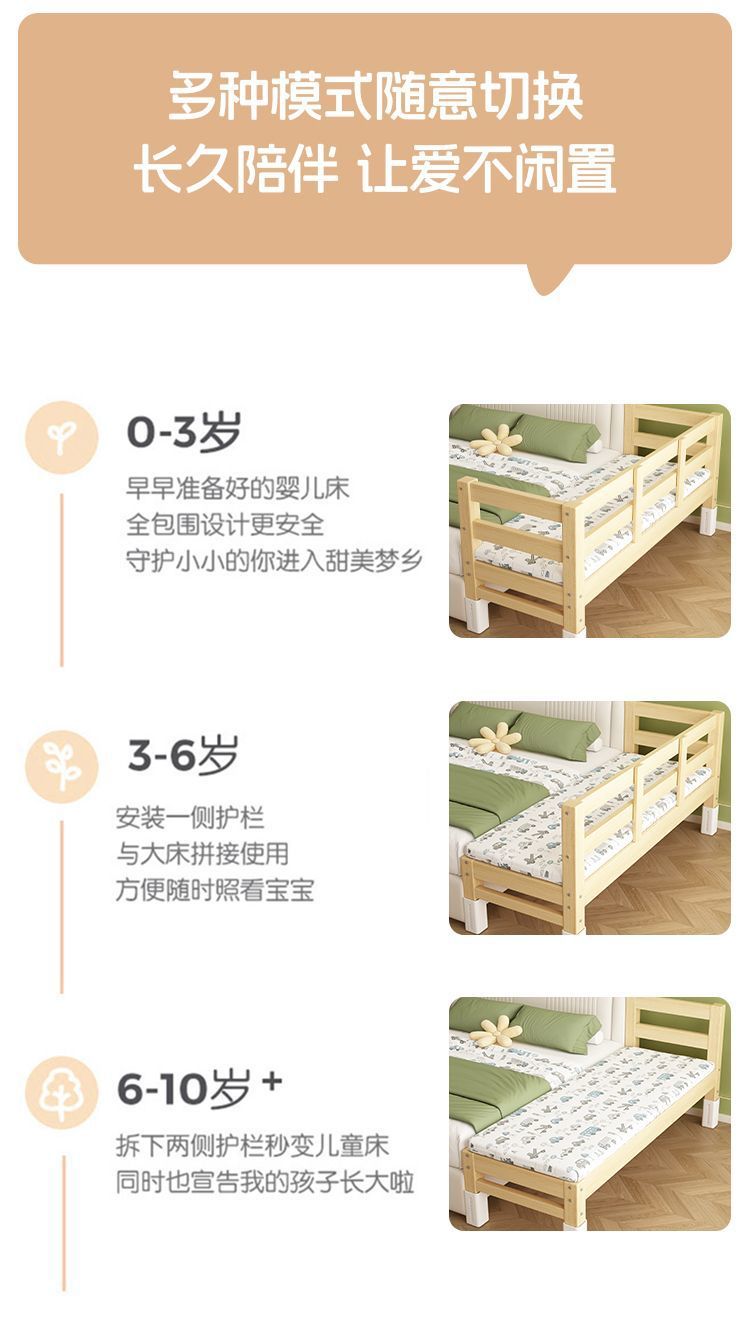 침대 옆을 넓혀 아기를 위한 확장형 아기 침대, 성인이 잠을 잘 수 있는 조절 가능한 원목 유아용 침대, 어린이용 접합 침대
