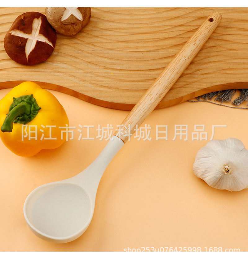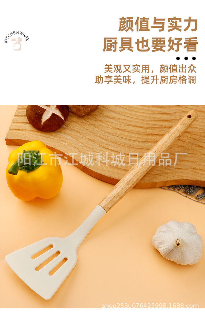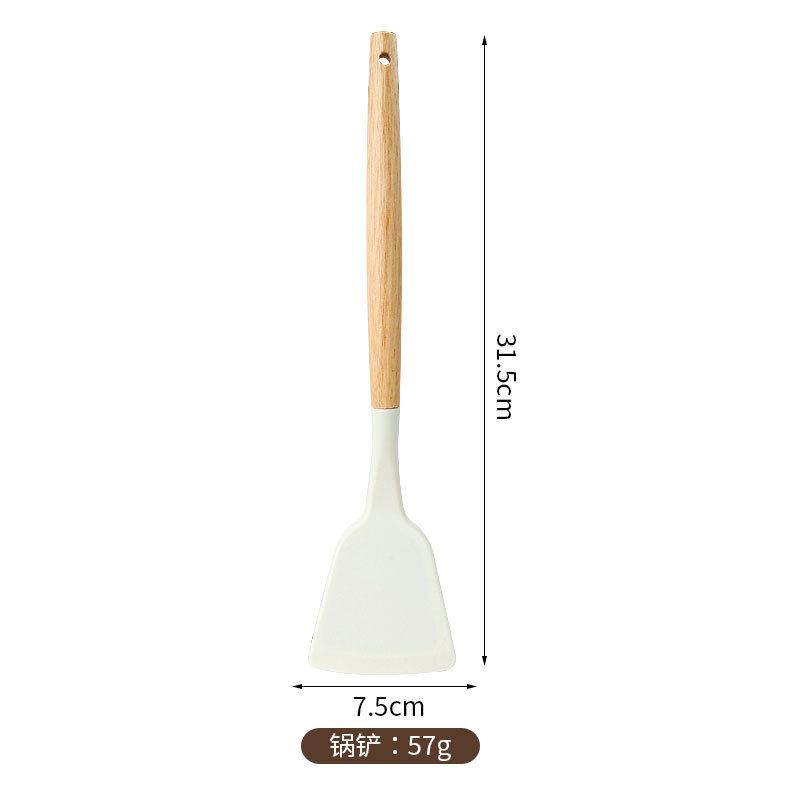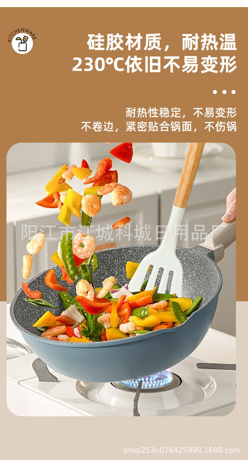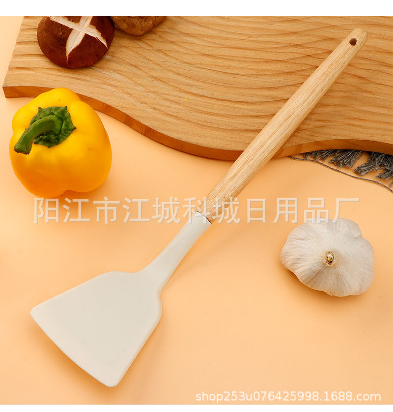 주방용 특수 요리 주걱, 식품 등급 고온 방지 프라이팬 주걱 및 스푼 요리 세트용 화상 방지 나무 손잡이 실리콘 주걱