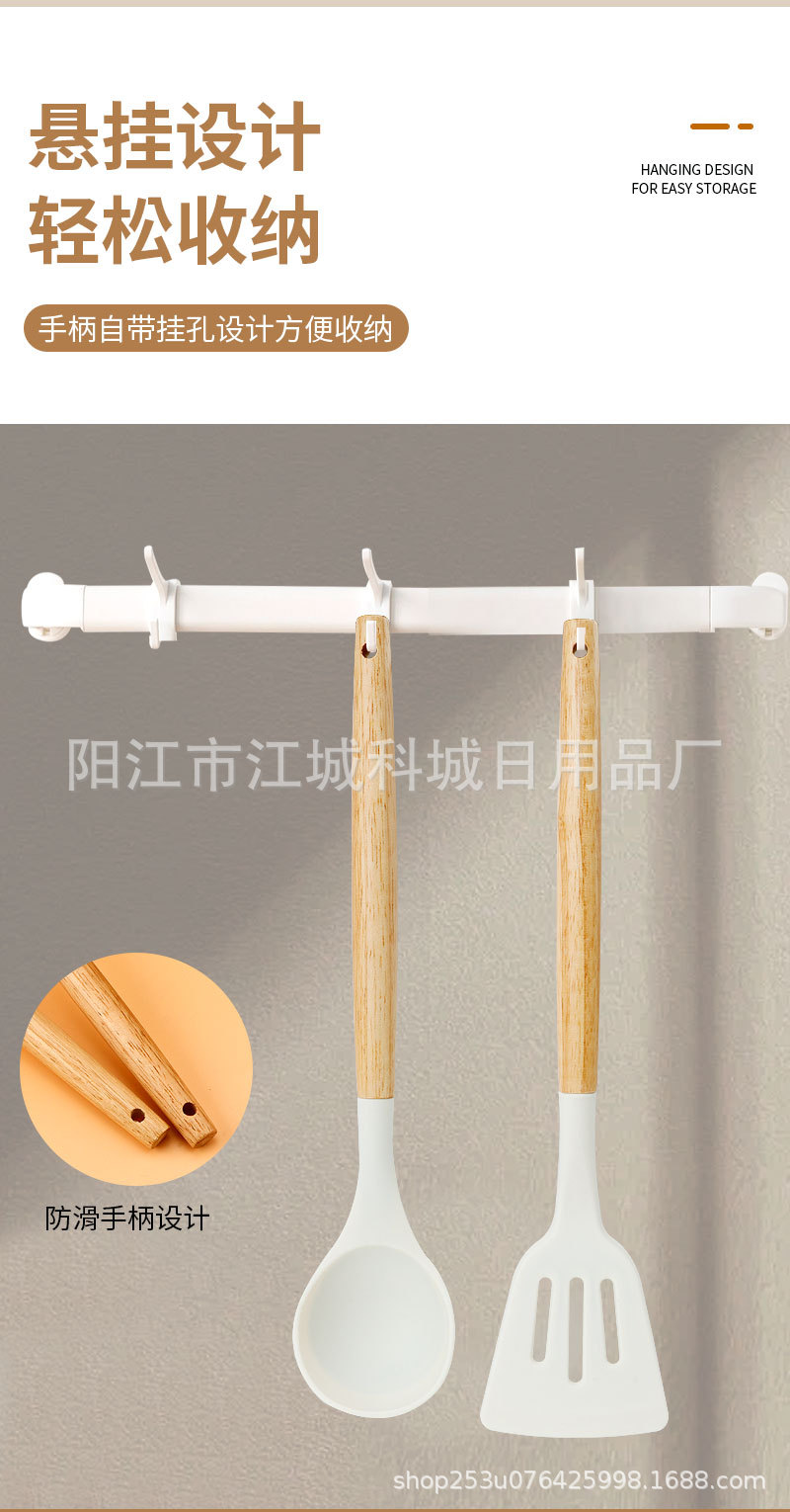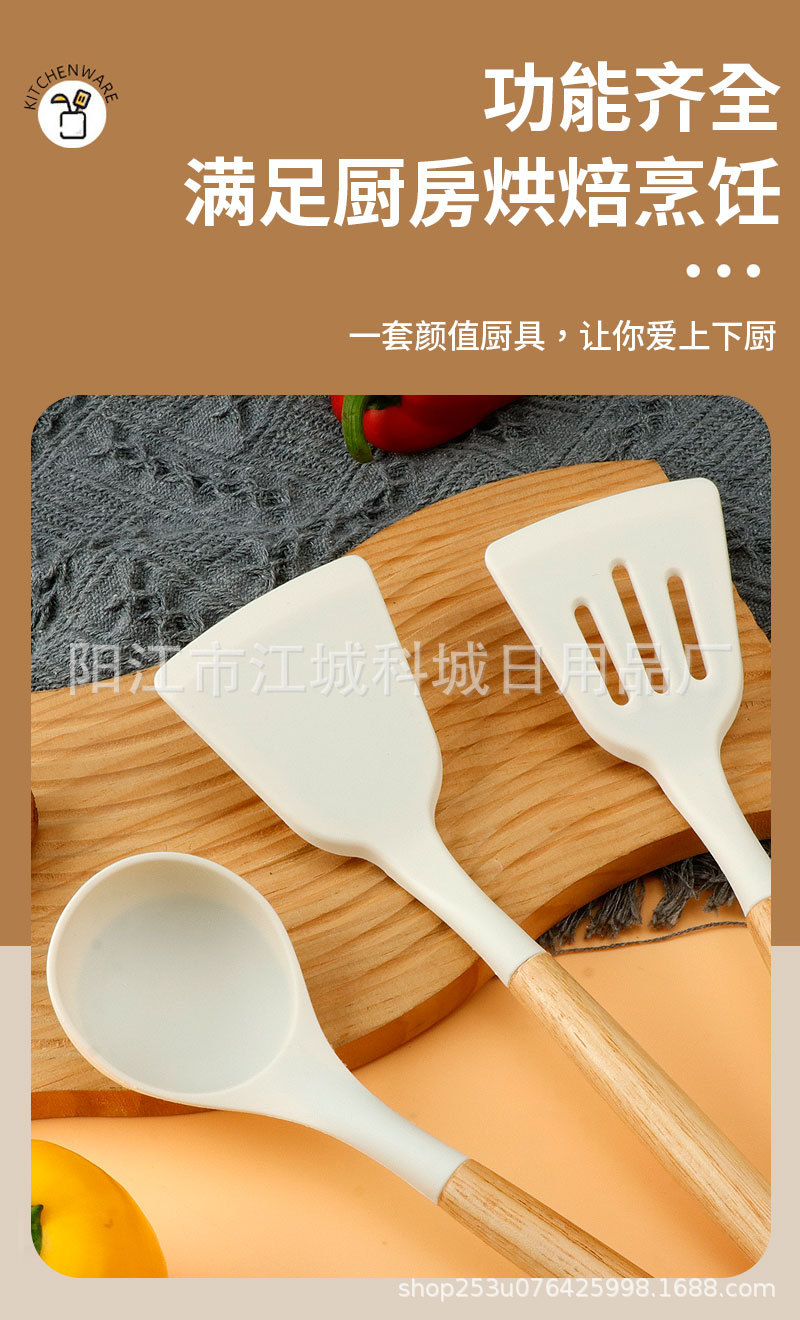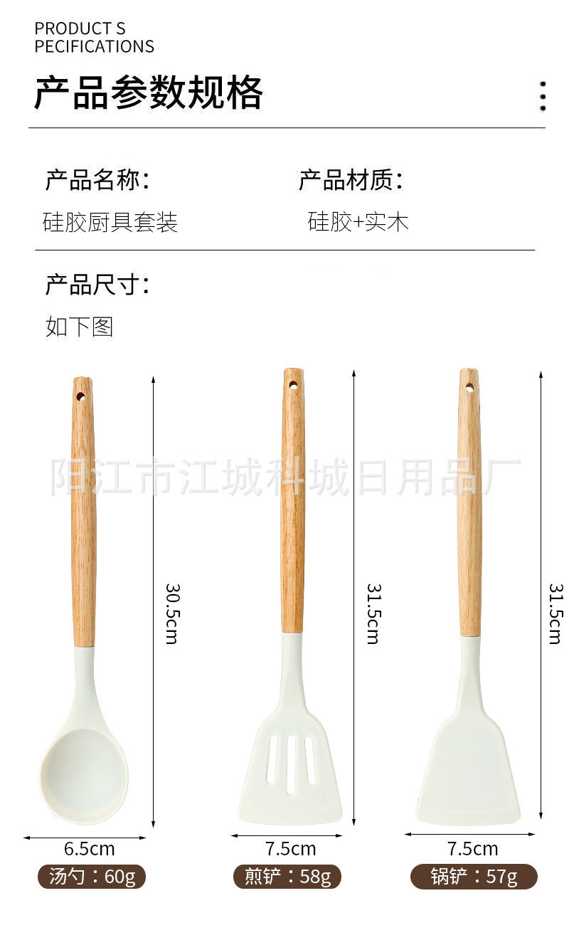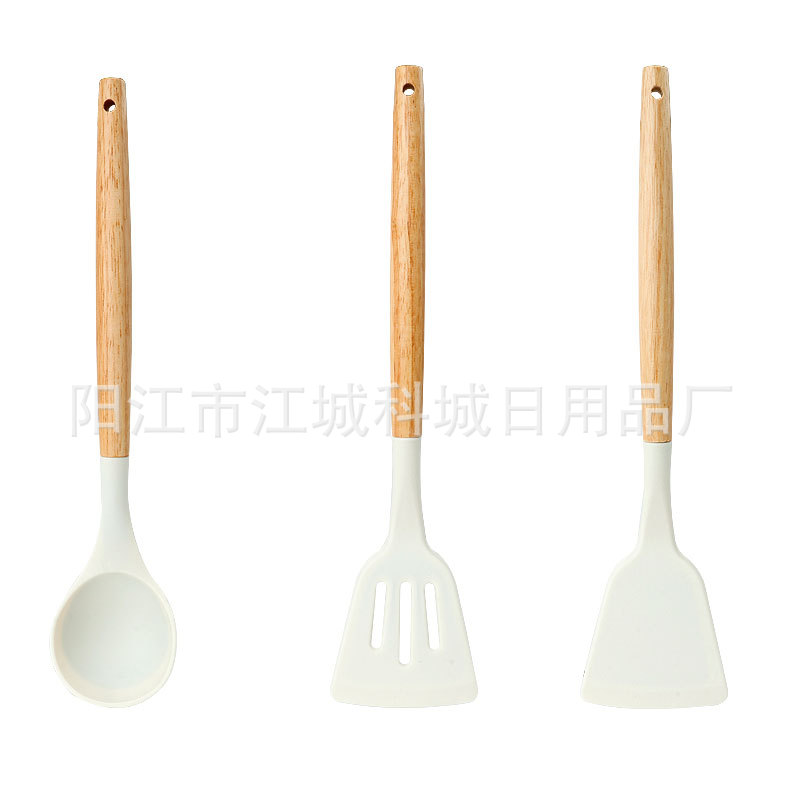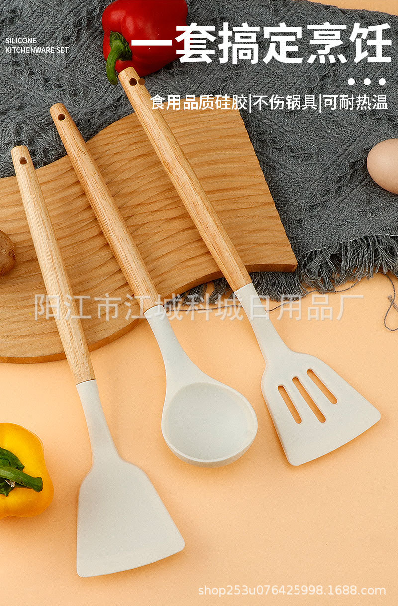 주방용 특수 요리 주걱, 식품 등급 고온 방지 프라이팬 주걱 및 스푼 요리 세트용 화상 방지 나무 손잡이 실리콘 주걱