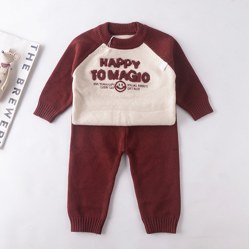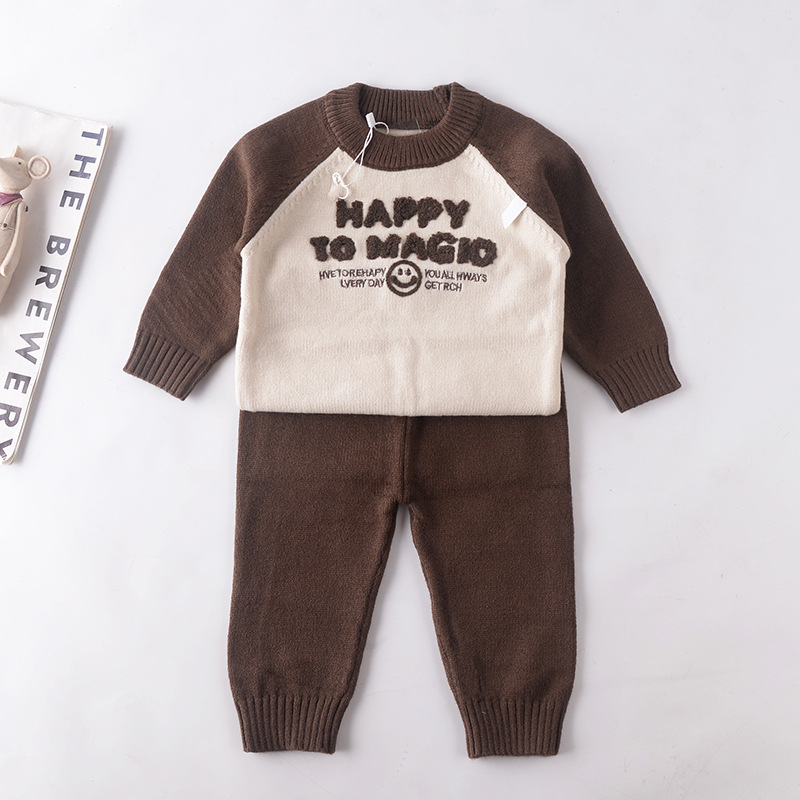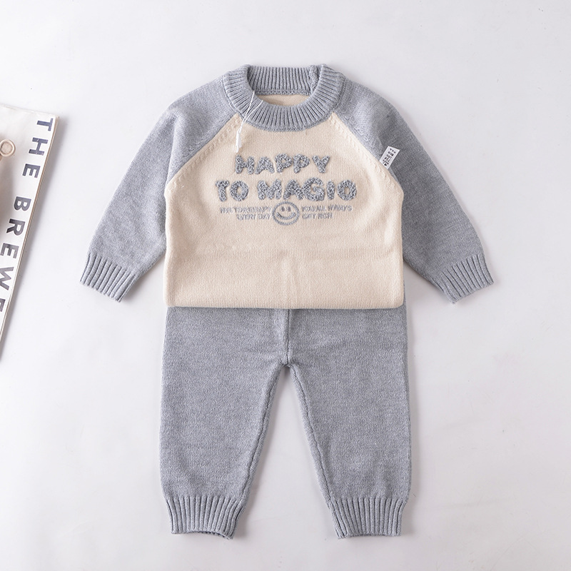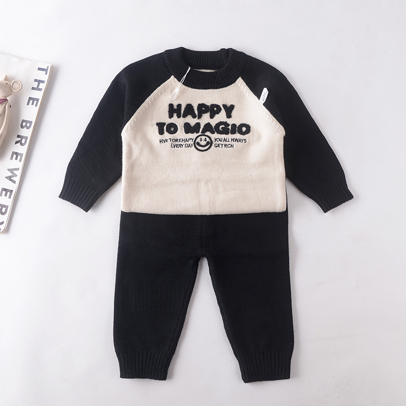 아기 한국식 스웨터 2025 가을 신작 유아 및 어린이 투피스 세트 아기 편지 스타일 어린이 스웨터 세트
