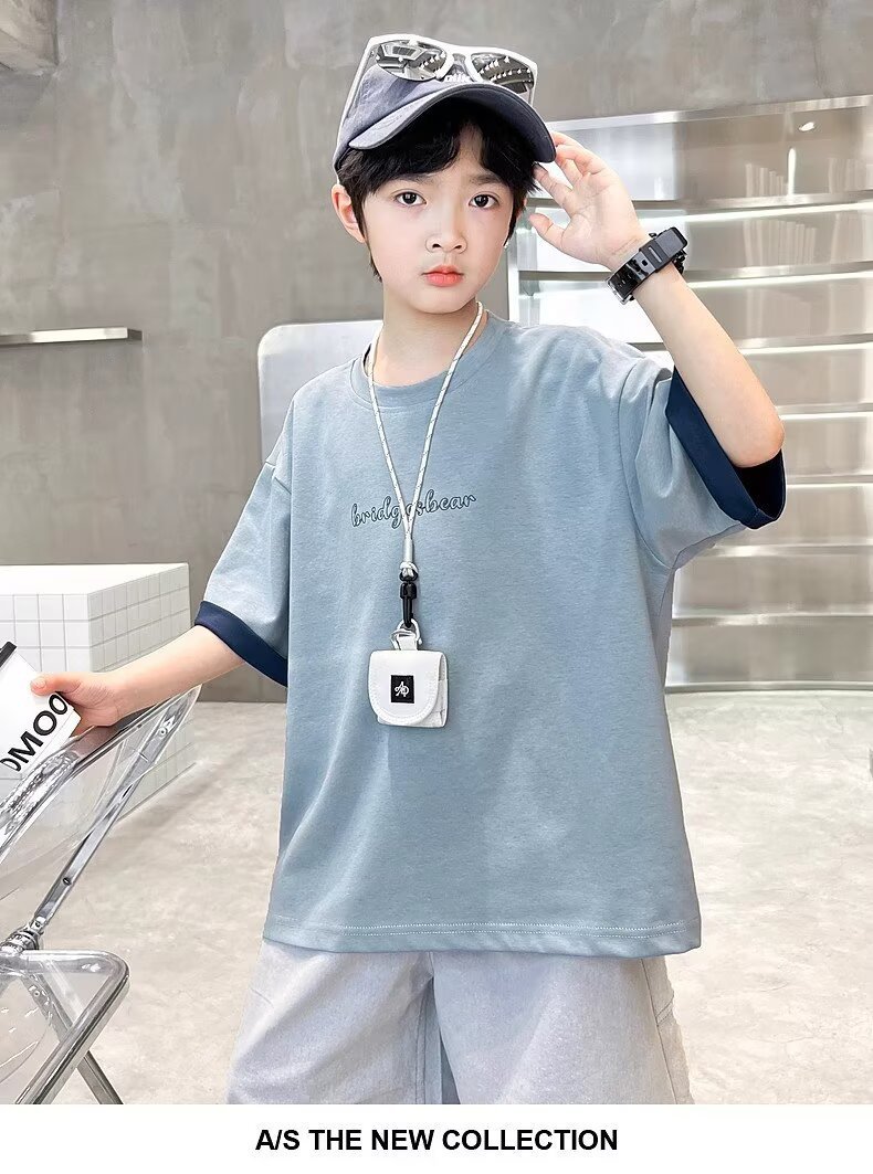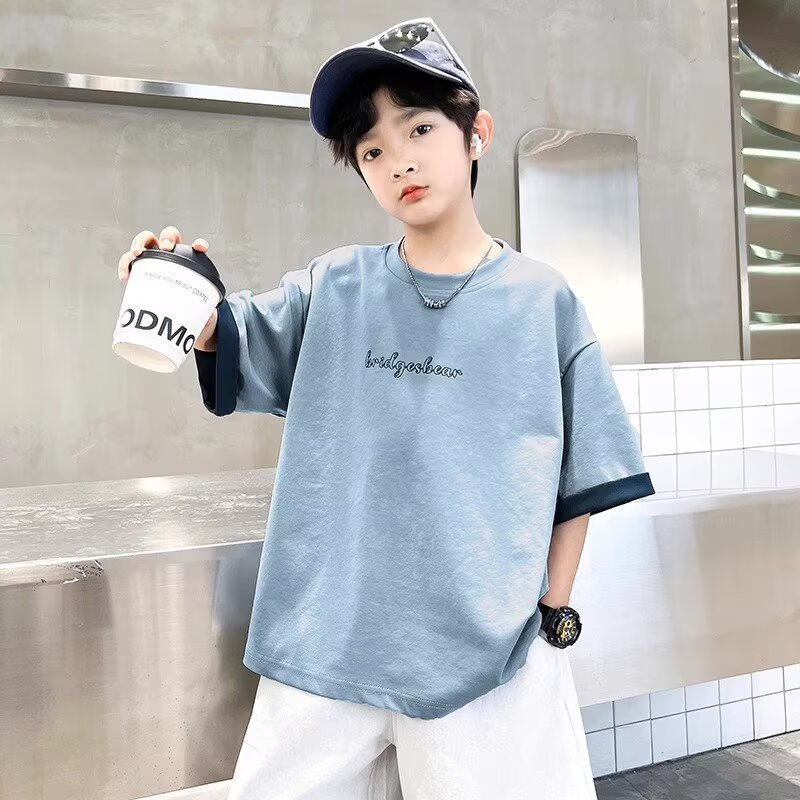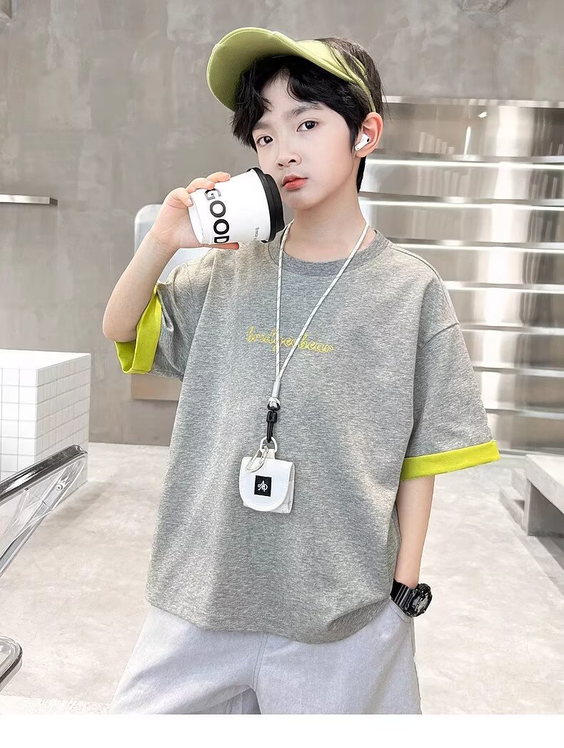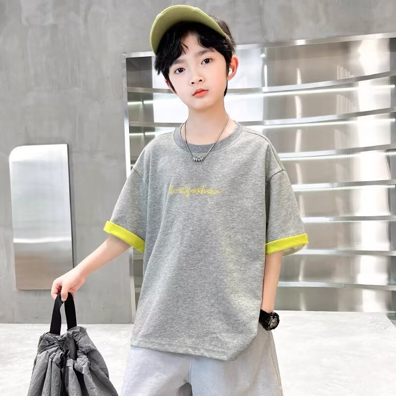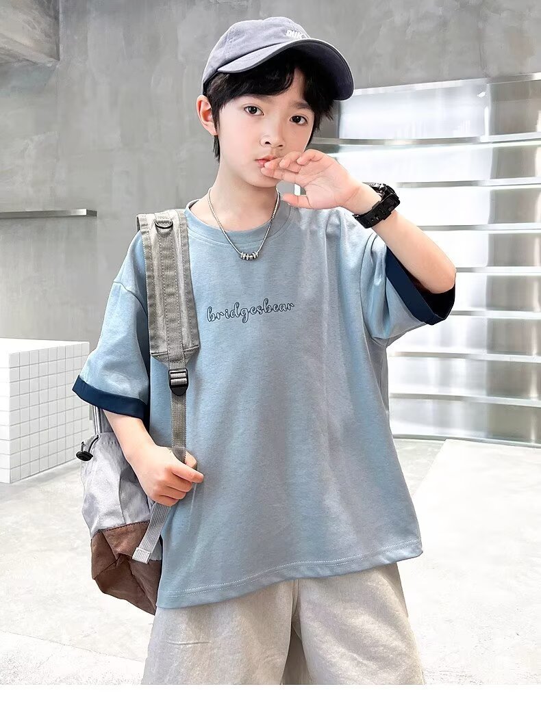 소년 여름 반팔 티셔츠 2025 새로운 중대형 어린이 소년 여름 탑 잘 생긴 얇은 스타일 유행 브랜드 t스토어 가기