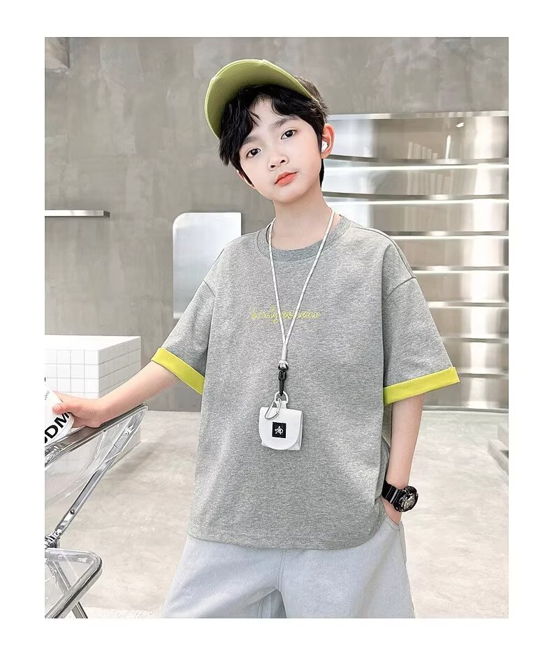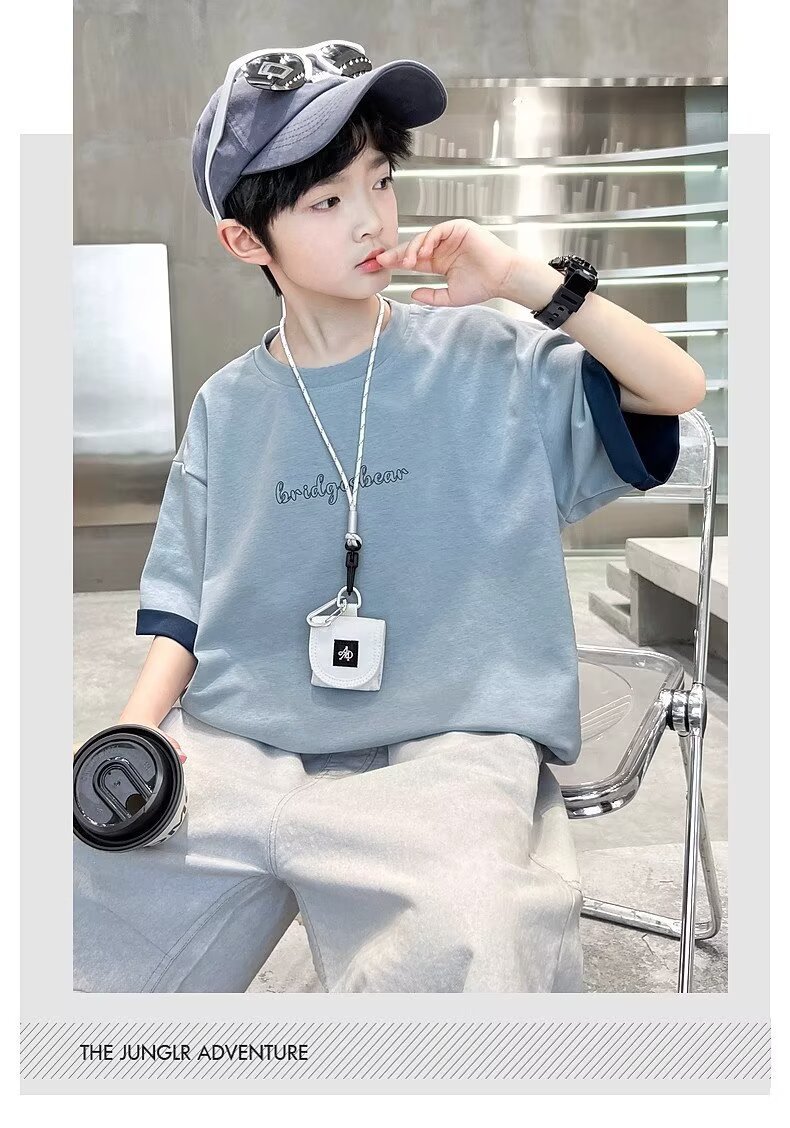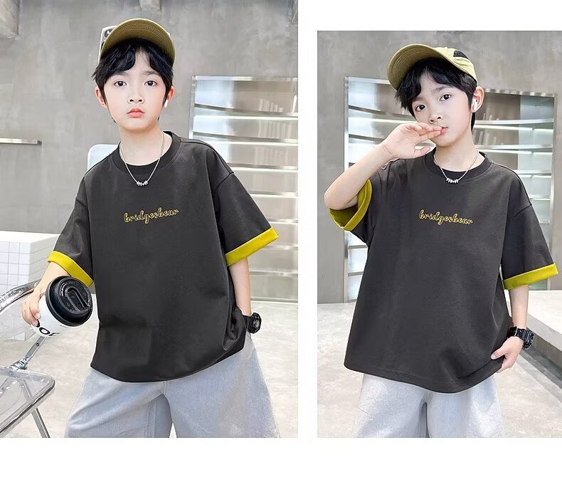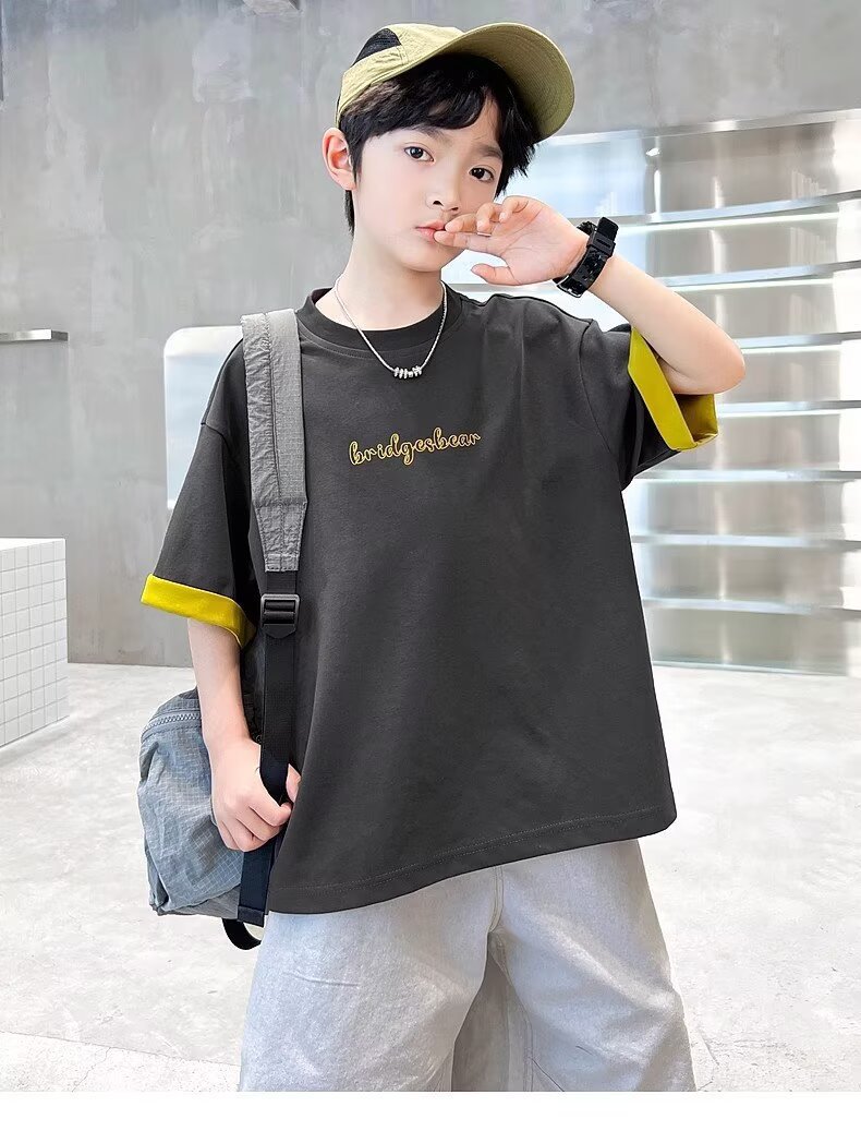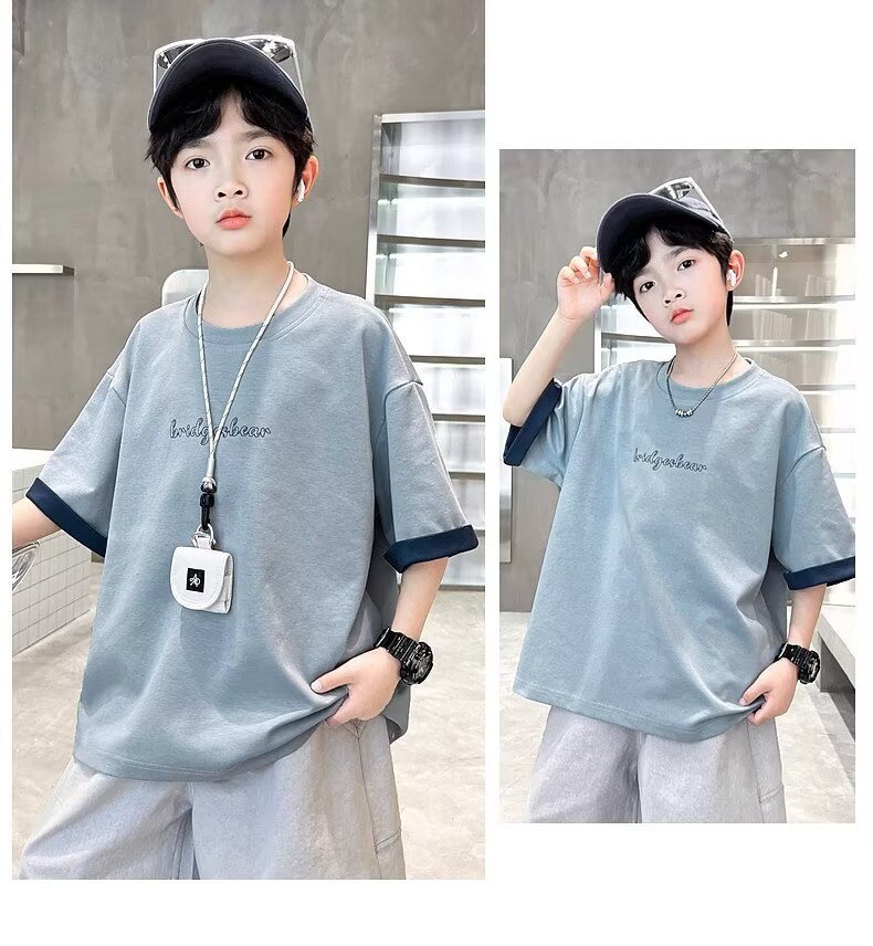 소년 여름 반팔 티셔츠 2025 새로운 중대형 어린이 소년 여름 탑 잘 생긴 얇은 스타일 유행 브랜드 t스토어 가기