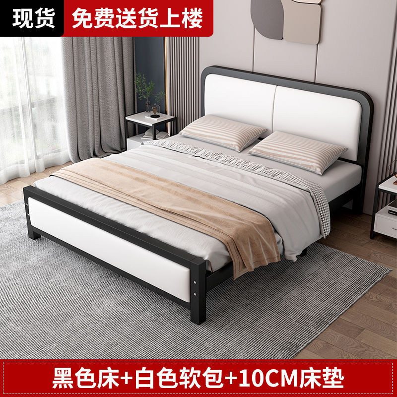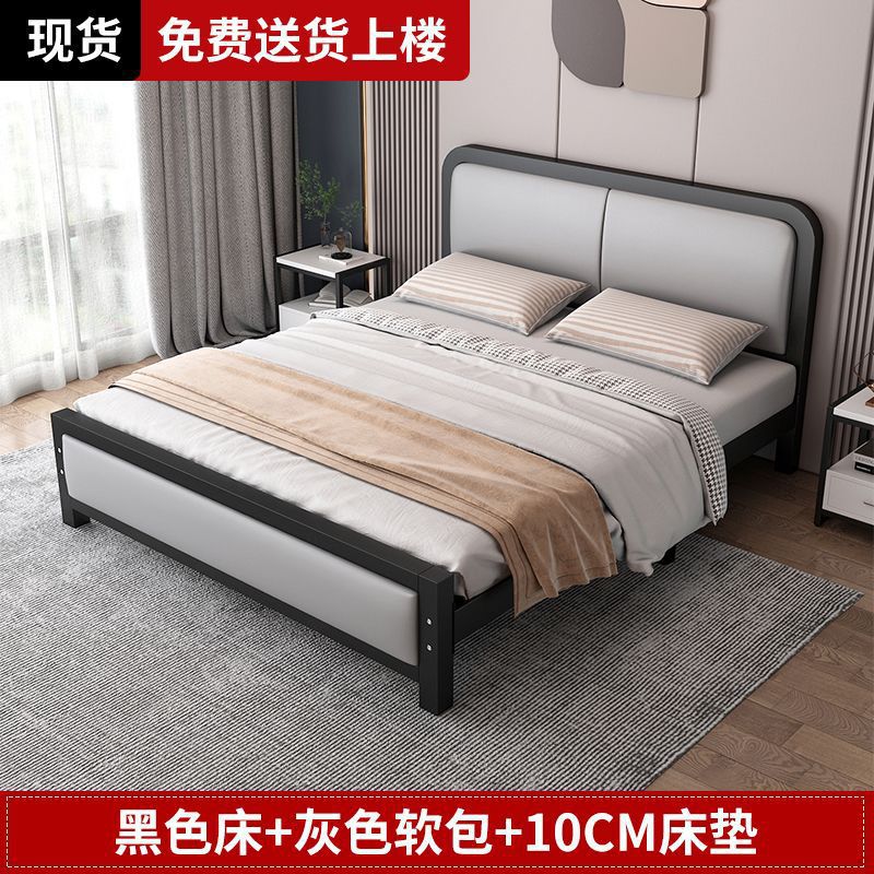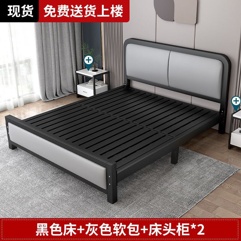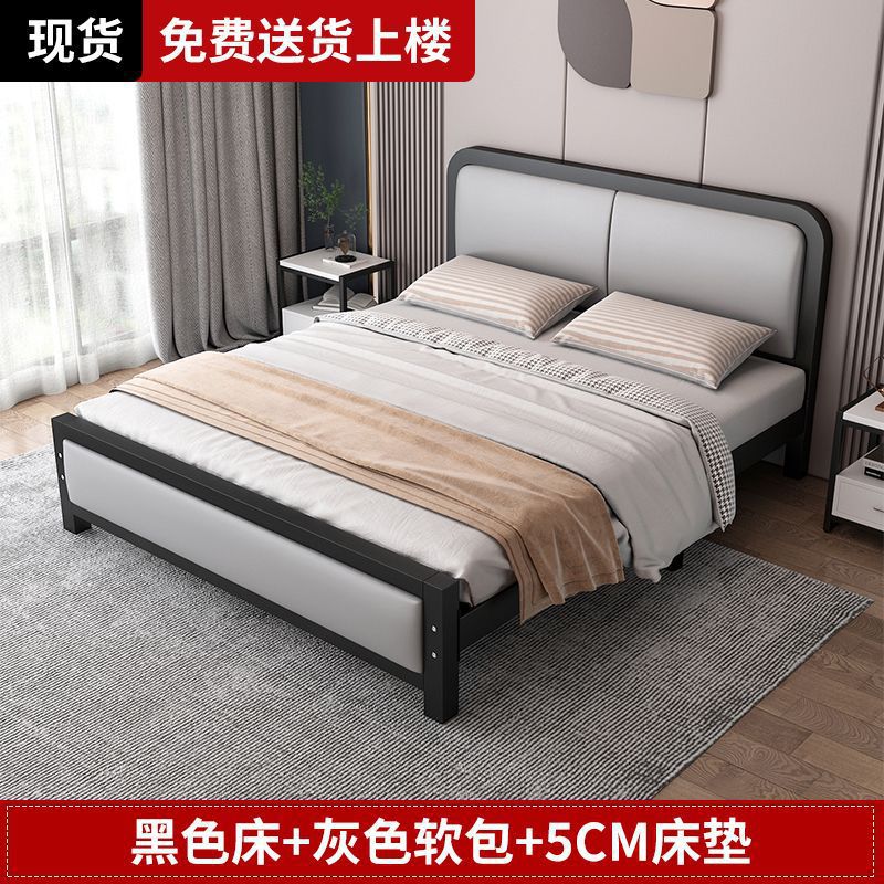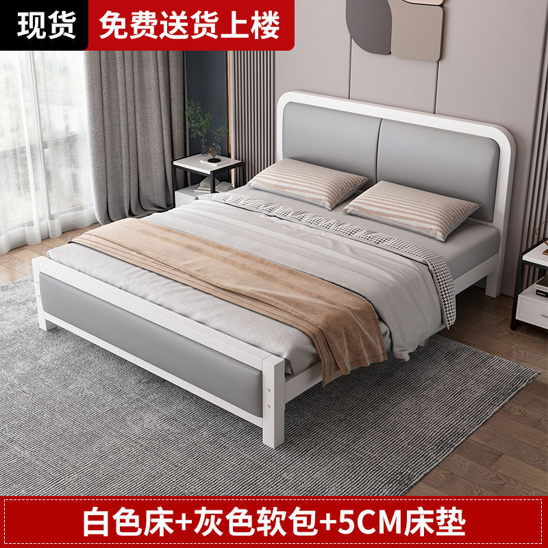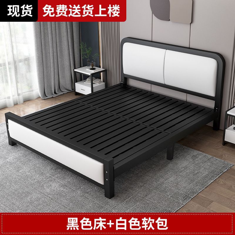 철제 침대 더블 침대 현대 간단한 싱글 철 프레임 침대 임대실 스테인레스 스틸 철 프레임 가정용 1.528m스토어 가기