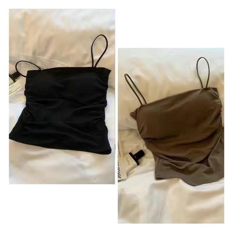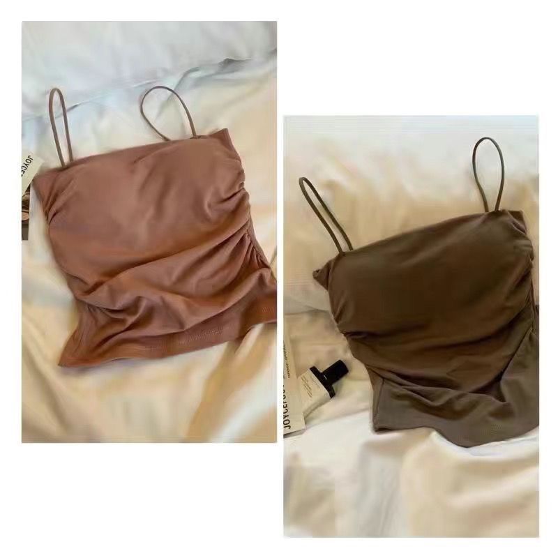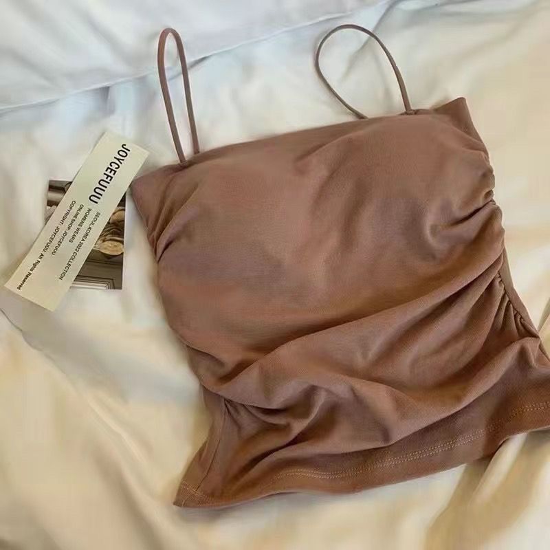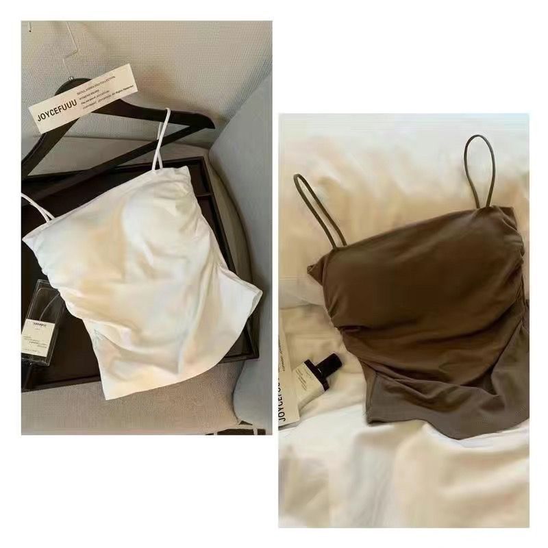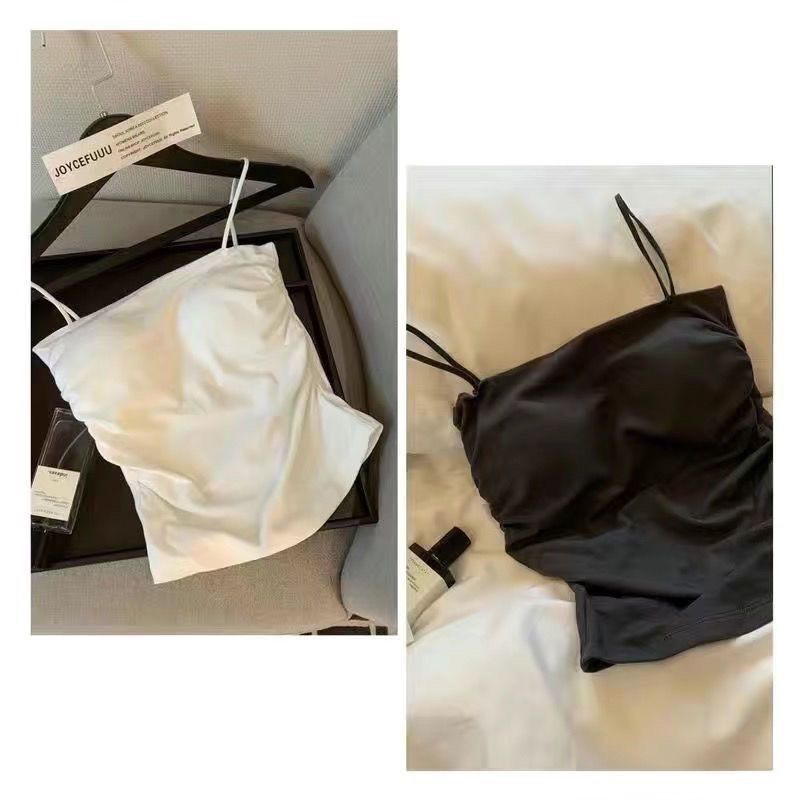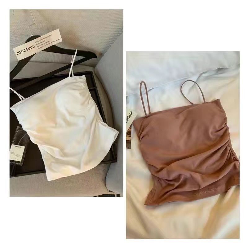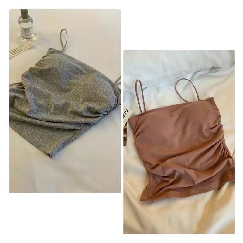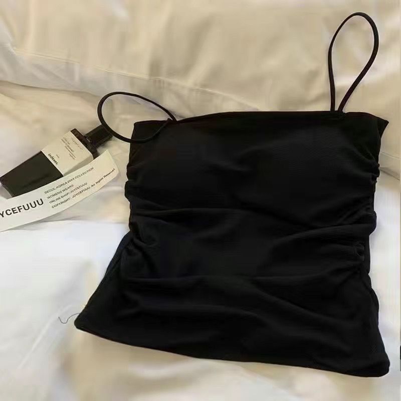 핫걸 아름다운 백탑 여름 주름 서스펜더 편안한 신축성 있는 속옷 여성 슬림핏 튜브탑 가슴 패드 탑