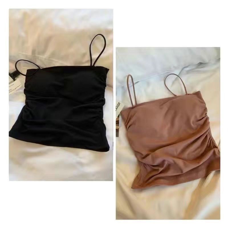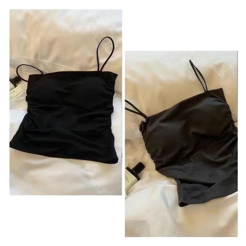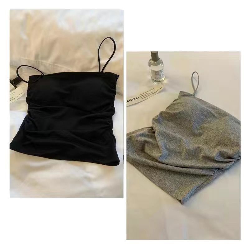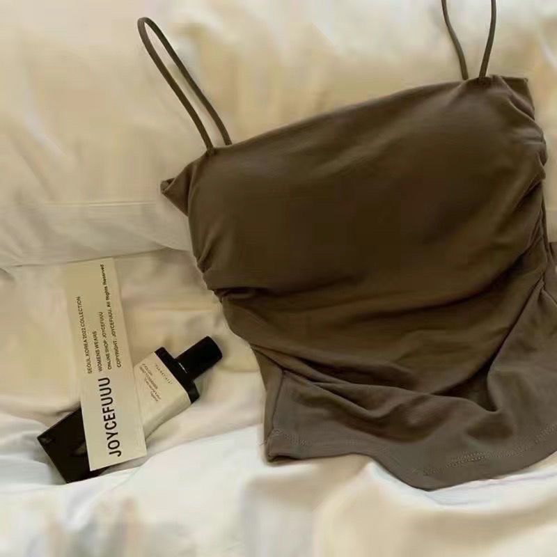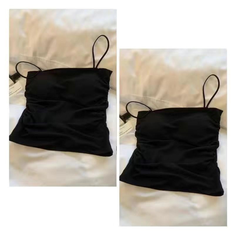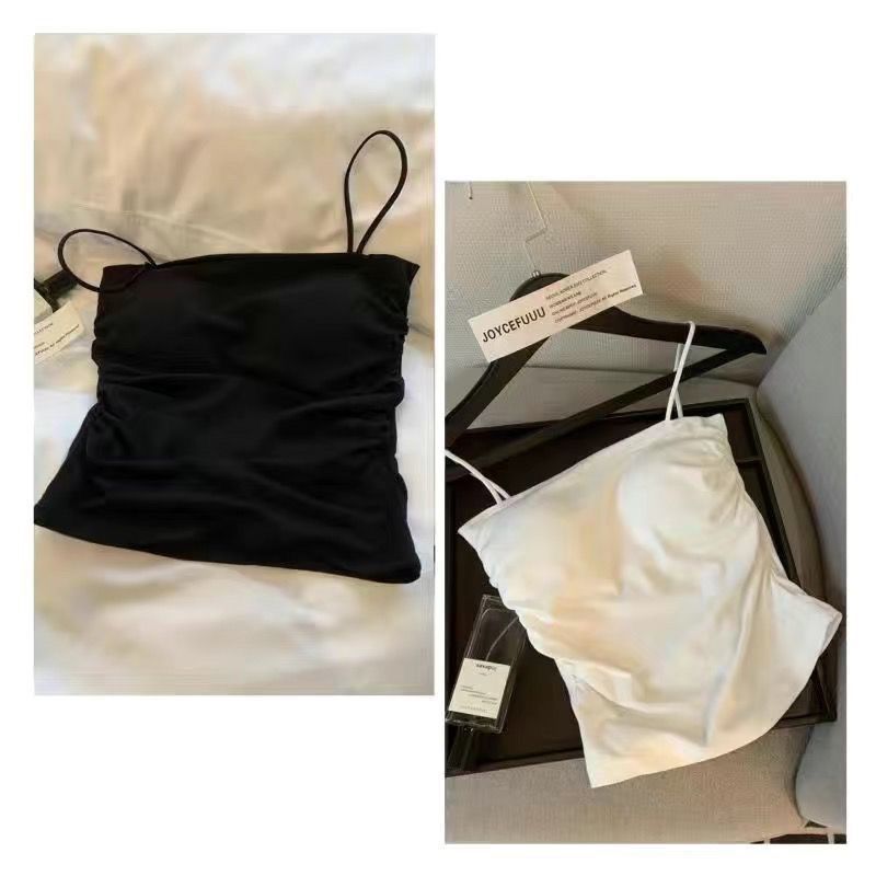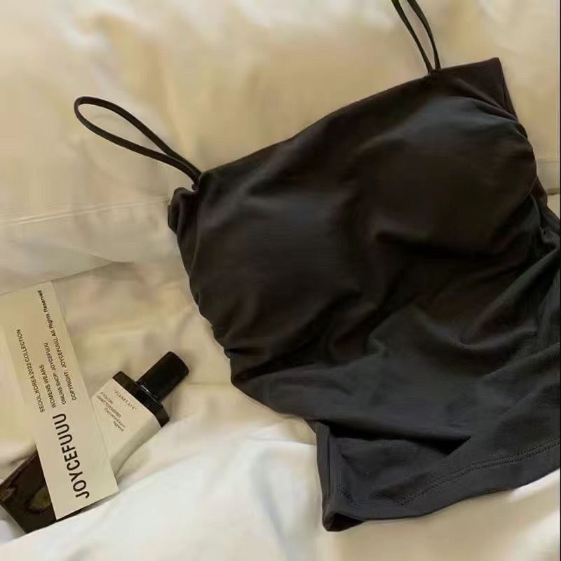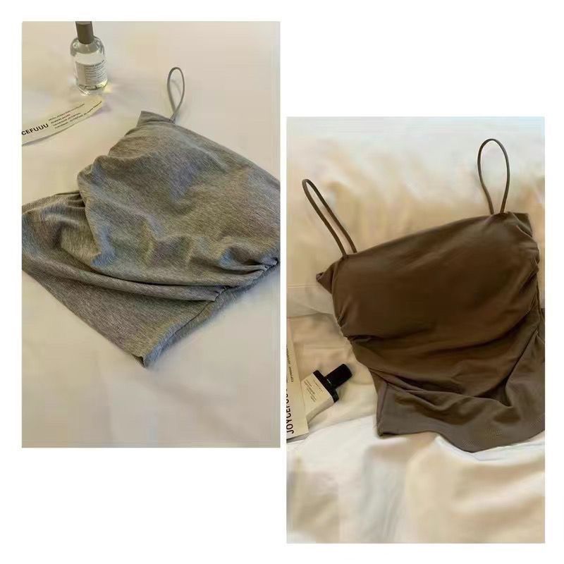 핫걸 아름다운 백탑 여름 주름 서스펜더 편안한 신축성 있는 속옷 여성 슬림핏 튜브탑 가슴 패드 탑
