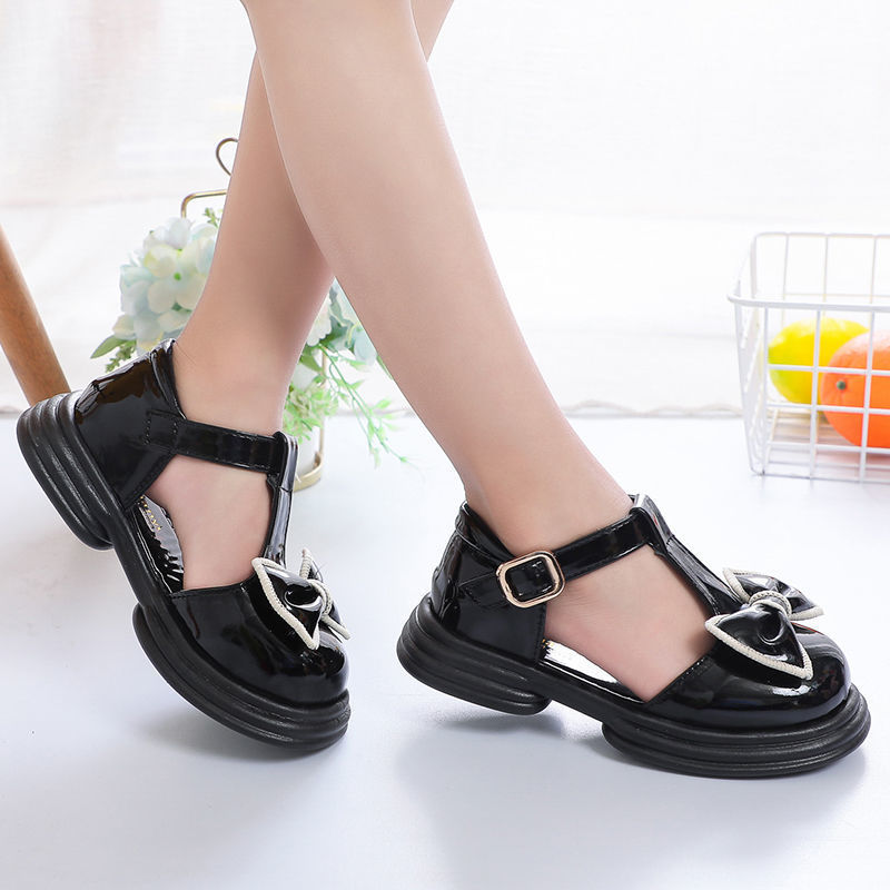 여자 Baotou 샌들 2025 여름 새로운 패션 한국 스타일 작은 가죽 신발 큰 어린이 부드러운 바닥 어린 소녀 공주 신발스토어 가기