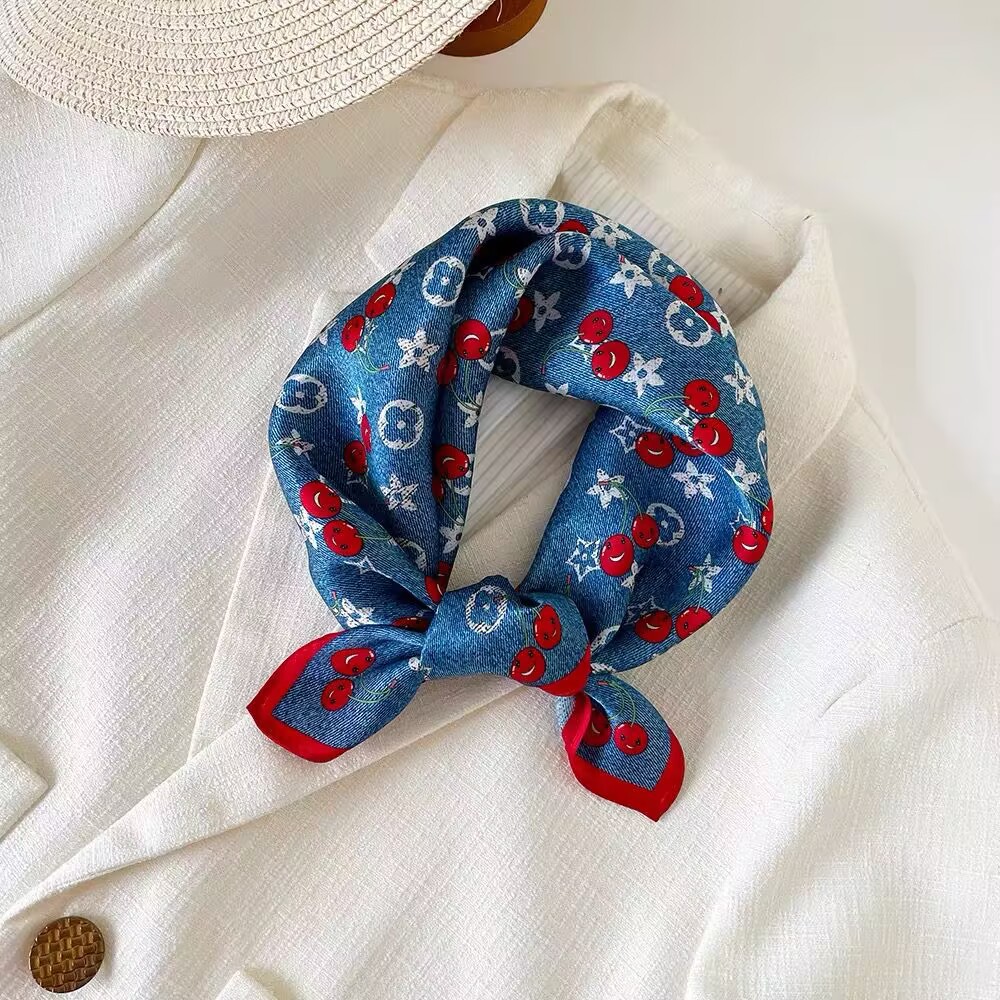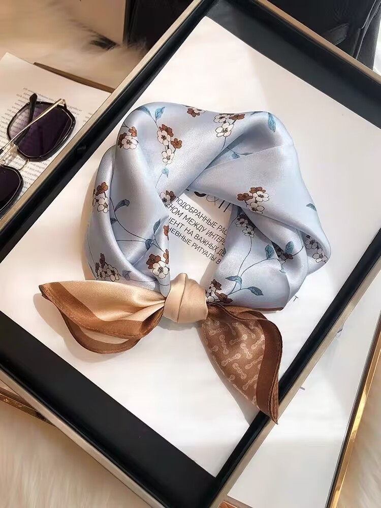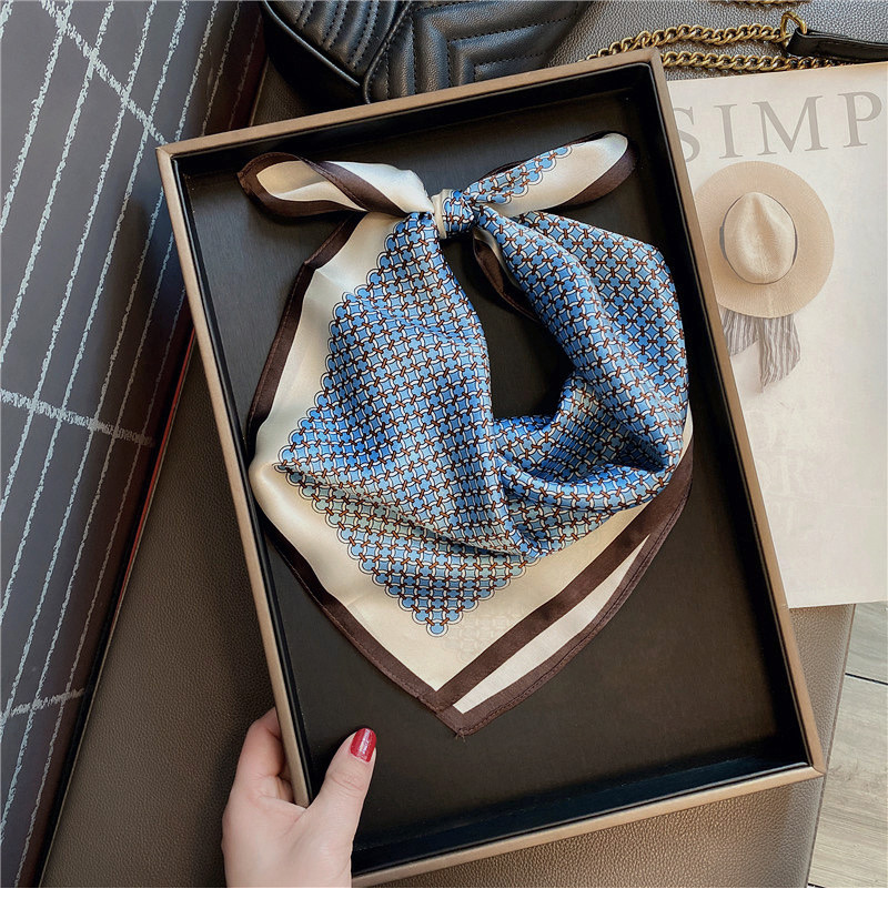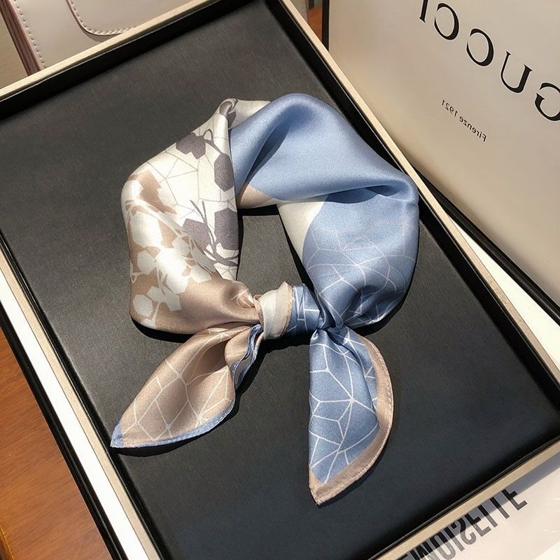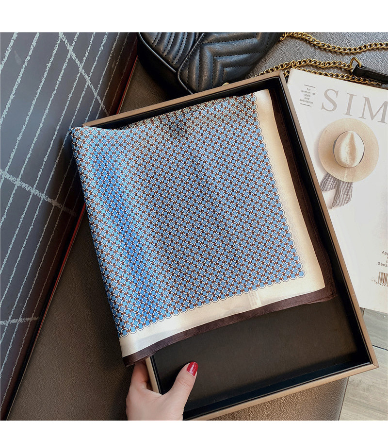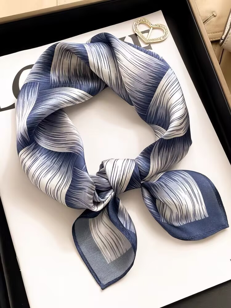 100% 뽕나무 실크 블루 기하학 53 실크 스퀘어 스카프 여성 봄, 여름, 가을 다목적 패션 실크 스카프스토어 가기