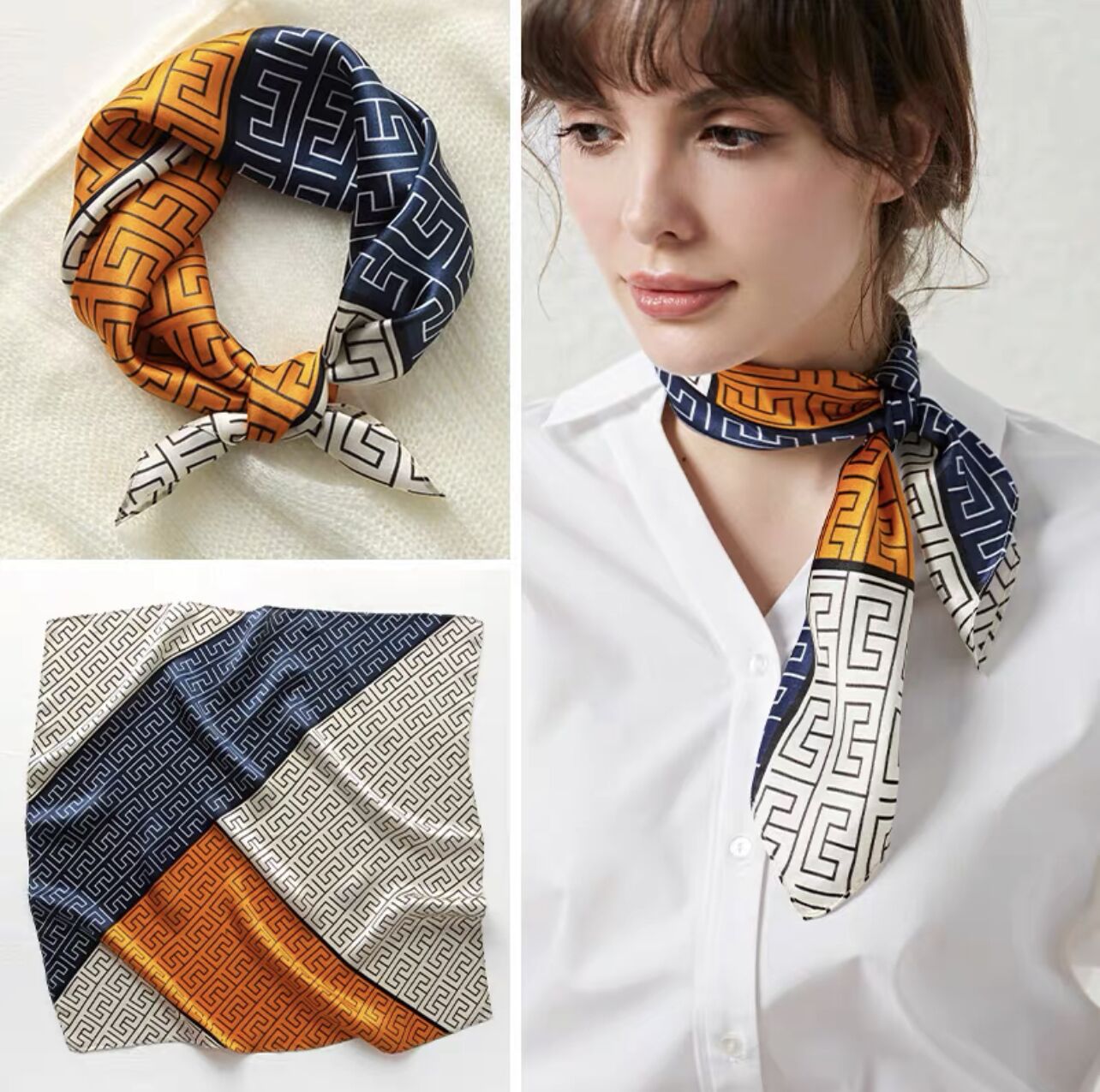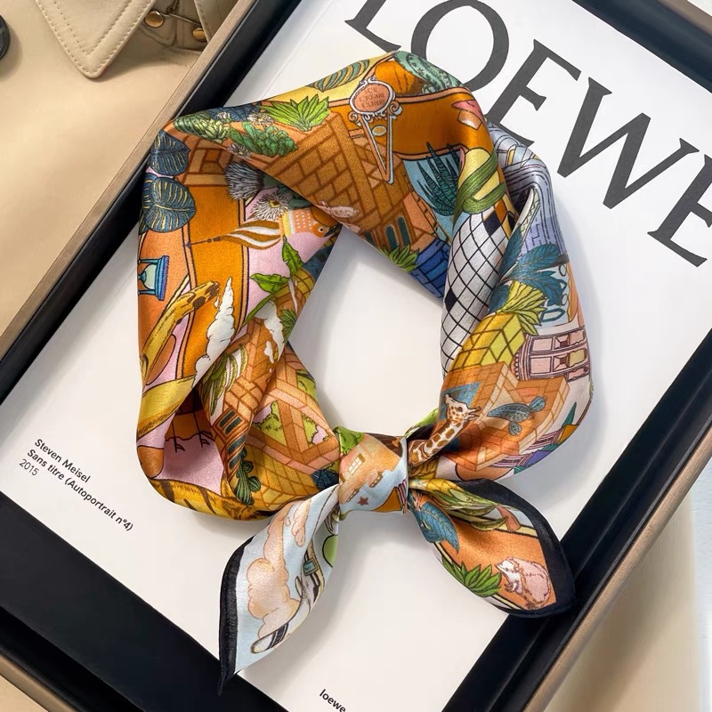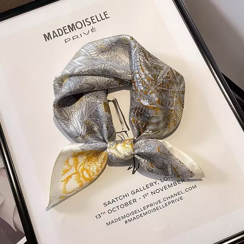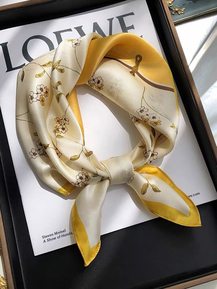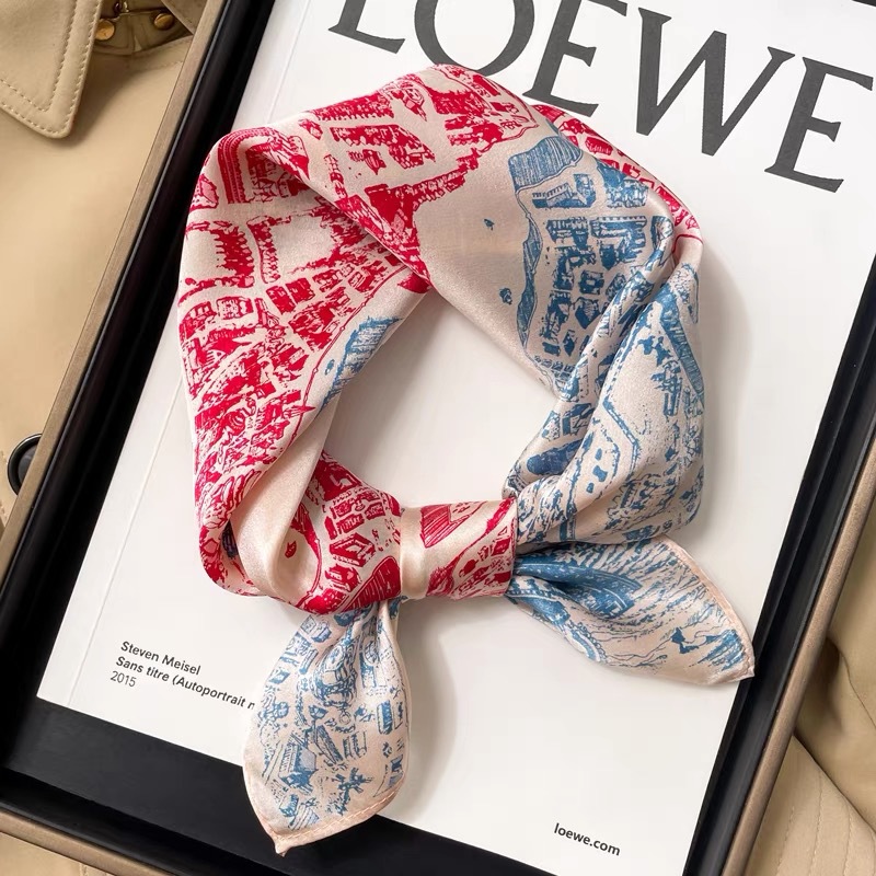100% 뽕나무 실크 블루 기하학 53 실크 스퀘어 스카프 여성 봄, 여름, 가을 다목적 패션 실크 스카프스토어 가기