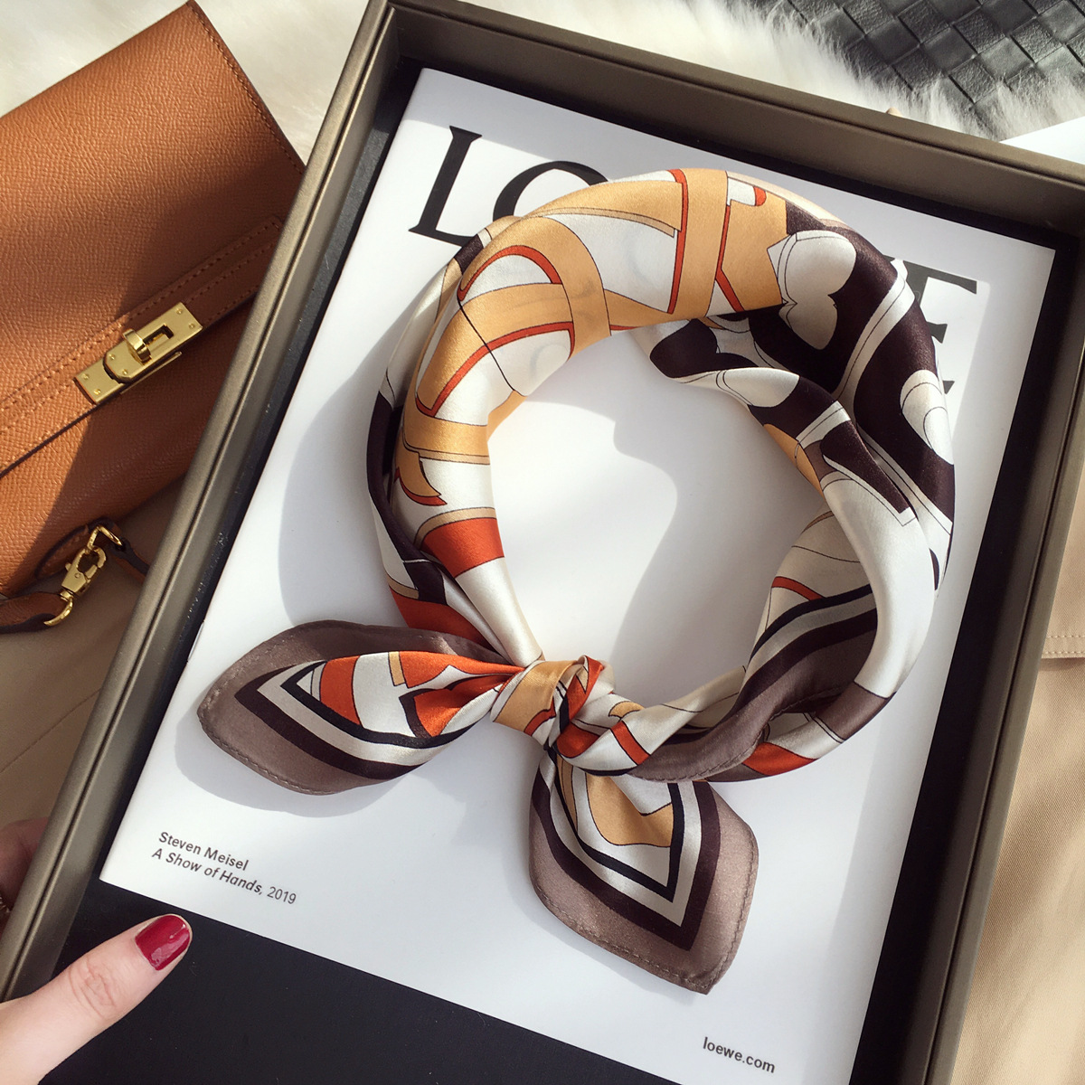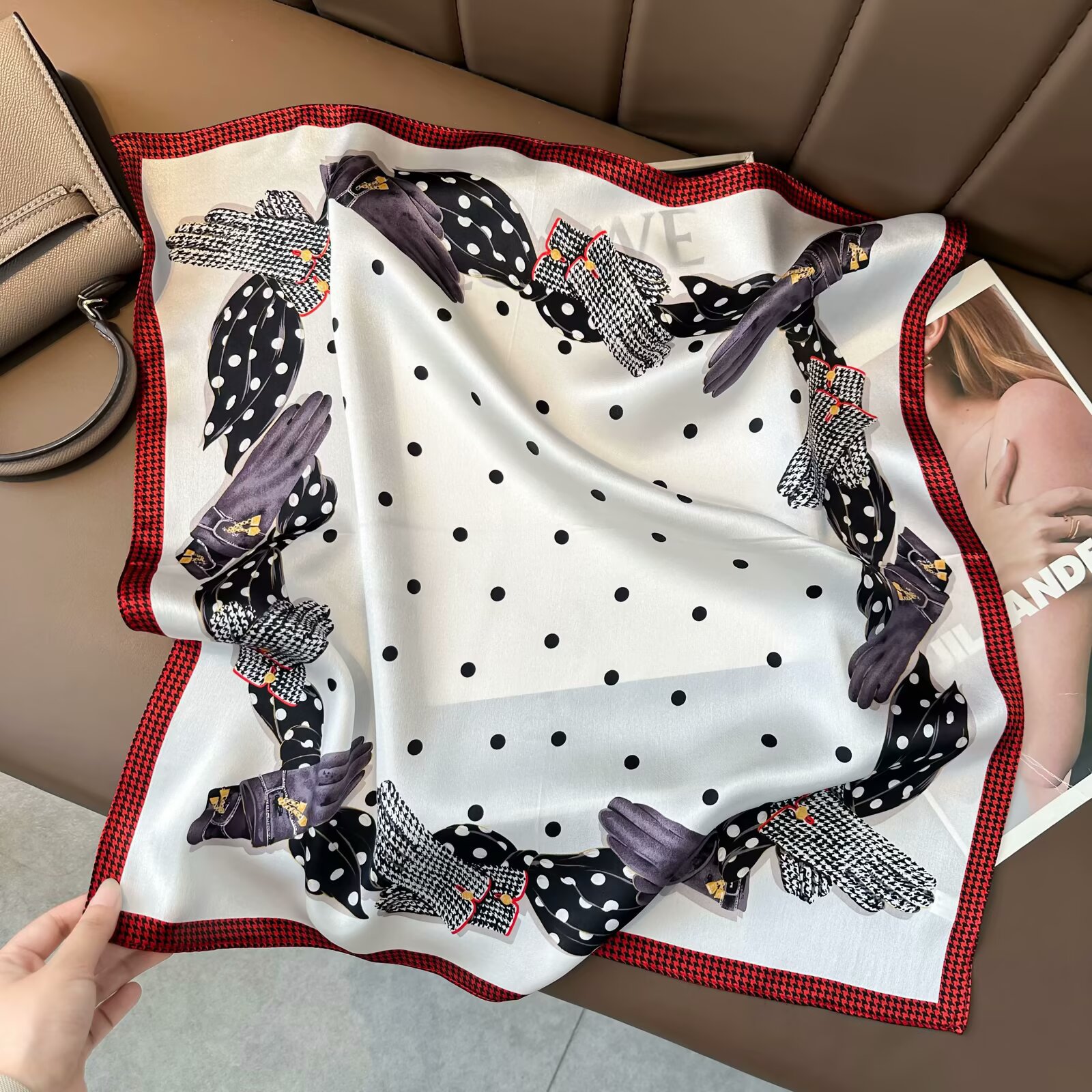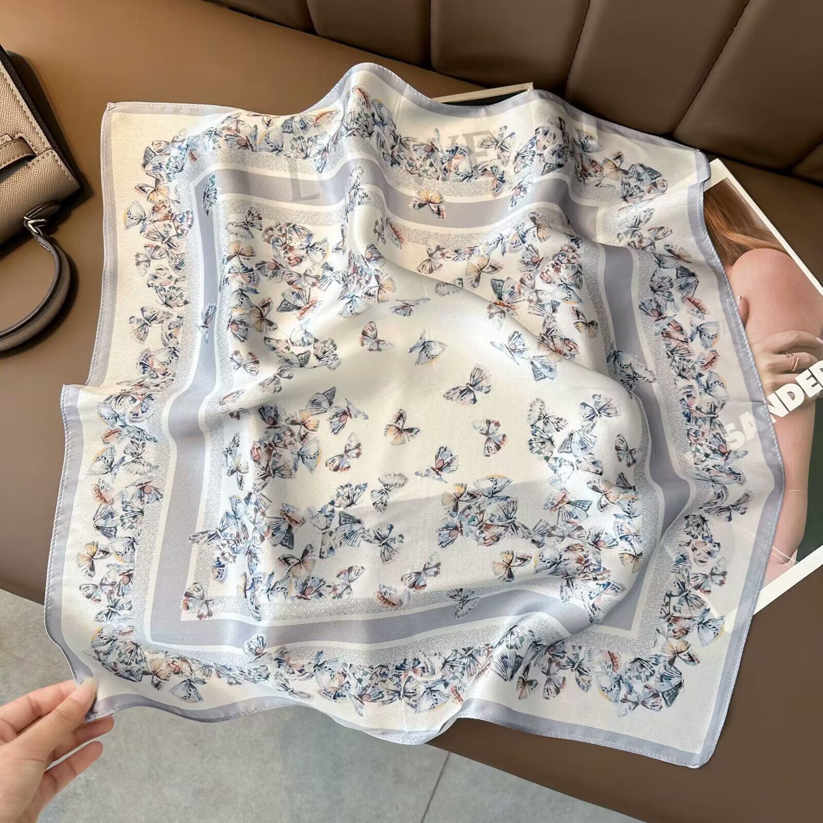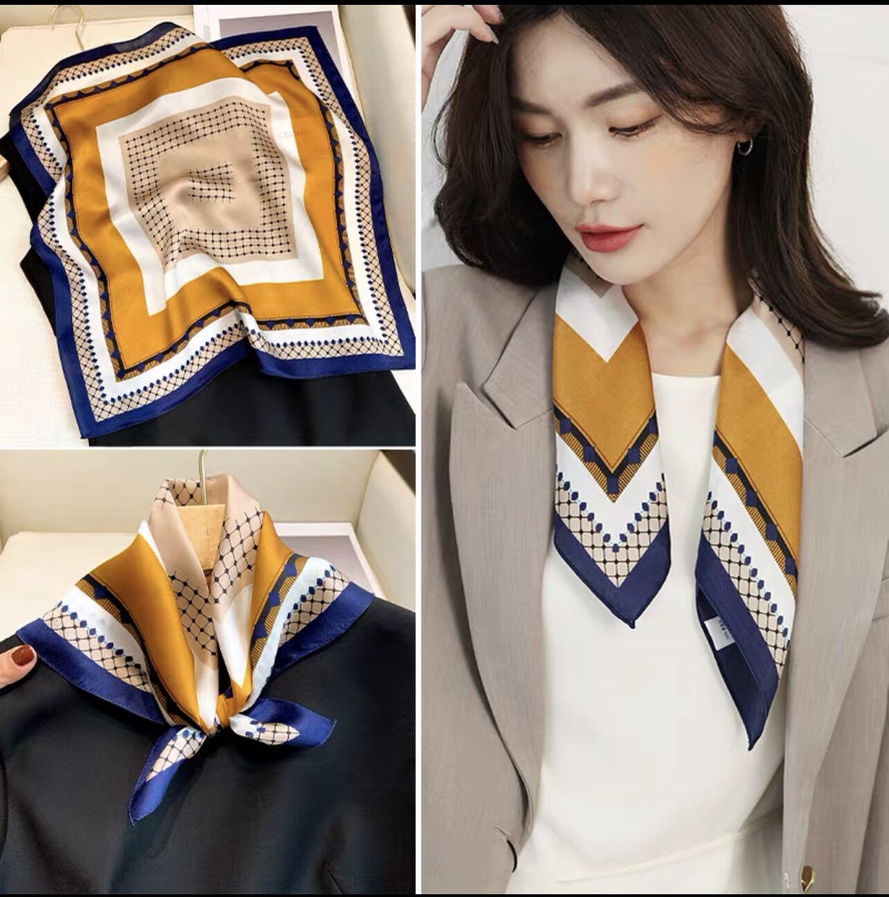 100% 뽕나무 실크 블루 기하학 53 실크 스퀘어 스카프 여성 봄, 여름, 가을 다목적 패션 실크 스카프스토어 가기