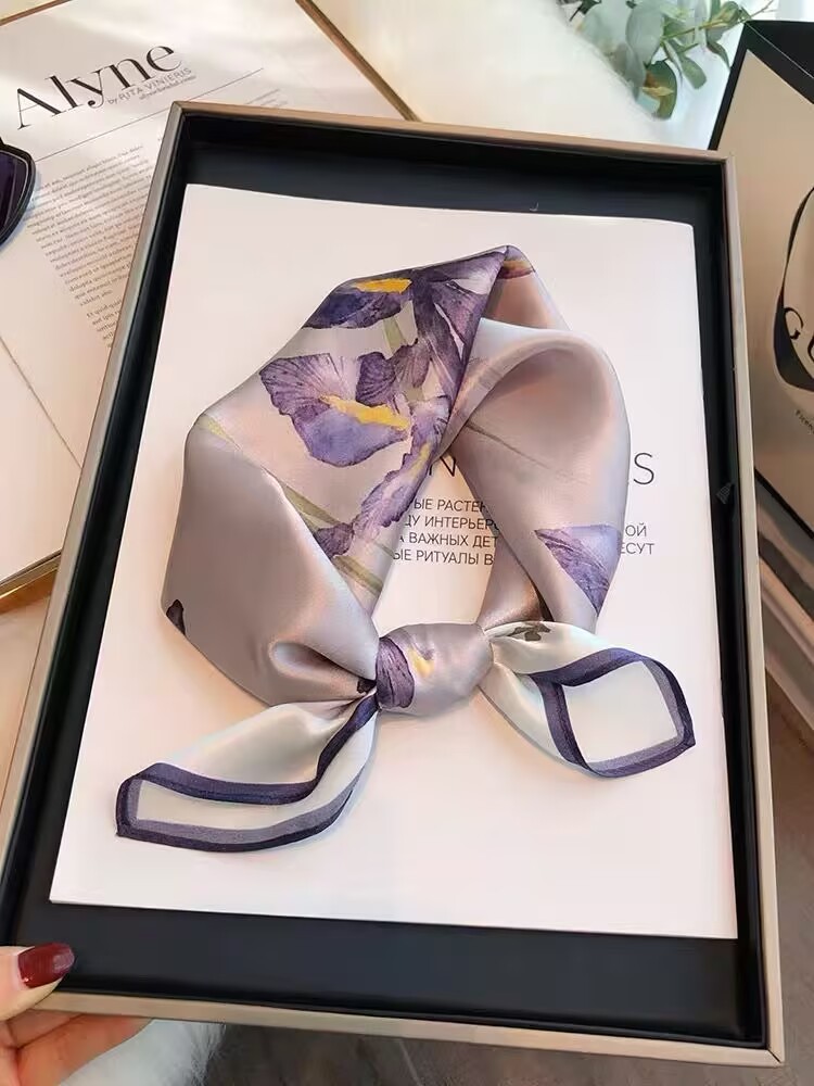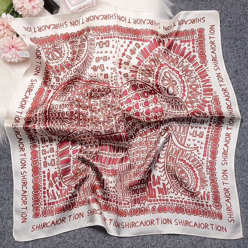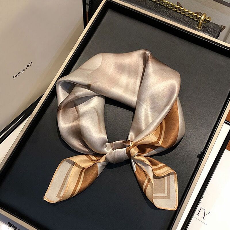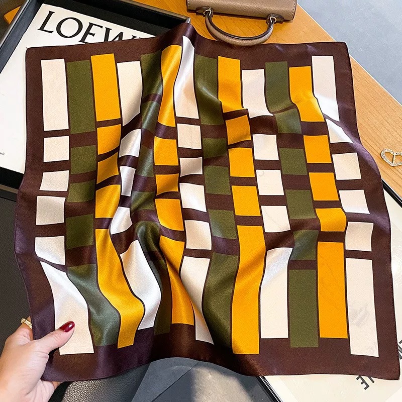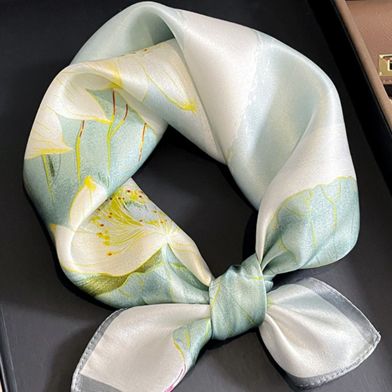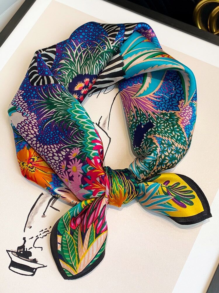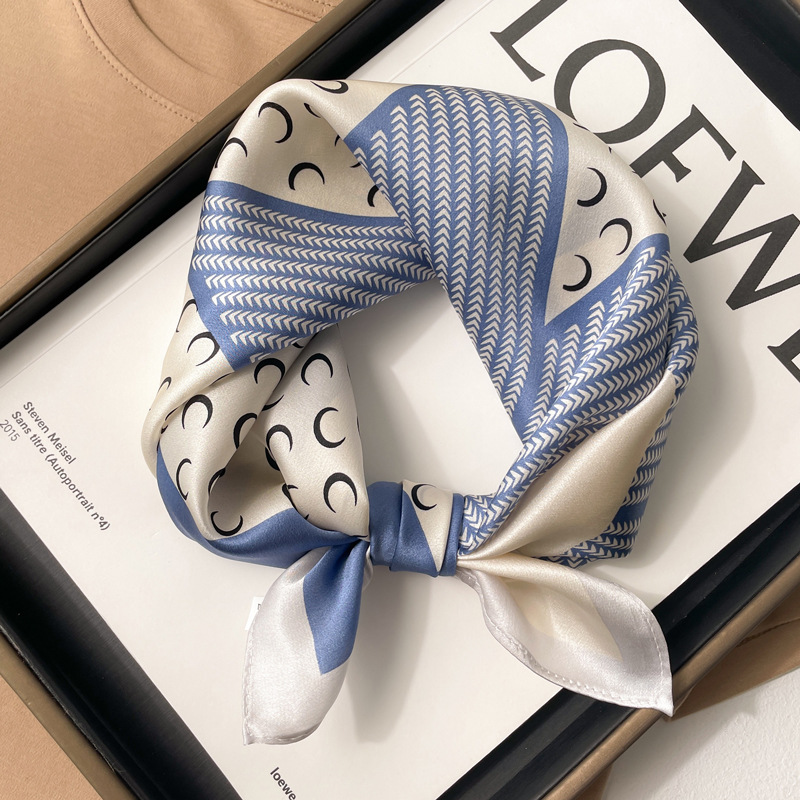 100% 뽕나무 실크 블루 기하학 53 실크 스퀘어 스카프 여성 봄, 여름, 가을 다목적 패션 실크 스카프
