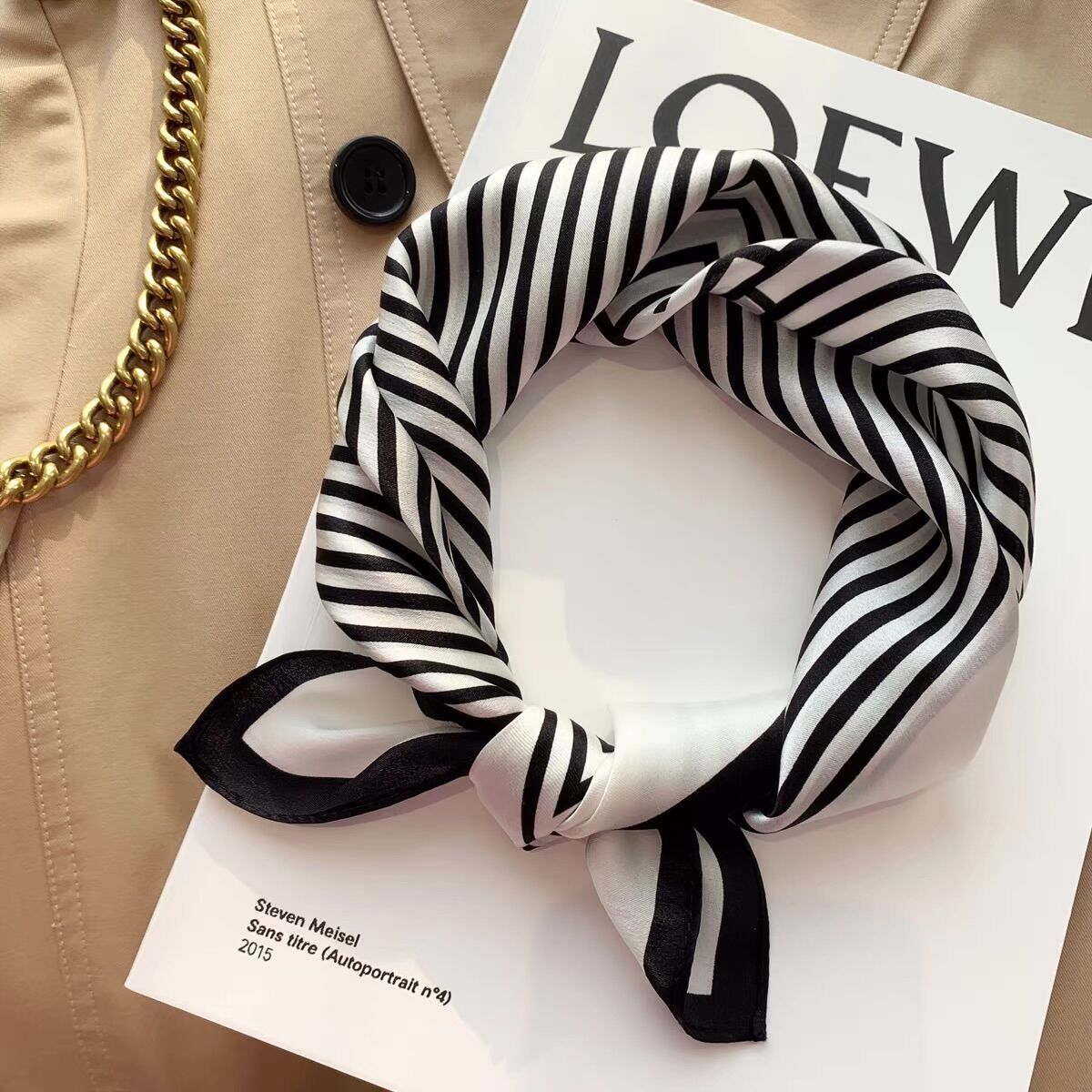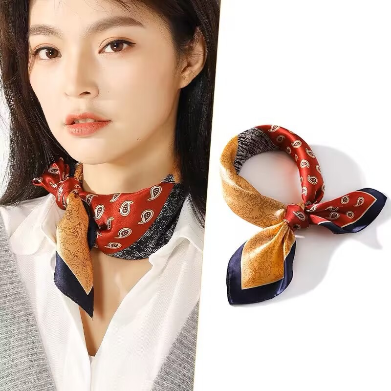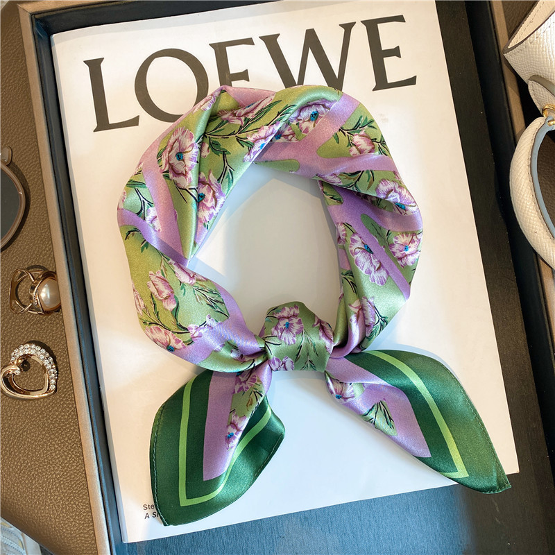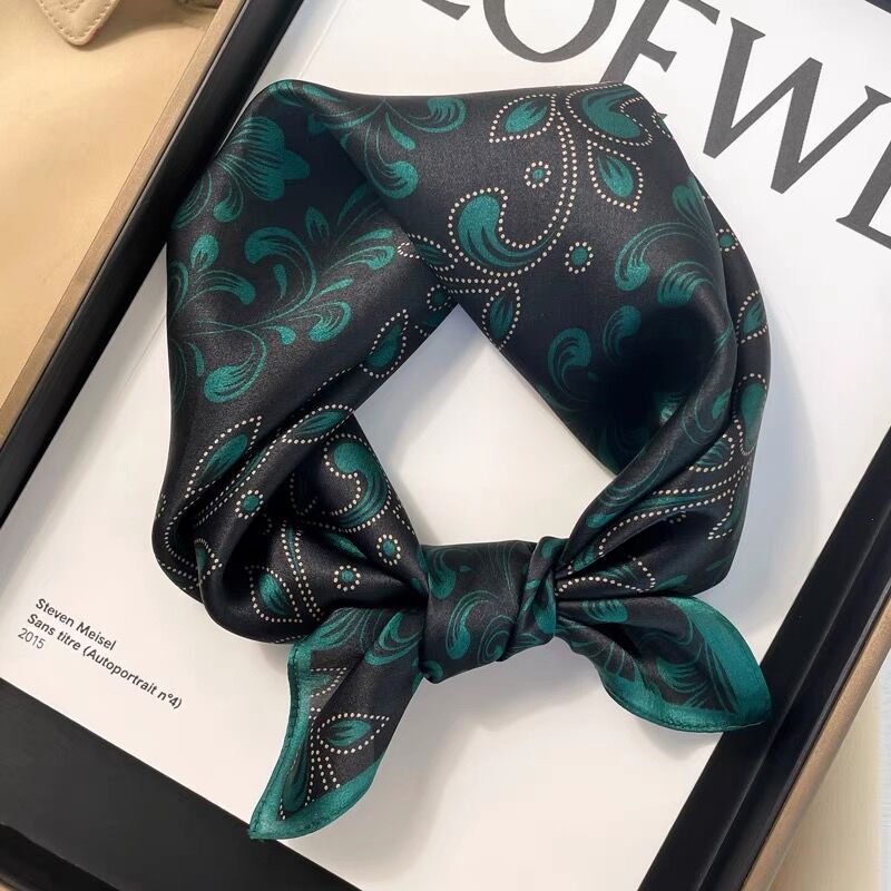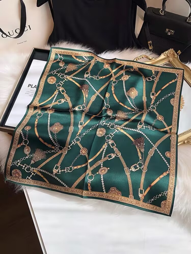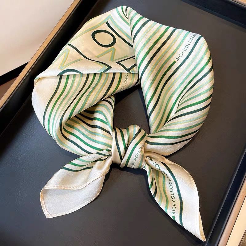 100% 뽕나무 실크 블루 기하학 53 실크 스퀘어 스카프 여성 봄, 여름, 가을 다목적 패션 실크 스카프