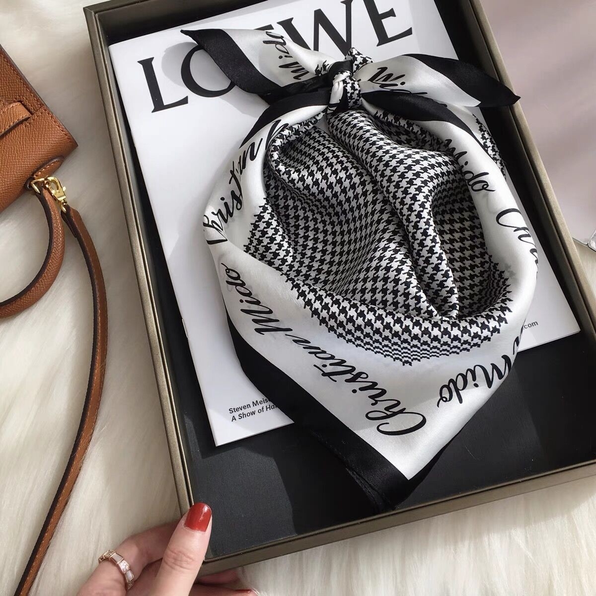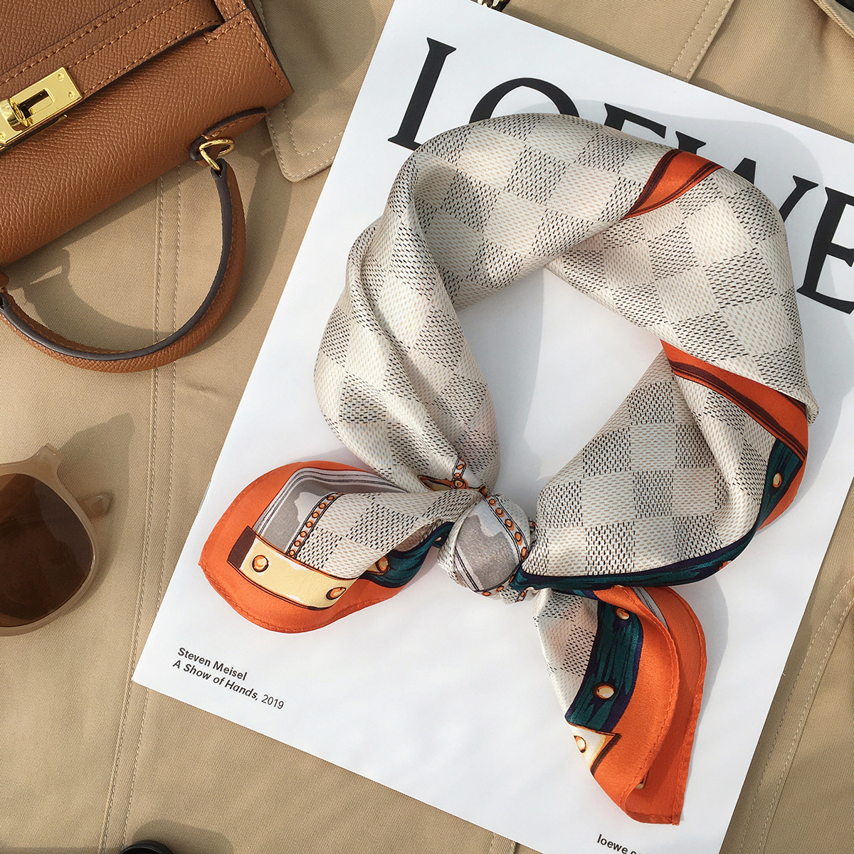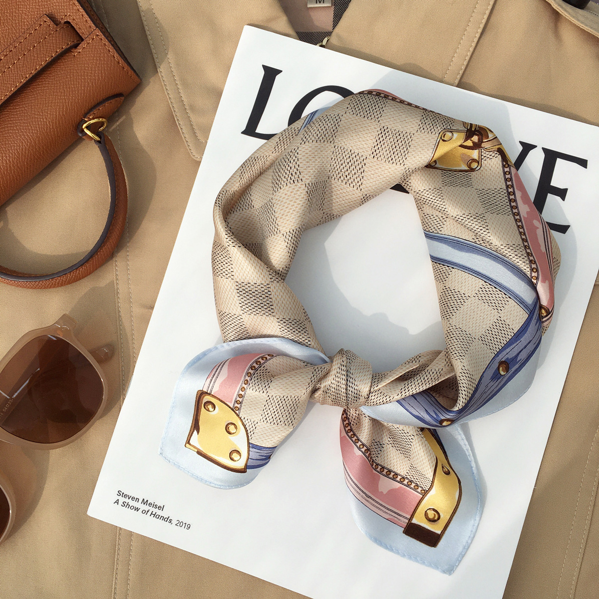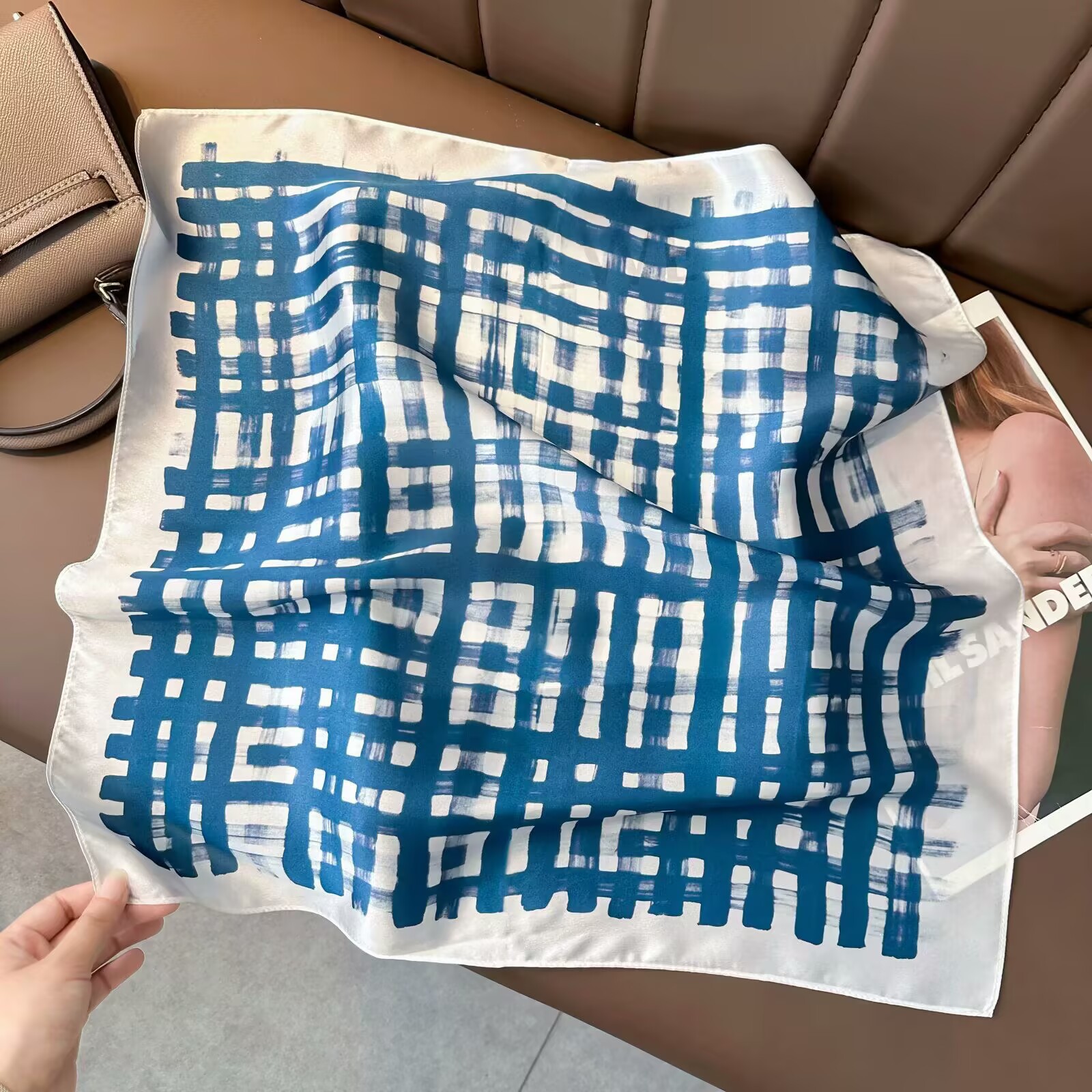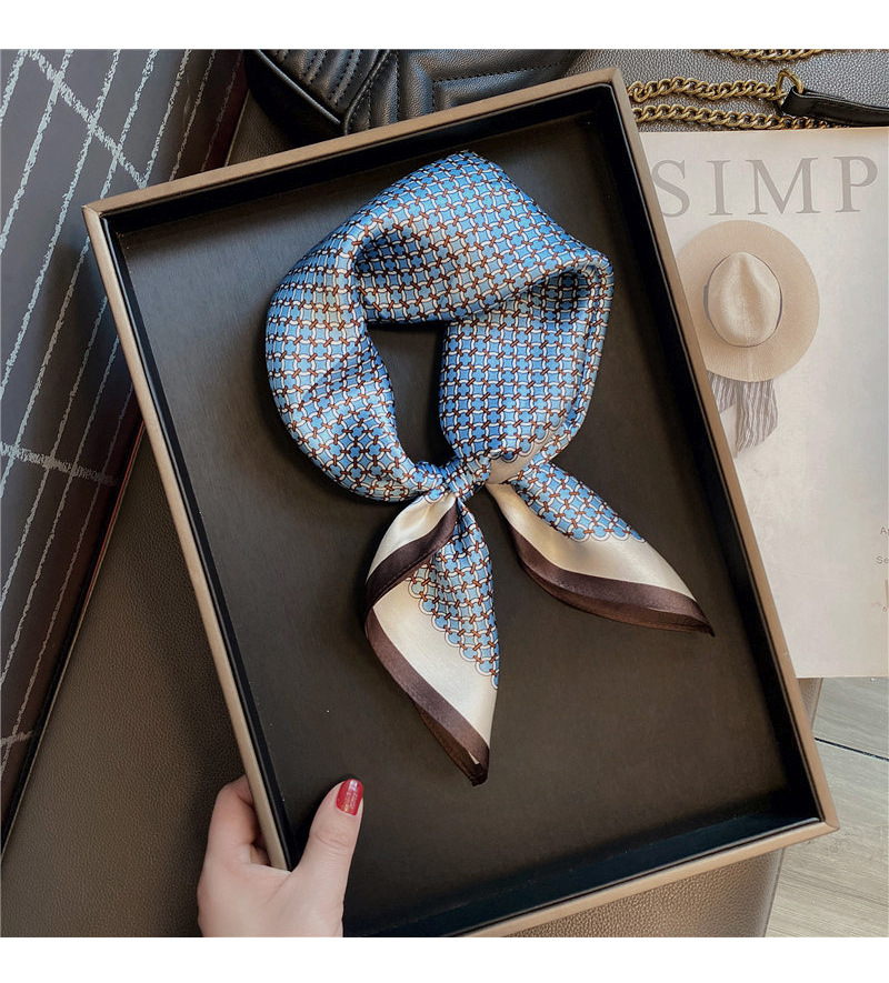 • 블루 기하학적 그리드 53 실크 스퀘어 스카프