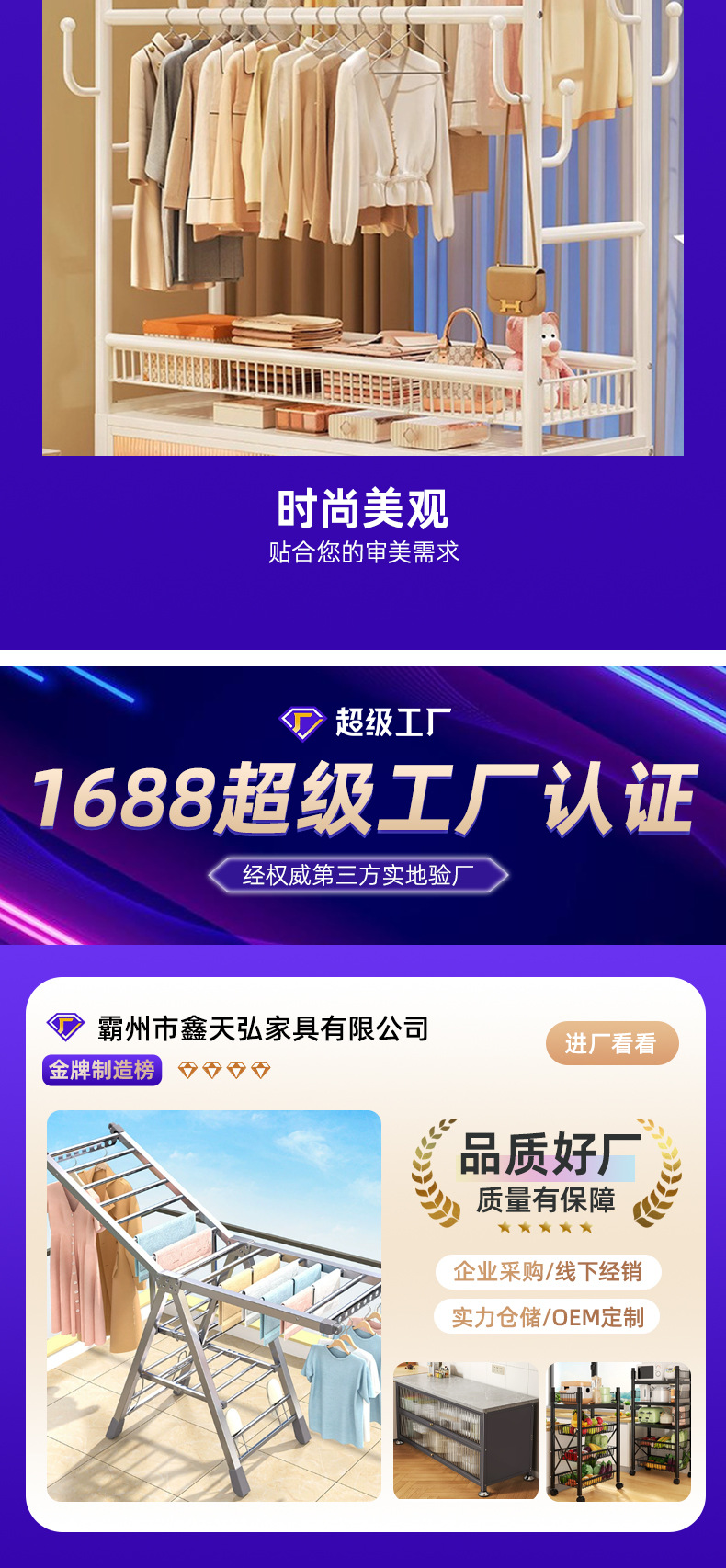 옷걸이 바닥 침실 홈 이동식 옷걸이 실내 이중 막대 옷걸이 다기능 옷걸이스토어 가기