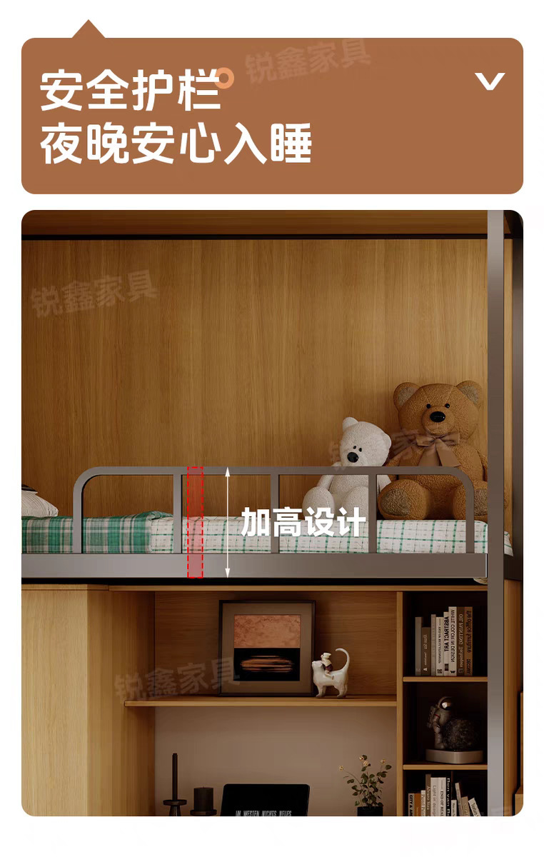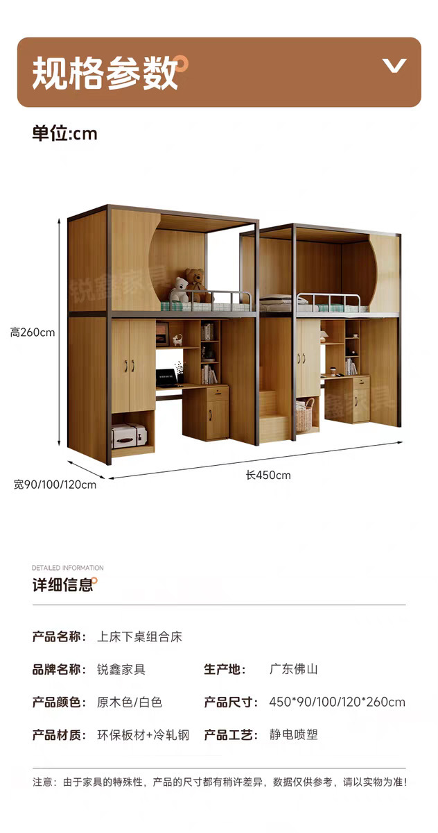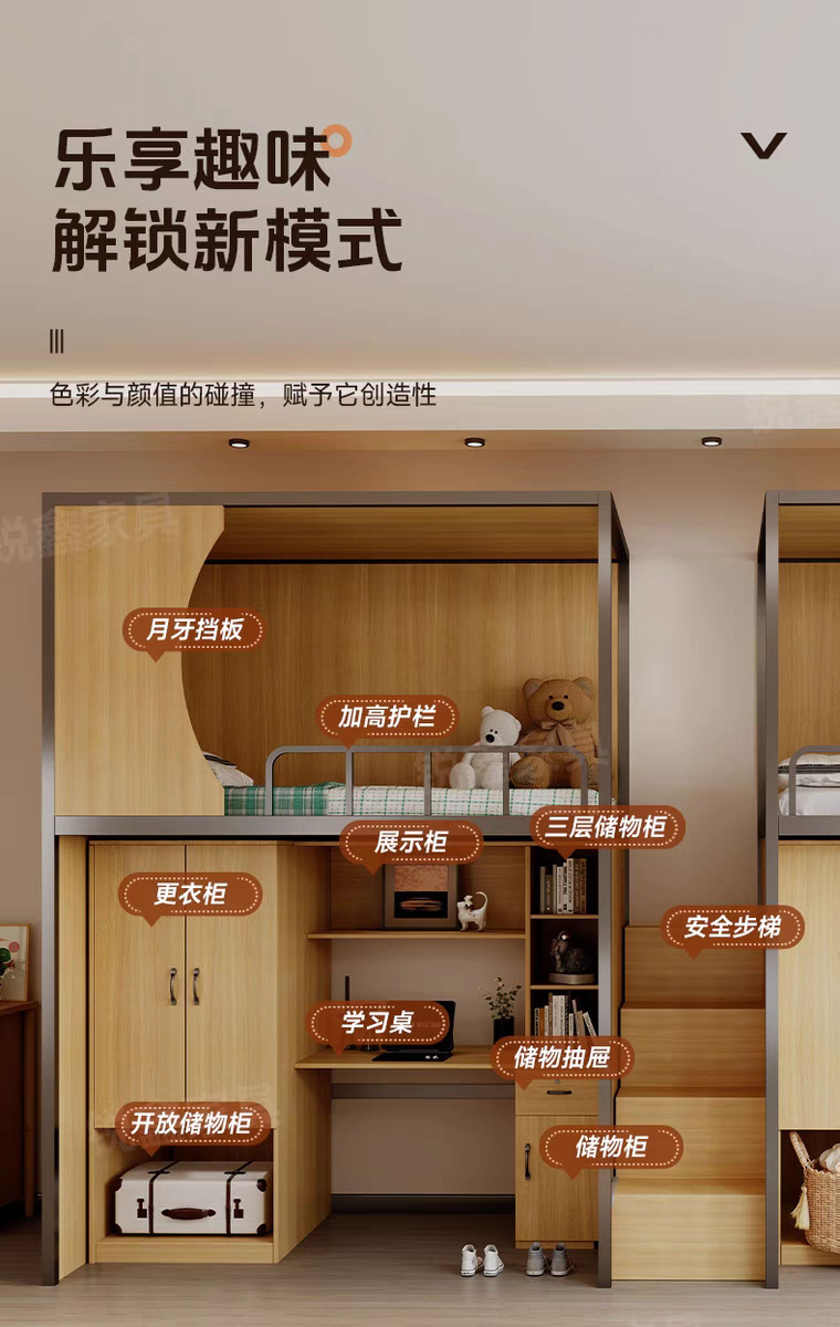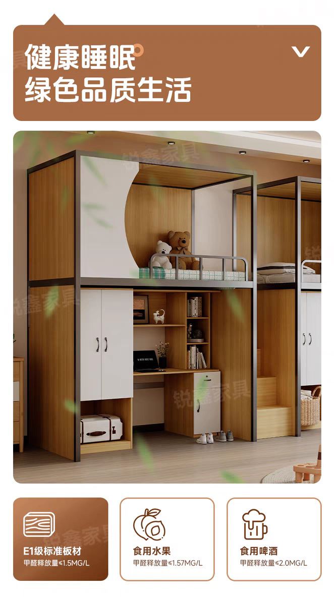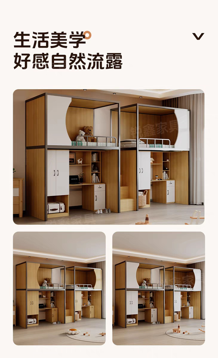 대학생 교육 기관 학교 직원 기숙사 공간 캡슐 완전 밀폐형 상단 침대 및 하단 테이블 조합 높은 아파트 침대