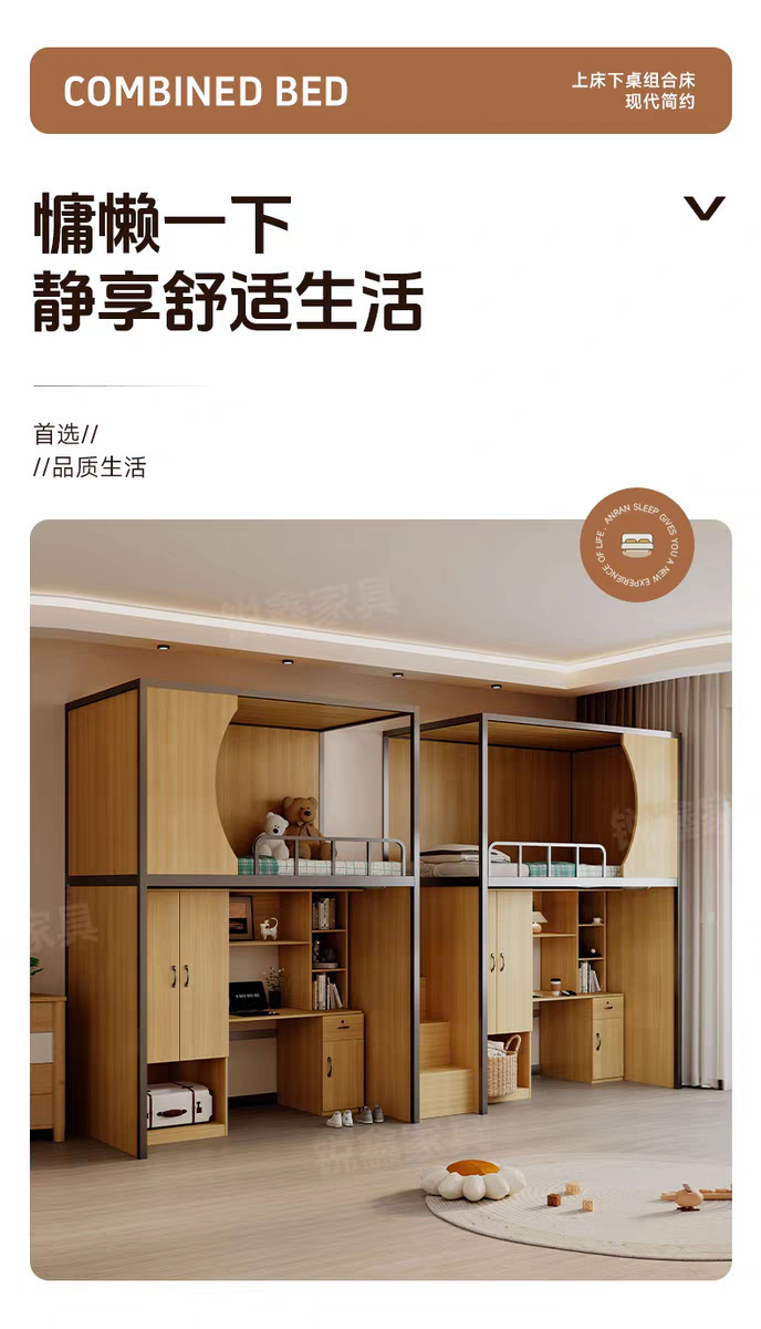 대학생 교육 기관 학교 직원 기숙사 공간 캡슐 완전 밀폐형 상단 침대 및 하단 테이블 조합 높은 아파트 침대스토어 가기