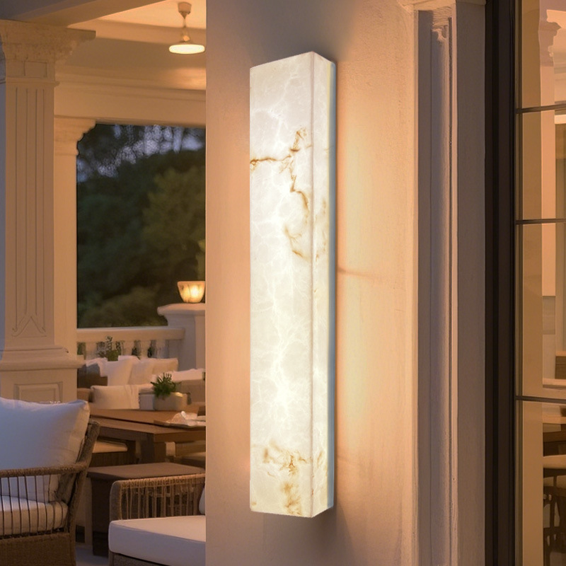 복도 통로 벽 양쪽에 전기가 연결된 문이 있는 국경 간 간단한 야외 방수 긴 모조 대리석 벽 램프 LED 벽 램프