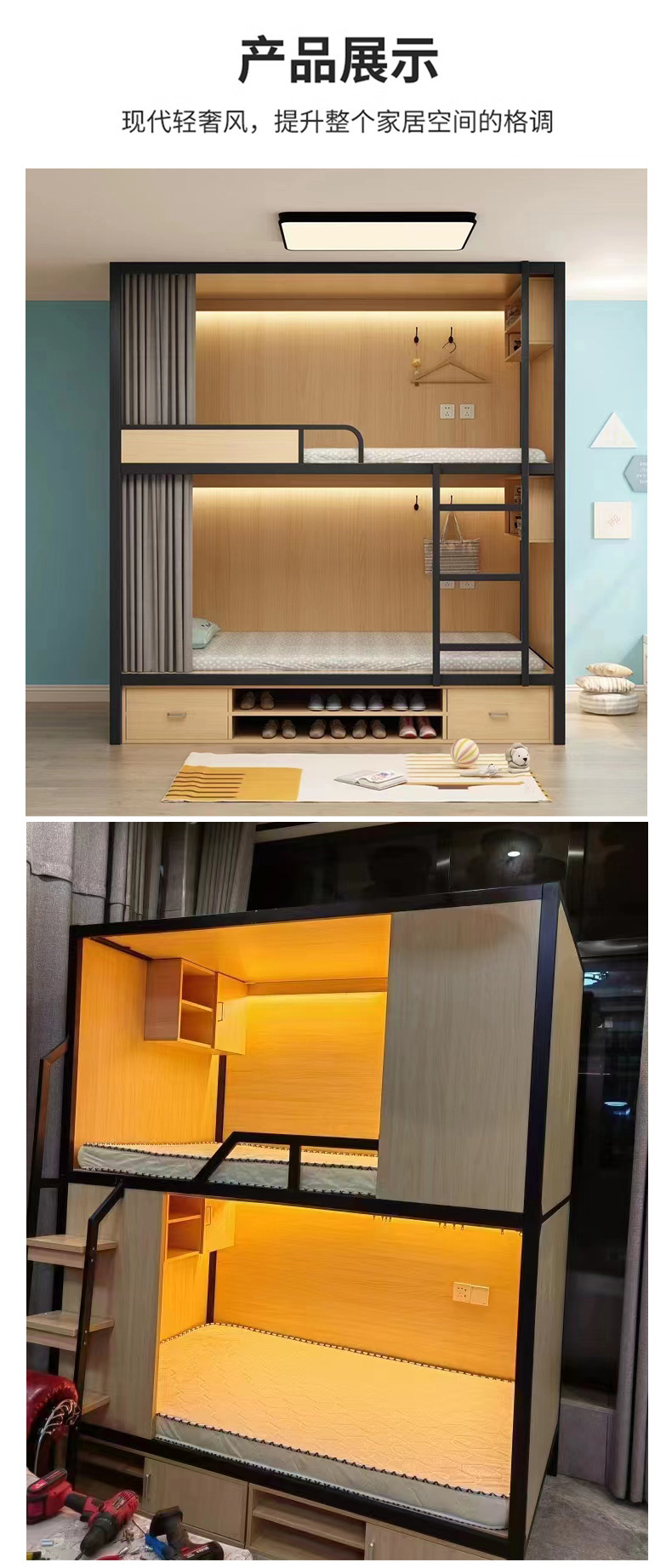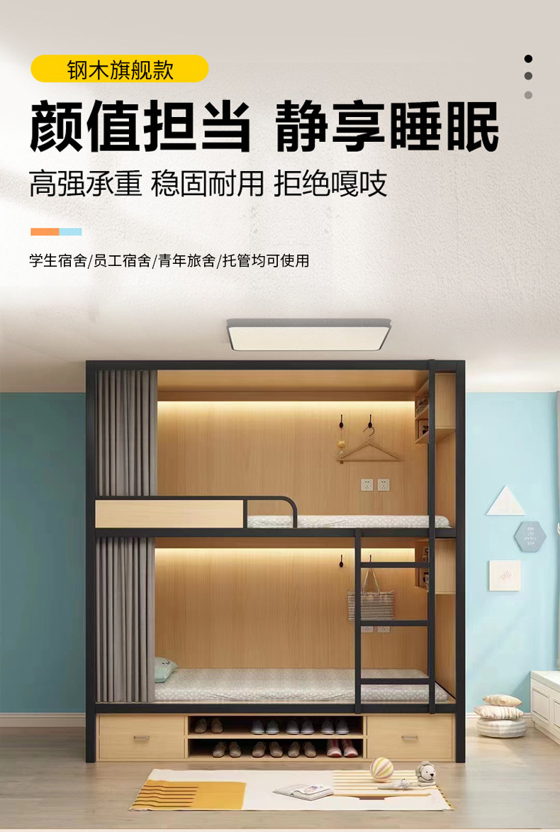 유스호스텔 스페이스 캡슐 이층침대 B&B 아파트 올인클루시브 침대 대학생 기숙사 심플한 철제 원목 이층침대