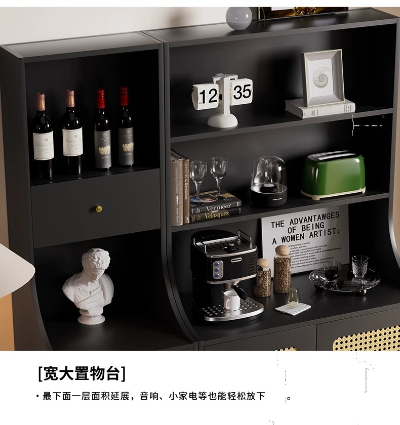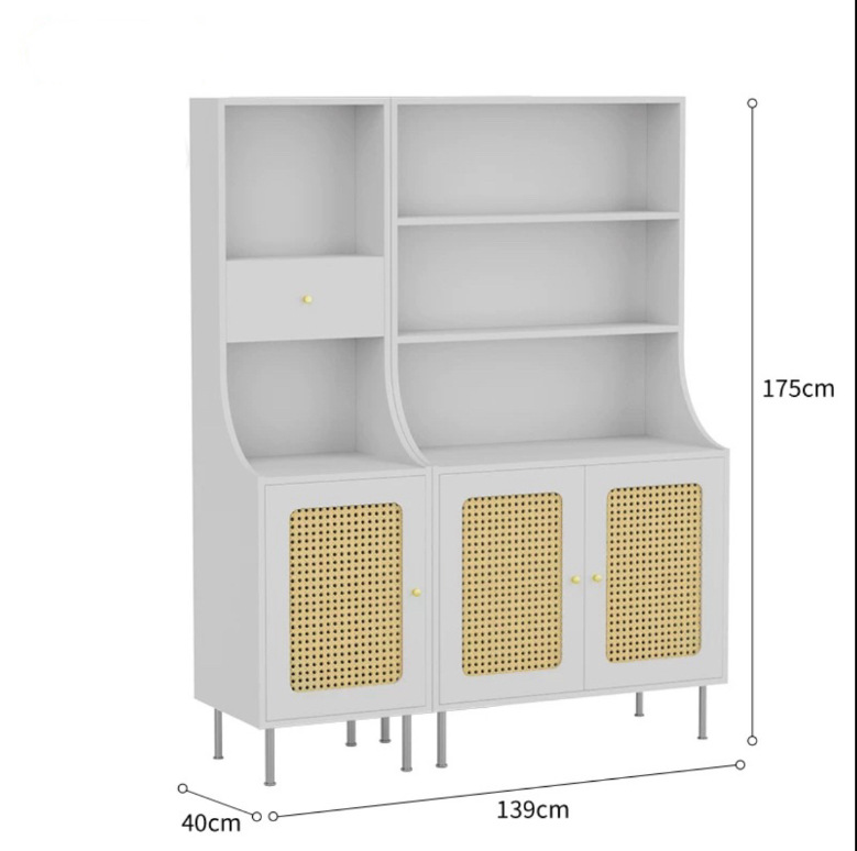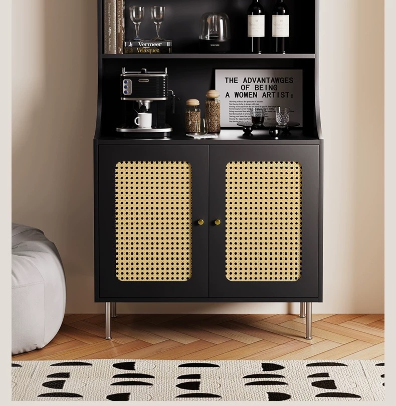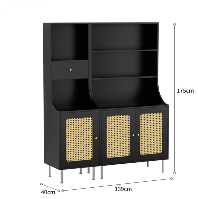 레트로 심플한 찬장, 중세 바닥에 놓인 등나무 수납 진열장, 거실 수납 캐비닛, 서재 책장