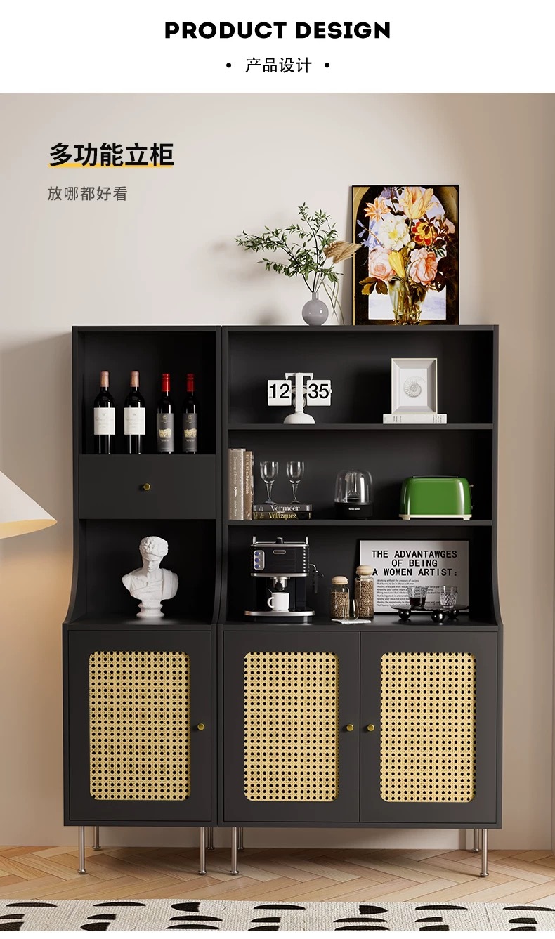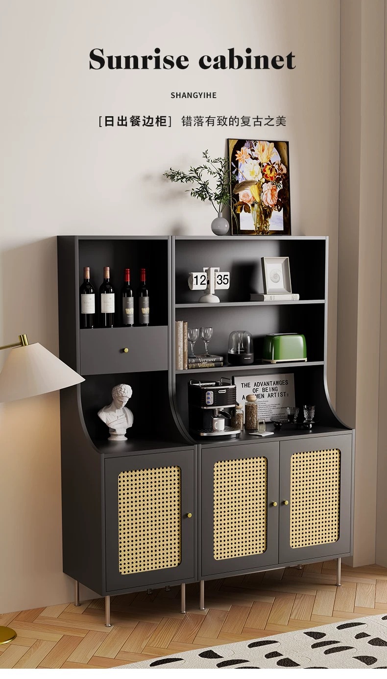 레트로 심플한 찬장, 중세 바닥에 놓인 등나무 수납 진열장, 거실 수납 캐비닛, 서재 책장스토어 가기