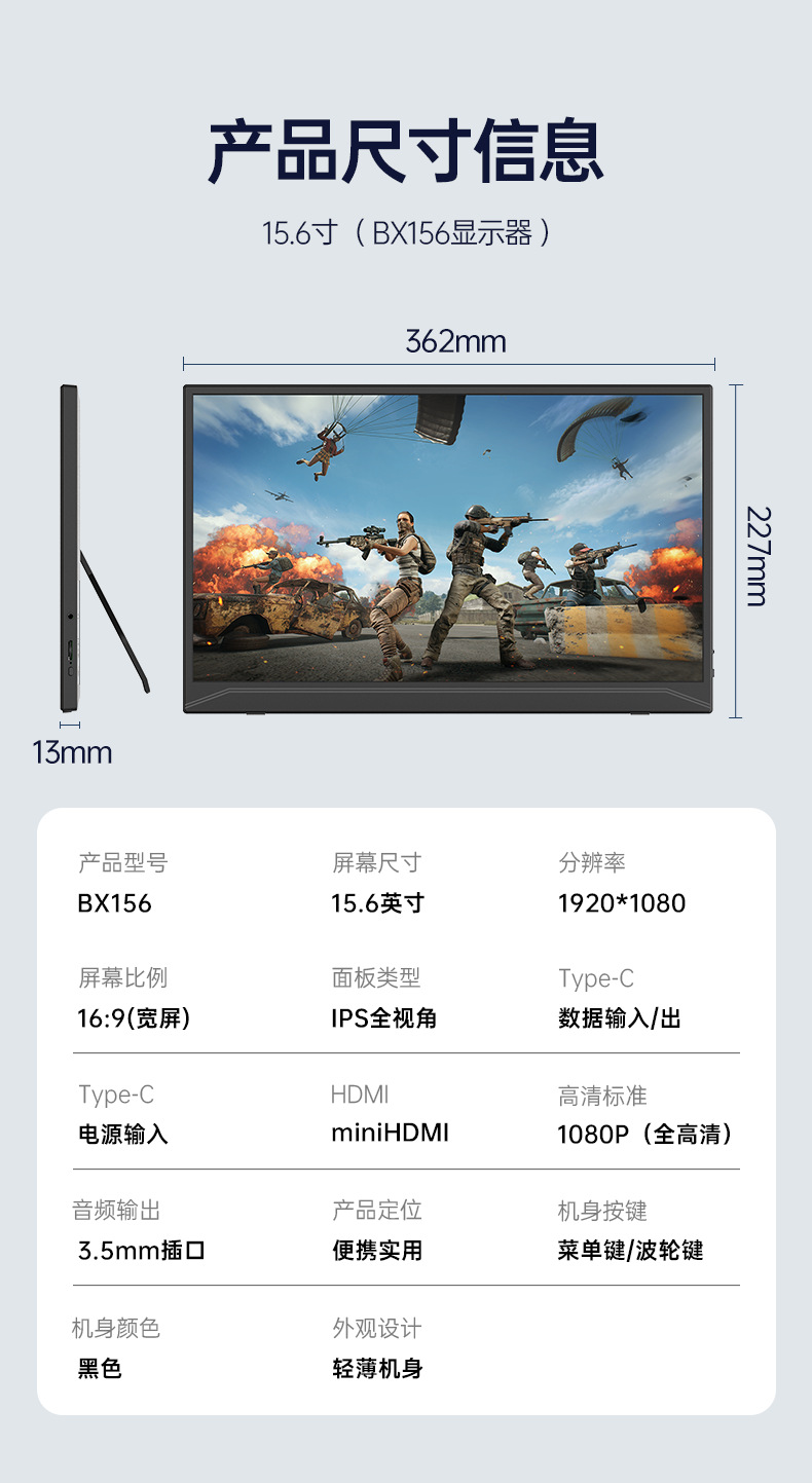 15.6inch 휴대용 모니터는 벽에 걸 수 있고 브래킷에 장착할 수 있습니다. 국경 간 Amazon 베스트셀러 게임 비즈니스 사무실