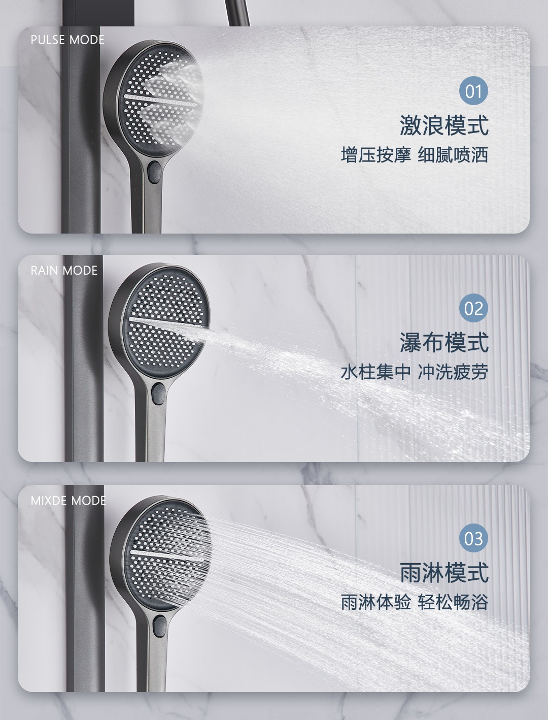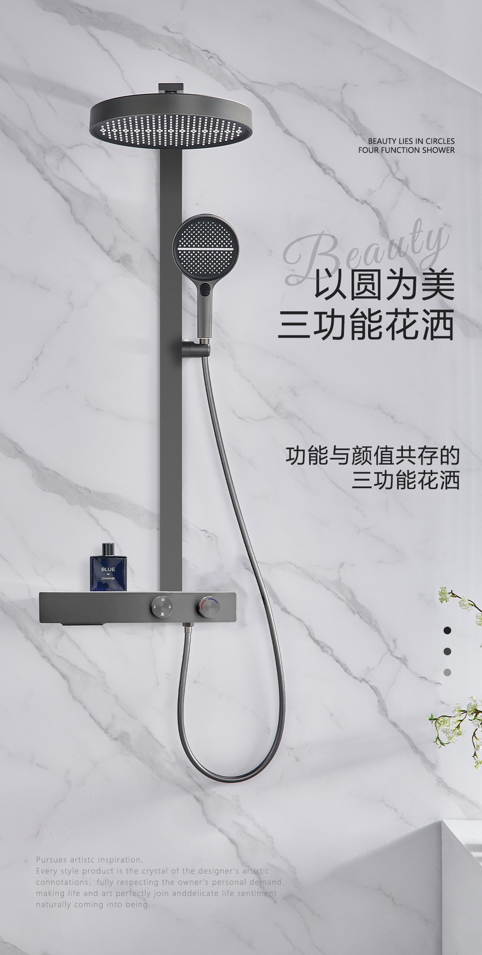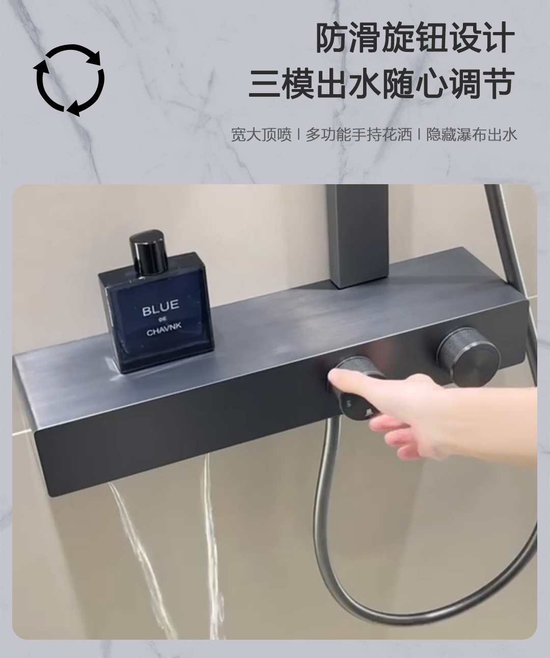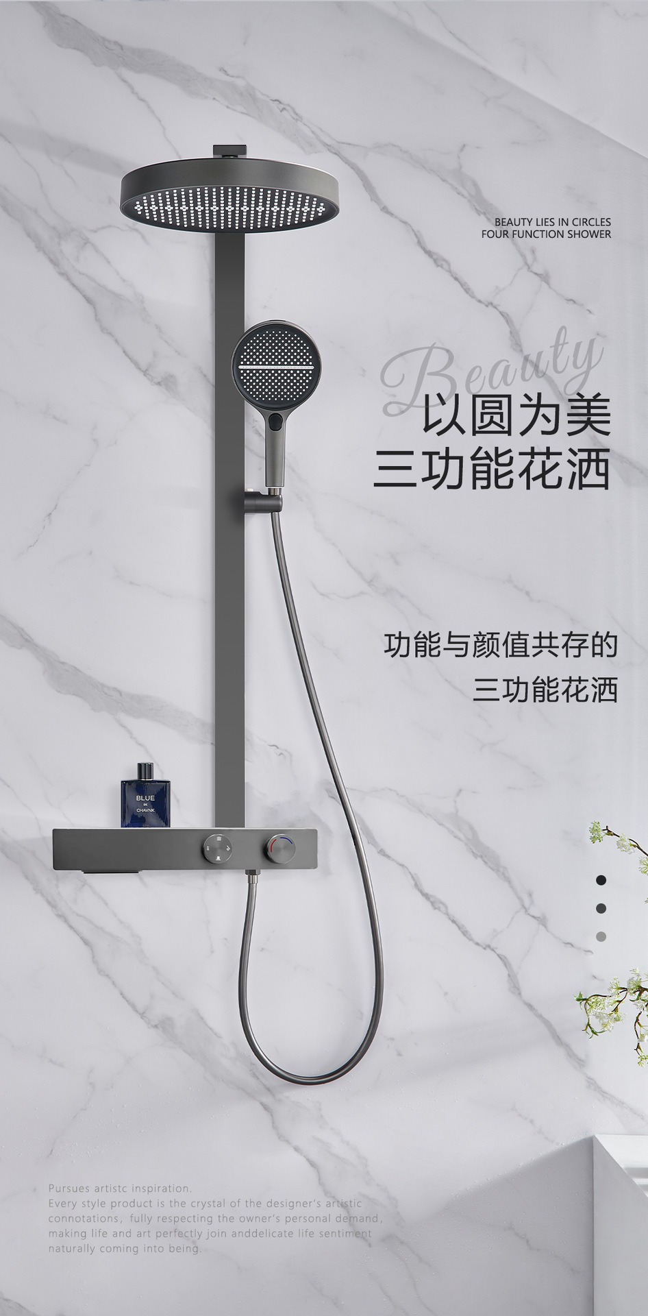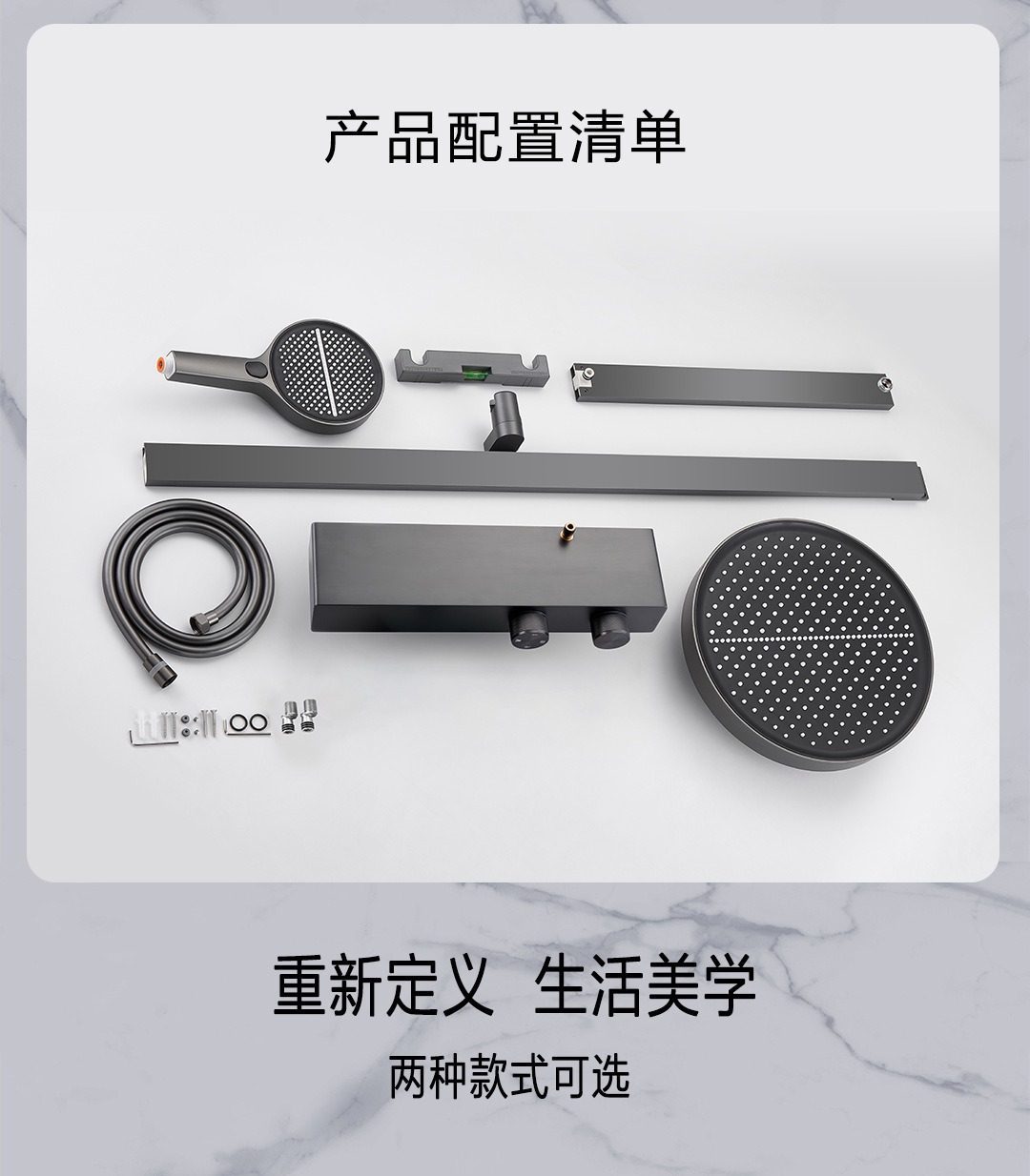 • 37cm 건 그레이 샤워 온도 조절 샤워 세트