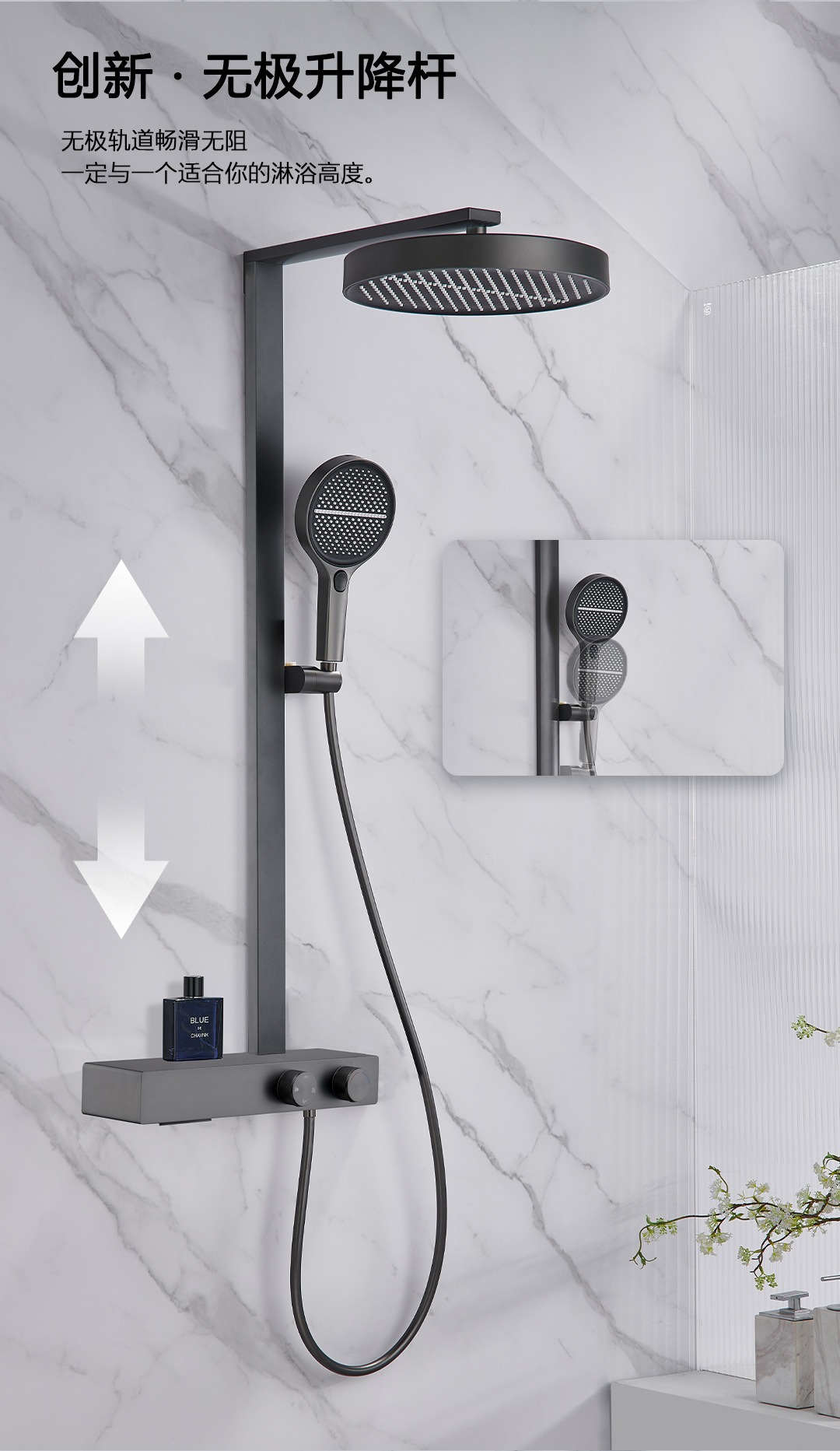 • 45cm 건 그레이 샤워 온도 조절 샤워 세트