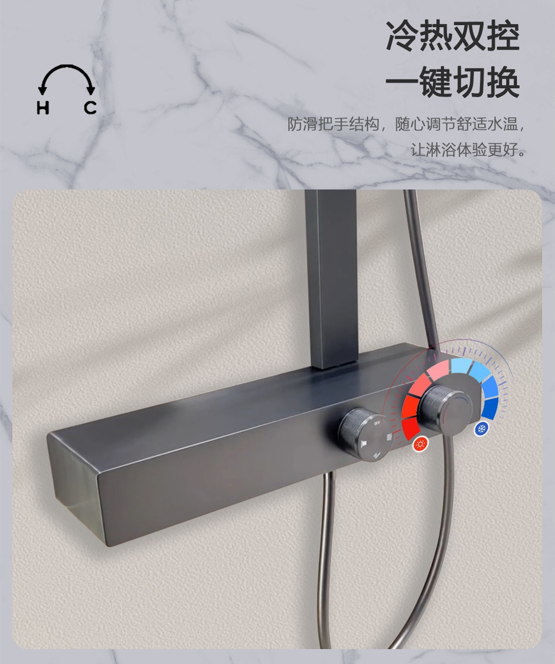 • 62cm 건그레이 샤워 온도 조절 샤워 세트