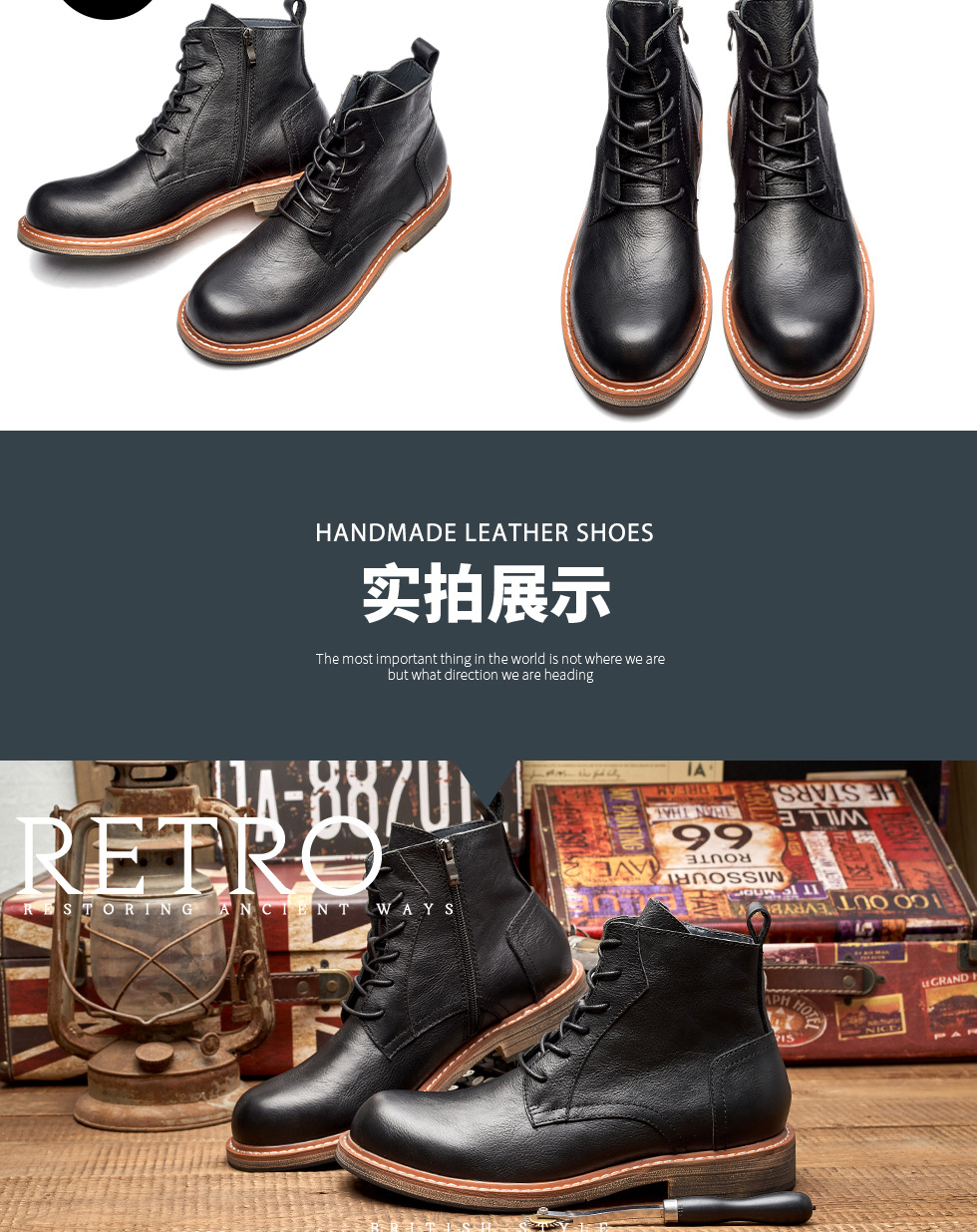 정품 가죽 마틴 부츠 남성용 영국 가죽 부츠 하이탑 가죽 신발 수제 복고풍 부츠 남성용 소가죽 부츠 워크 부츠 짧은 부츠 유행스토어 가기