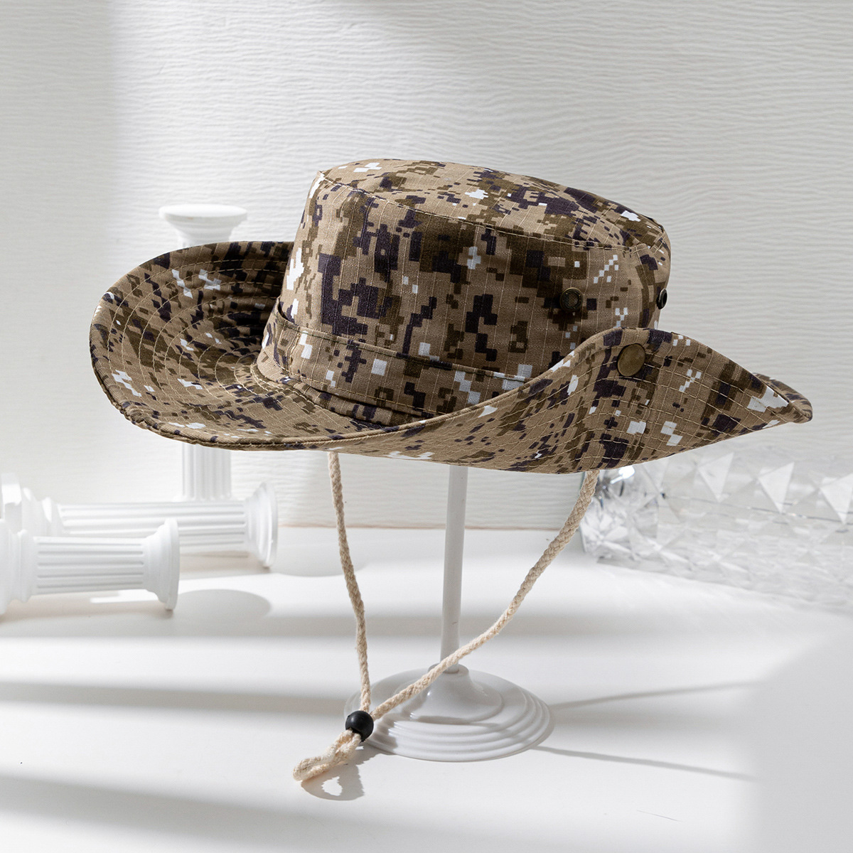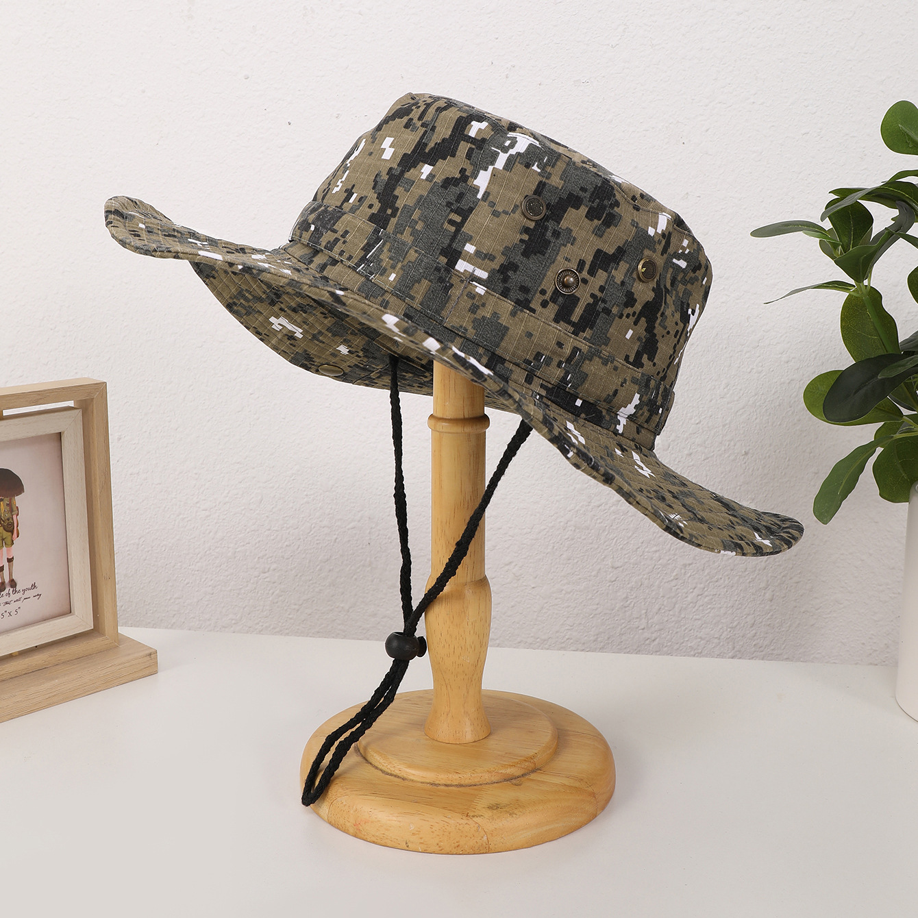迷彩大沿渔夫帽批发男士防风帽子春夏旅游遮阳帽户外登山女防晒帽