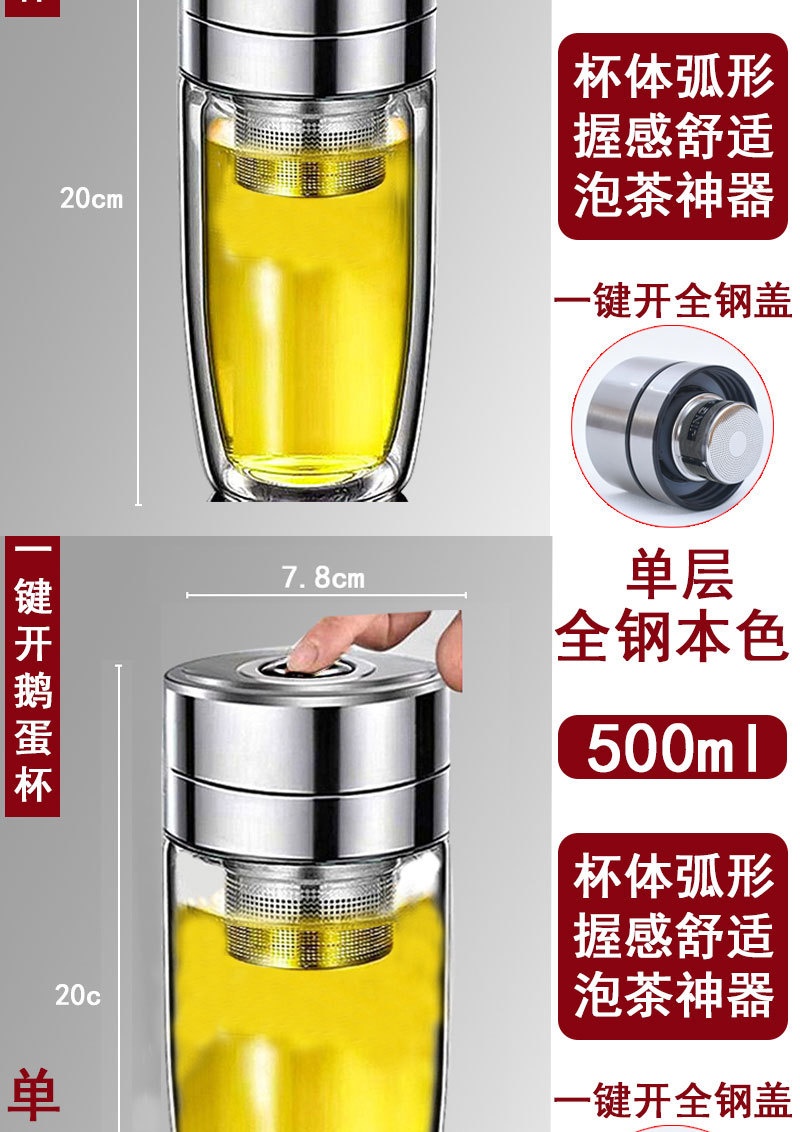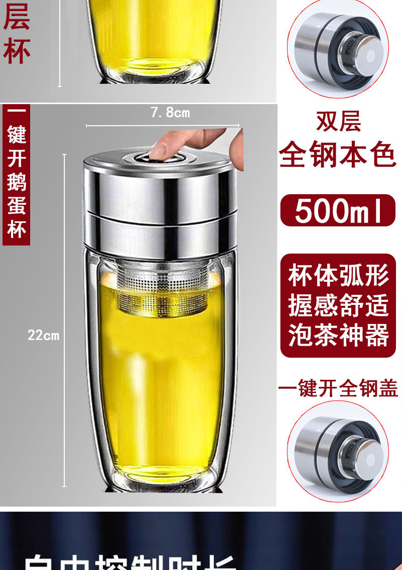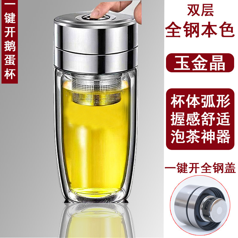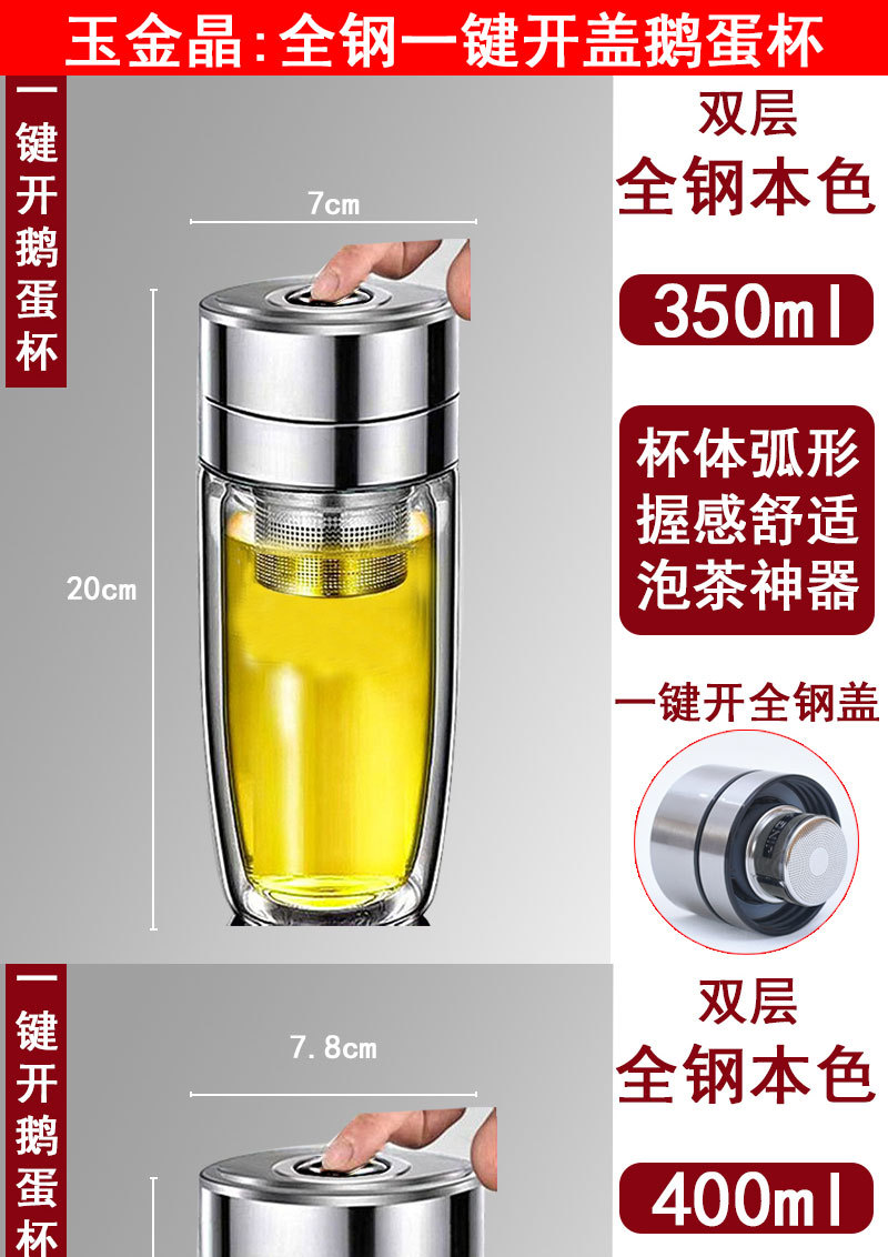 압착 강철 뚜껑 거위 계란 컵 이중층 두꺼운 유리 대용량 휴대용 고온 방지 물 컵 차 자동차 차 컵