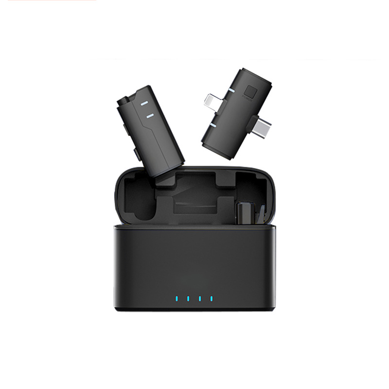 새로운 양방향 무선 라발리에 마이크 야외 라이브 방송 촬영 소음 감소 라디오 마이크 1-2 충전 챔버 포함