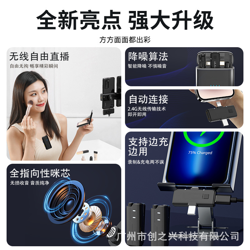 새로운 양방향 무선 라발리에 마이크 야외 라이브 방송 촬영 소음 감소 라디오 마이크 1-2 충전 챔버 포함스토어 가기