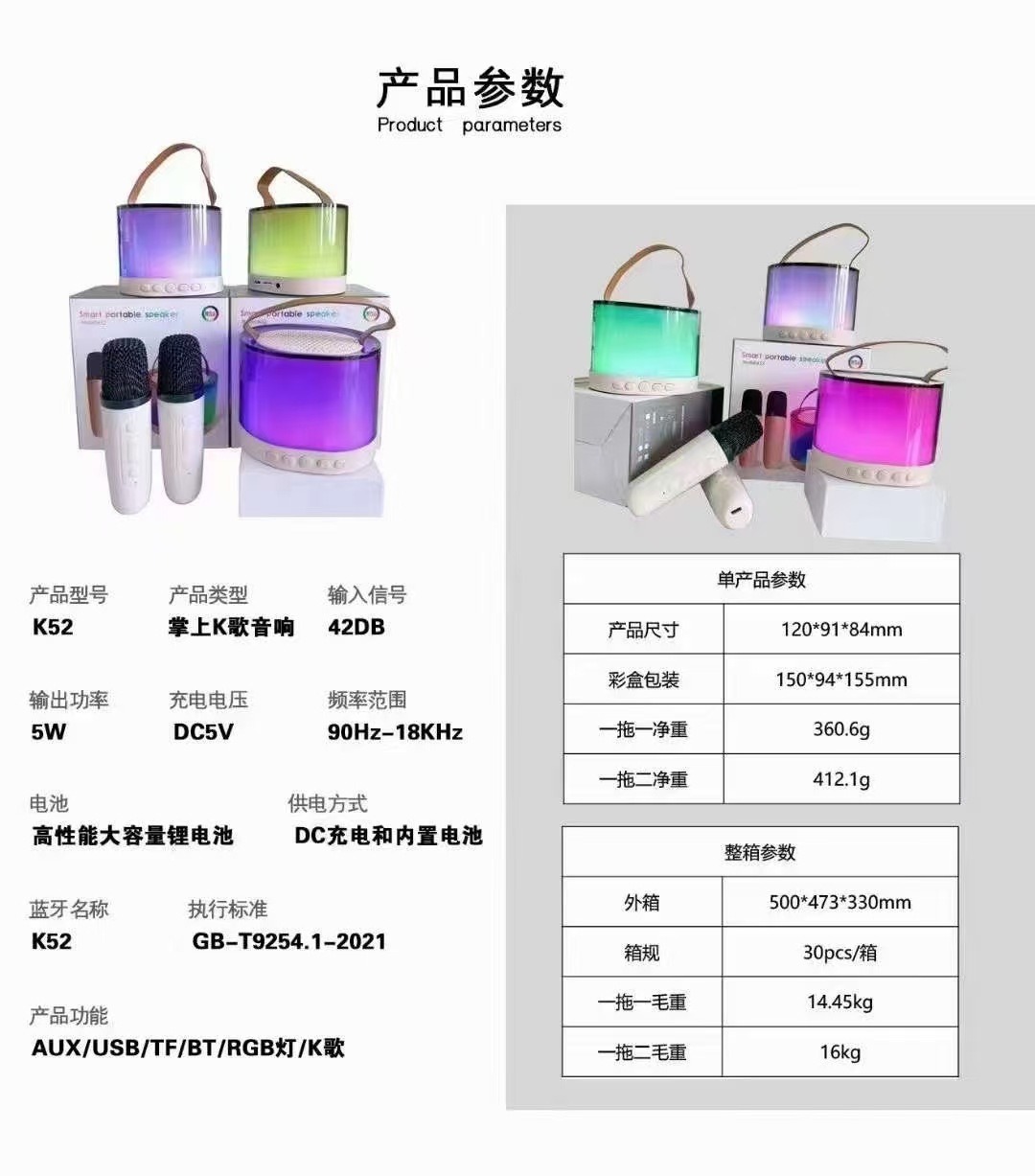 K12 블루투스 노래방 스피커 마이크 오디오 통합 마이크 소형 오디오 고급스러운 분위기 가족 KTV 팬