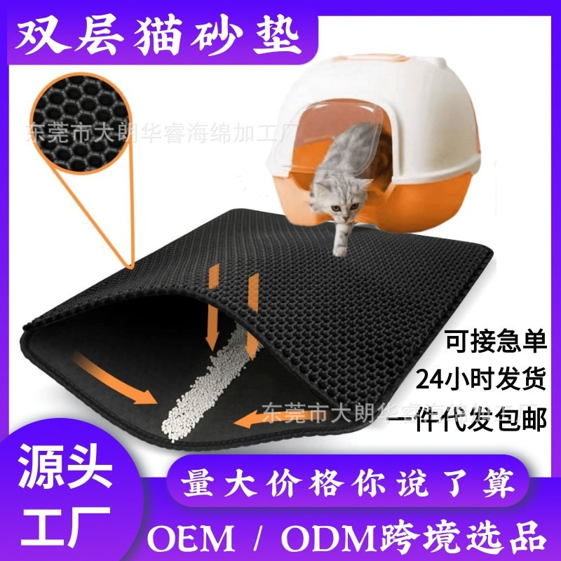 이중층 EVA 고양이 모래 매트, 세탁 가능, 휴대 방지, 물 튀김 방지, 이중층 필터 매트, 고양이 발 매트, 배송 준비 완료