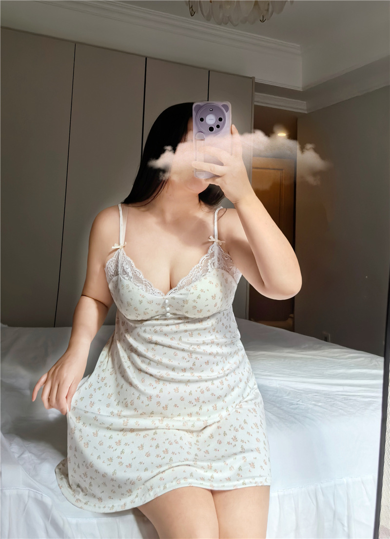 100kg 초대형 사이즈 뚱뚱한 mm 섹시한 느슨한 뜨거운 잠옷 여성 여름 뚱뚱한 mm 슬리밍 딥 V 서스펜더 스커트 잠옷 1533스토어 가기