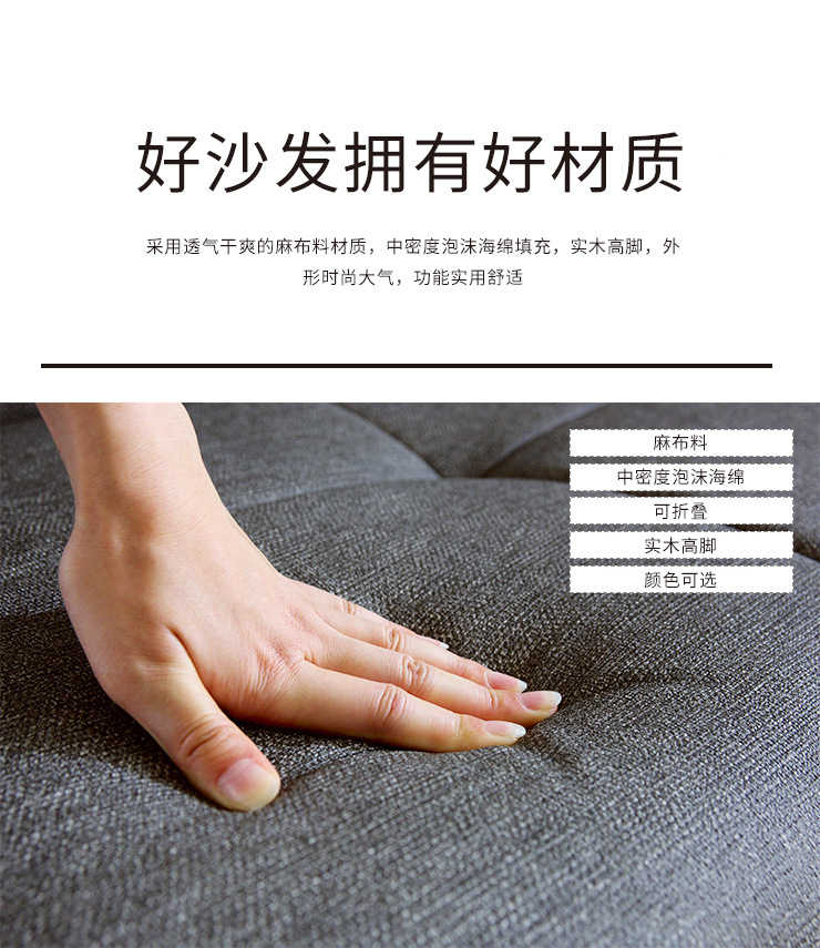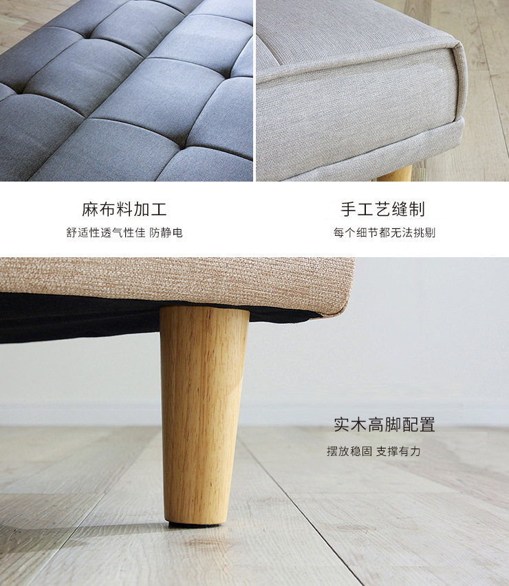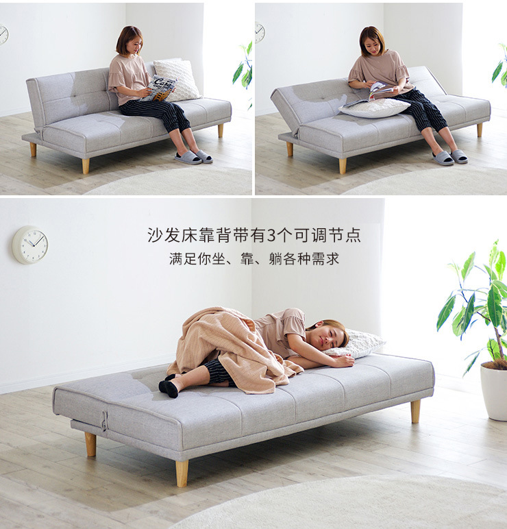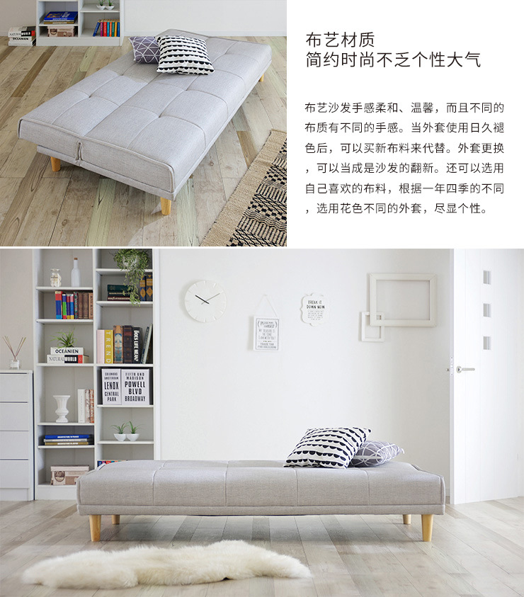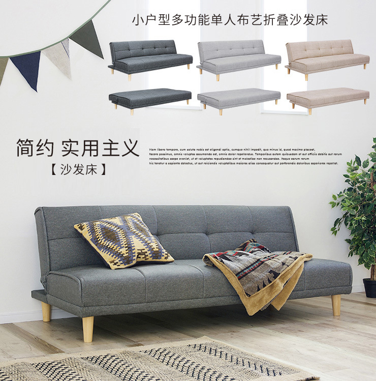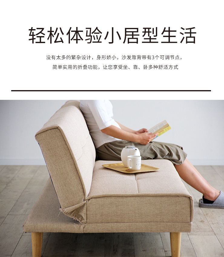 맞춤형 일본식 라이트 럭셔리 접이식 패브릭 소파 거실 작은 아파트 게으른 소파 침대 단단한 나무