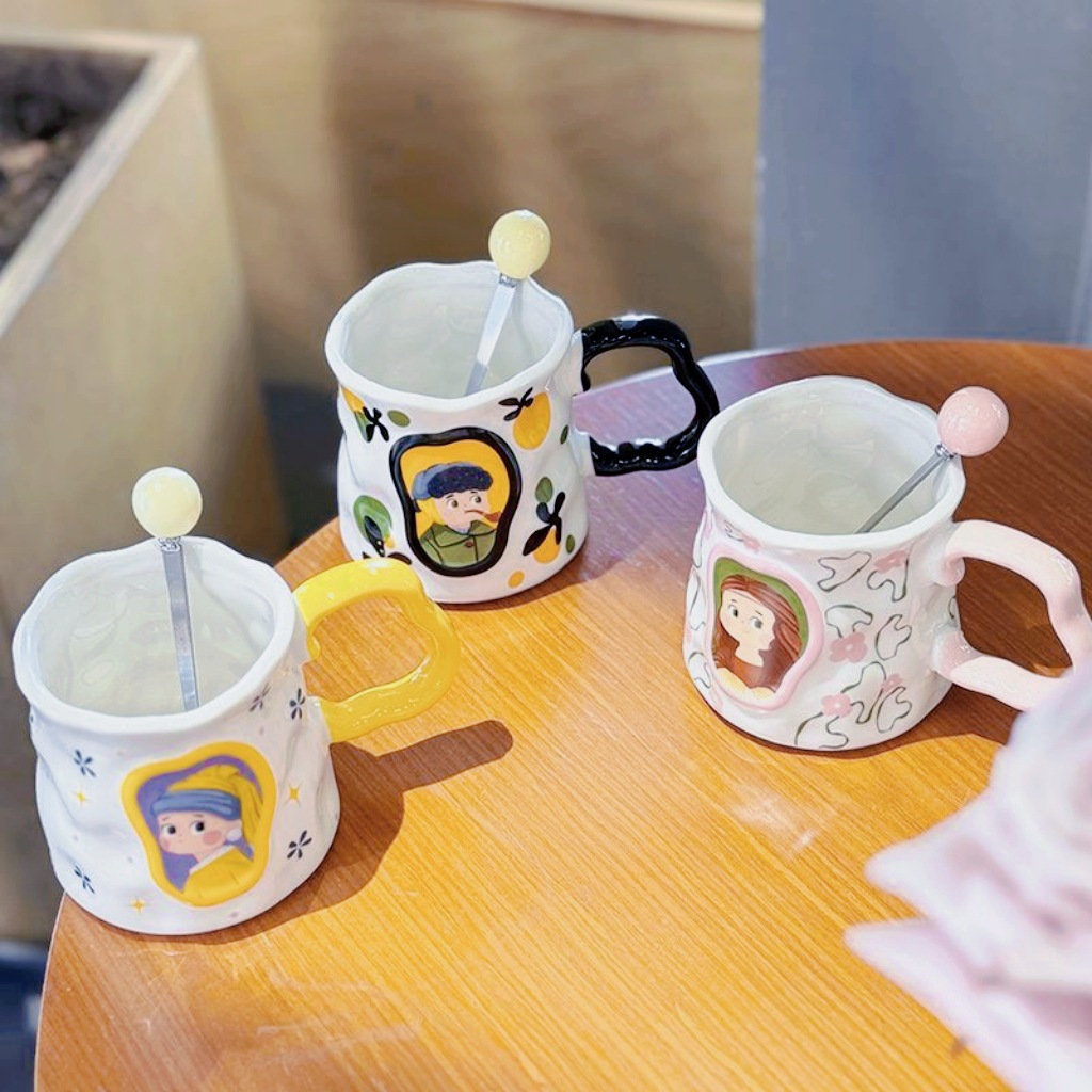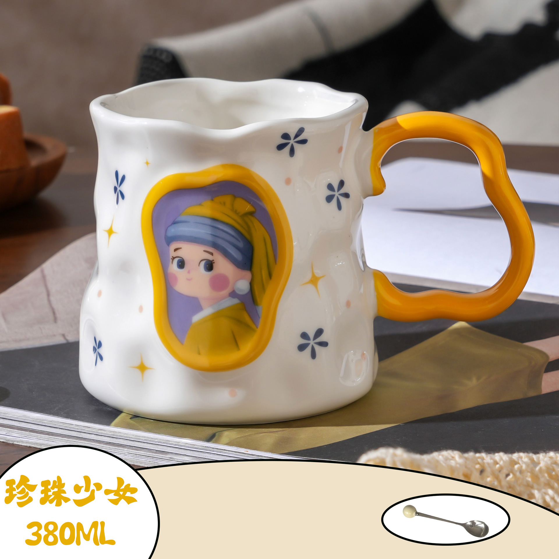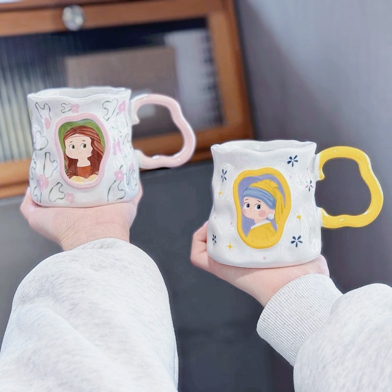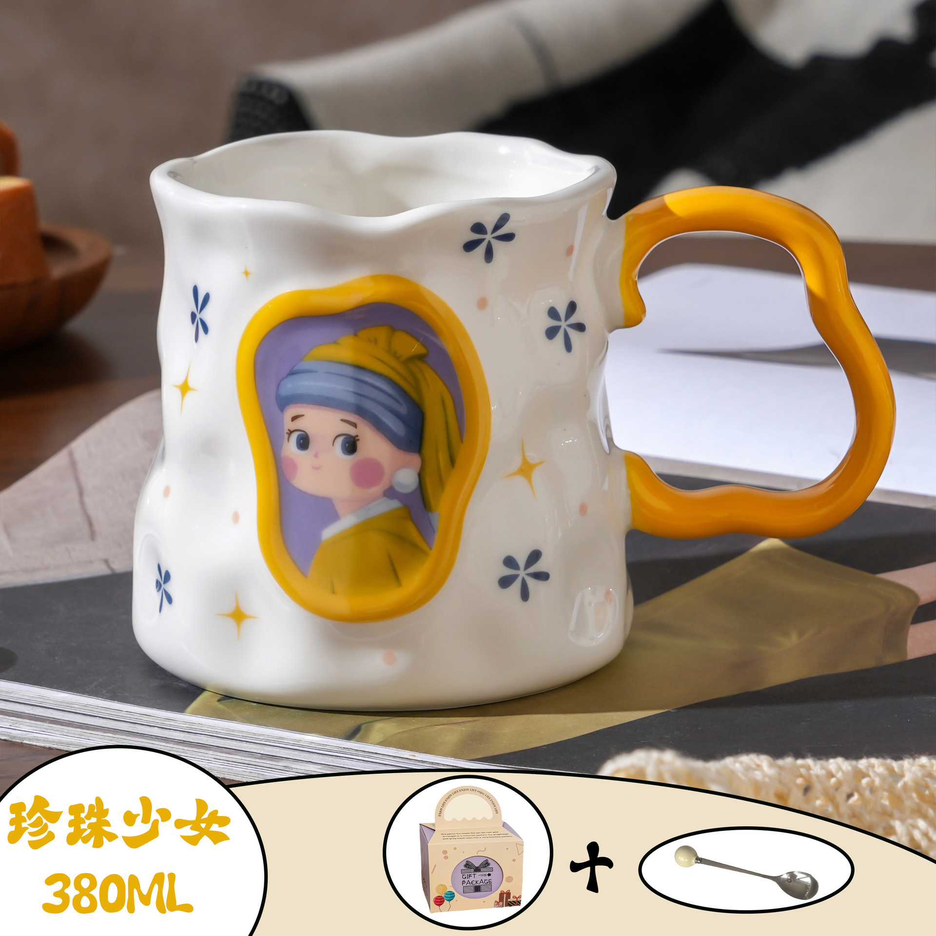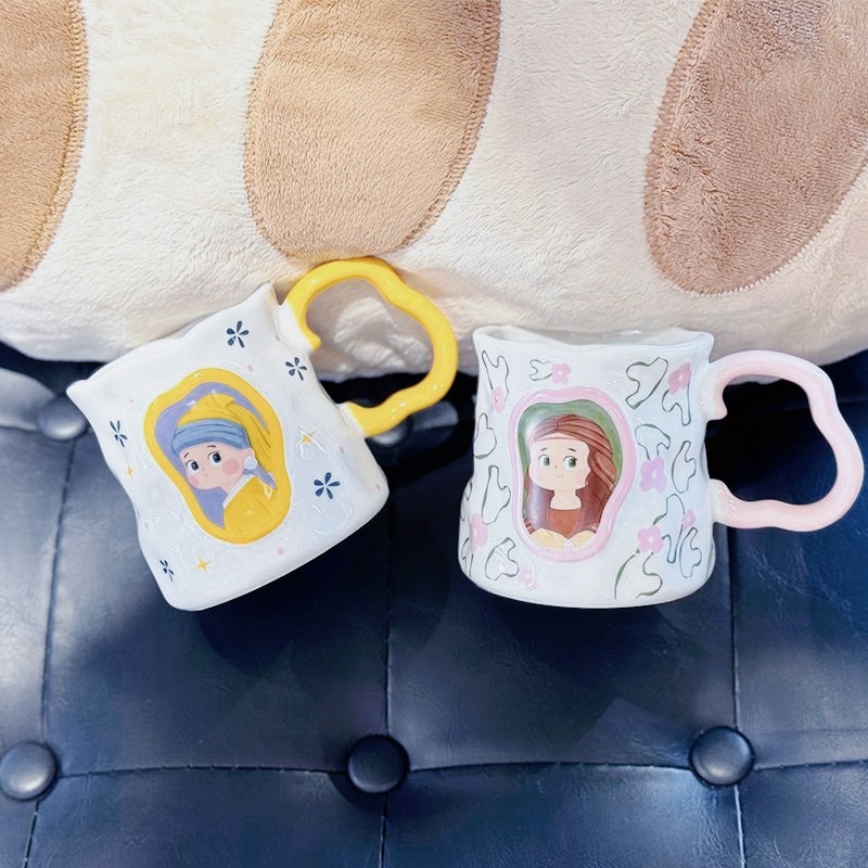 레트로 귀여운 소녀 머그잔 세라믹 홈 컵 소녀의 멋진 물 컵 기념품 크로스 보더 커피 컵