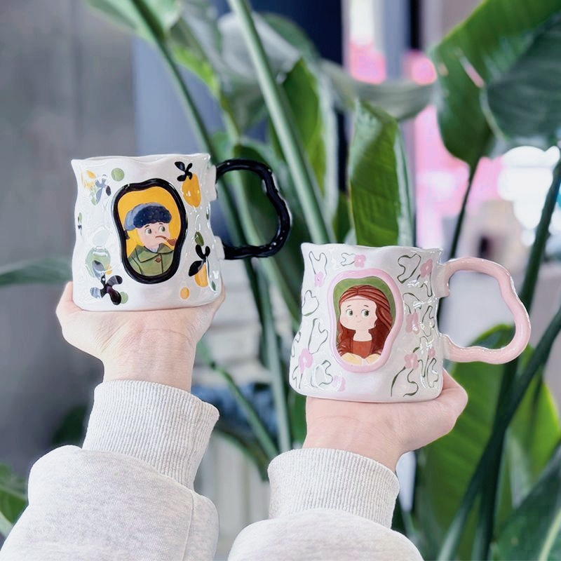 레트로 귀여운 소녀 머그잔 세라믹 홈 컵 소녀의 멋진 물 컵 기념품 크로스 보더 커피 컵스토어 가기