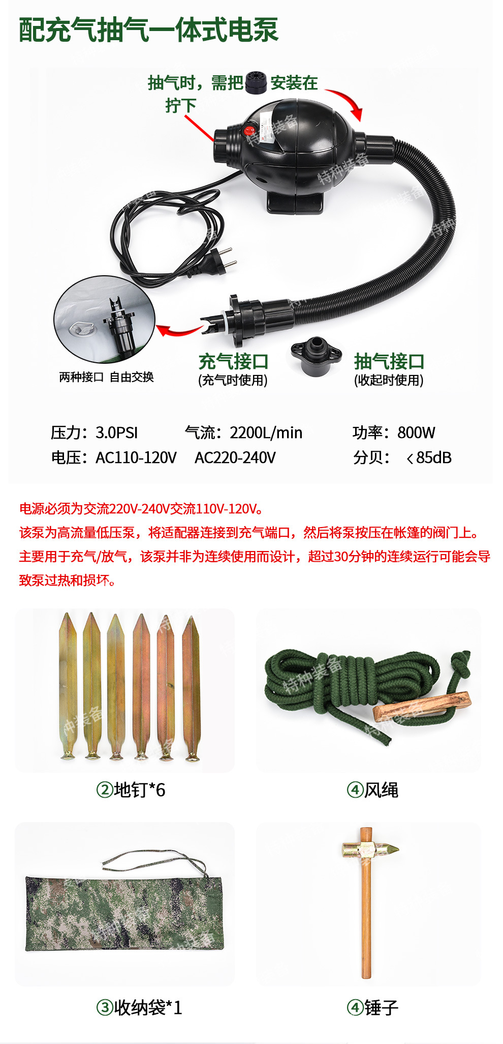 야외 풍선 텐트 이어룸 텐트 위장 무료 설치 편리한 4*6(24평방미터) 전기 펌프 포함스토어 가기
