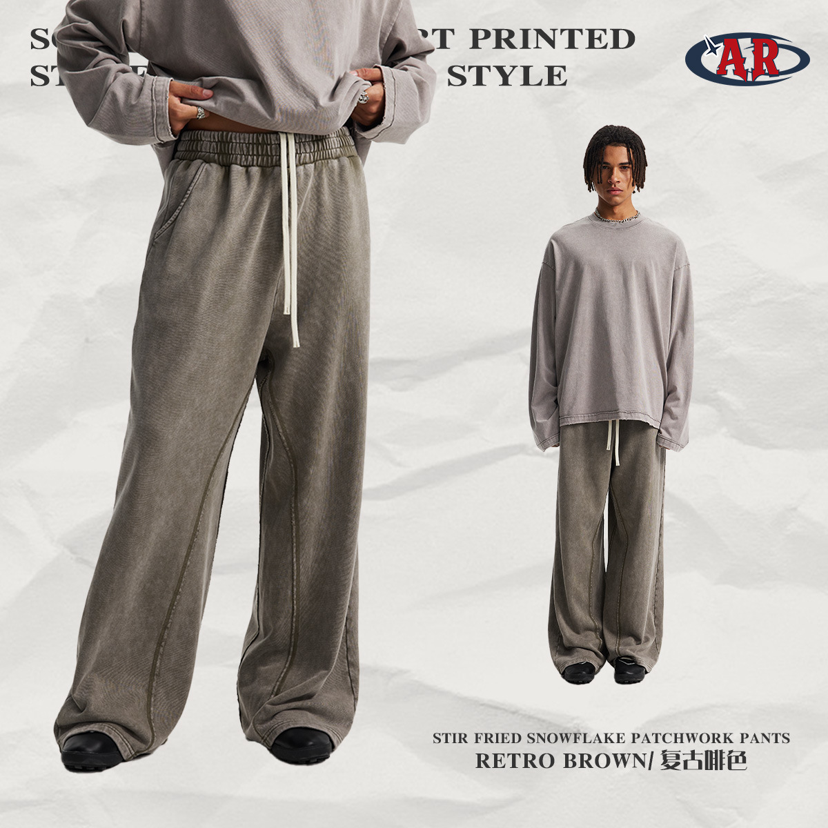2025 아메리칸 스타일 테리 루즈 레트로 눈꽃 무늬 와이드 레그 남성 바지 트렌디 브랜드 루즈 엣지 스포츠 남성 캐주얼 바지