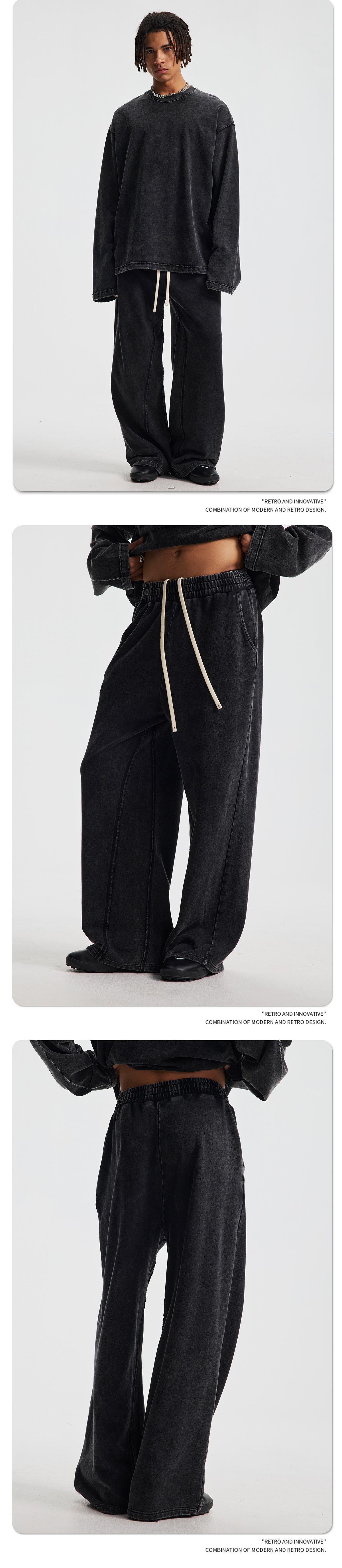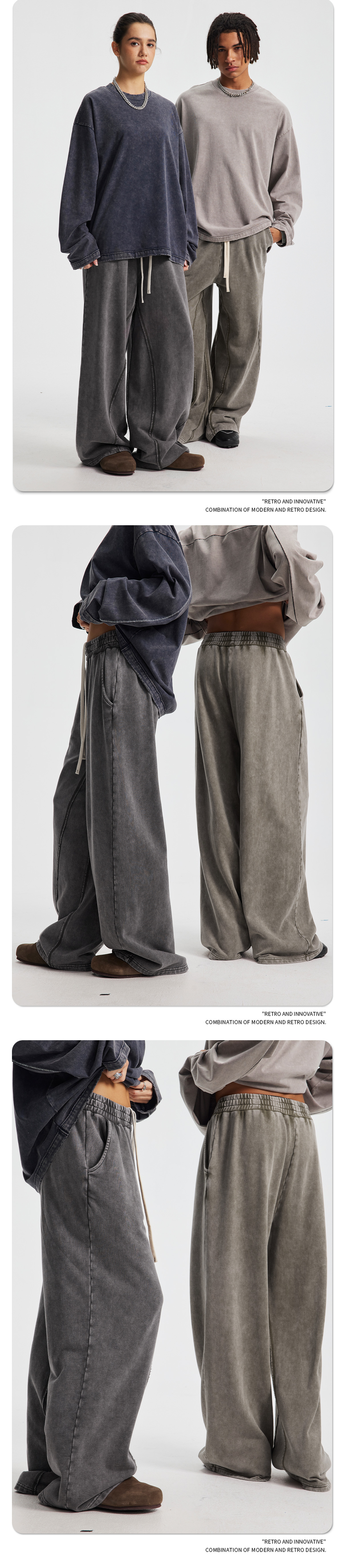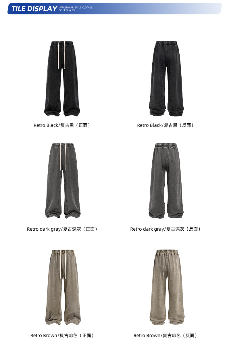 2025 아메리칸 스타일 테리 루즈 레트로 눈꽃 무늬 와이드 레그 남성 바지 트렌디 브랜드 루즈 엣지 스포츠 남성 캐주얼 바지스토어 가기