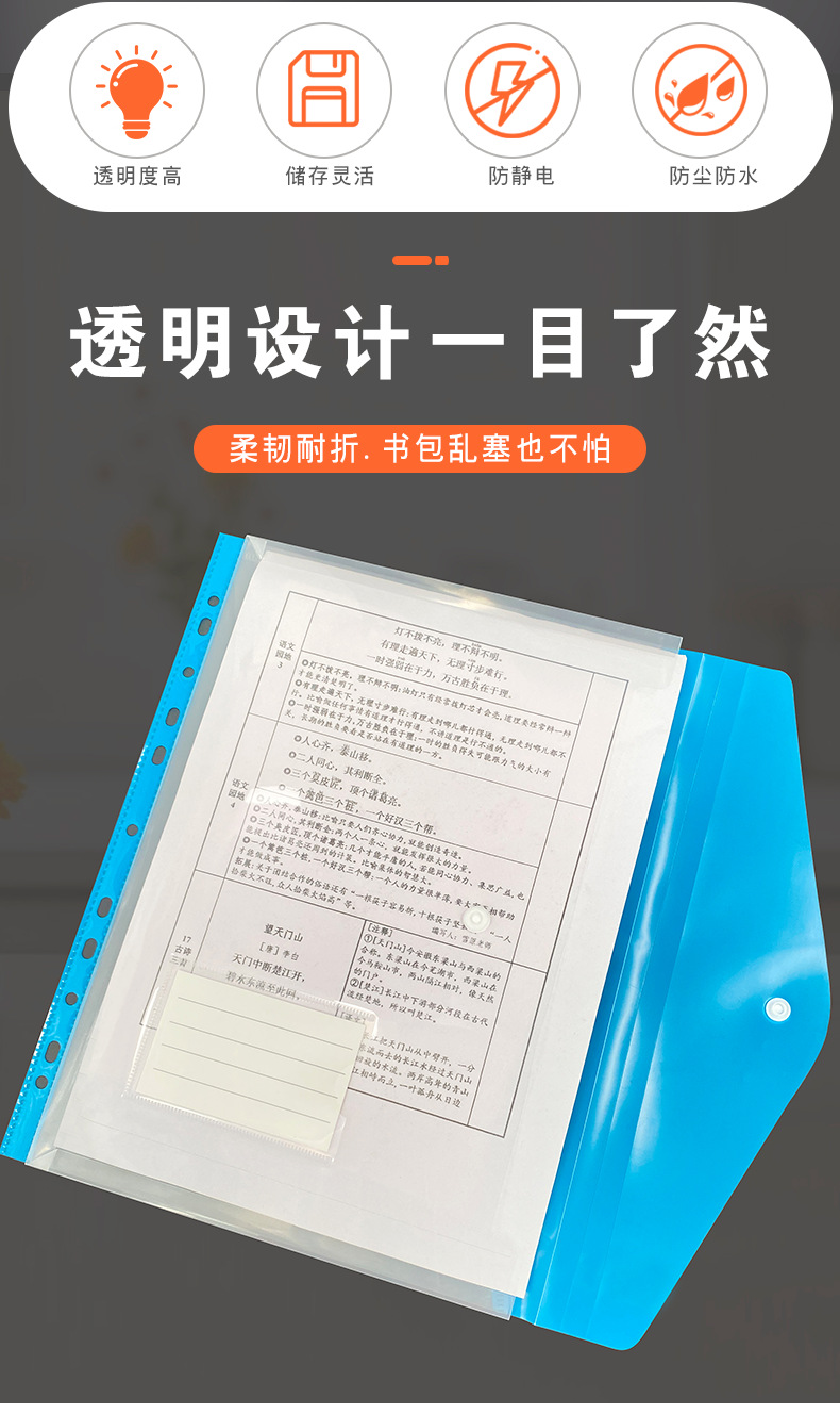 입체 11홀 루스리프 컬러 A4 분류 버튼 파일백 수납백 학생 시험지 정리백 해외배송