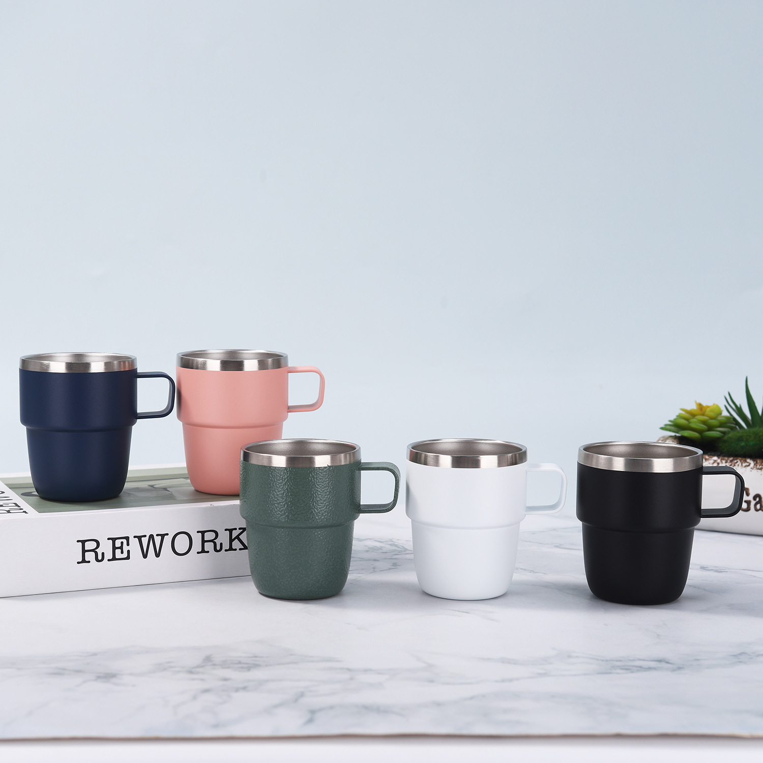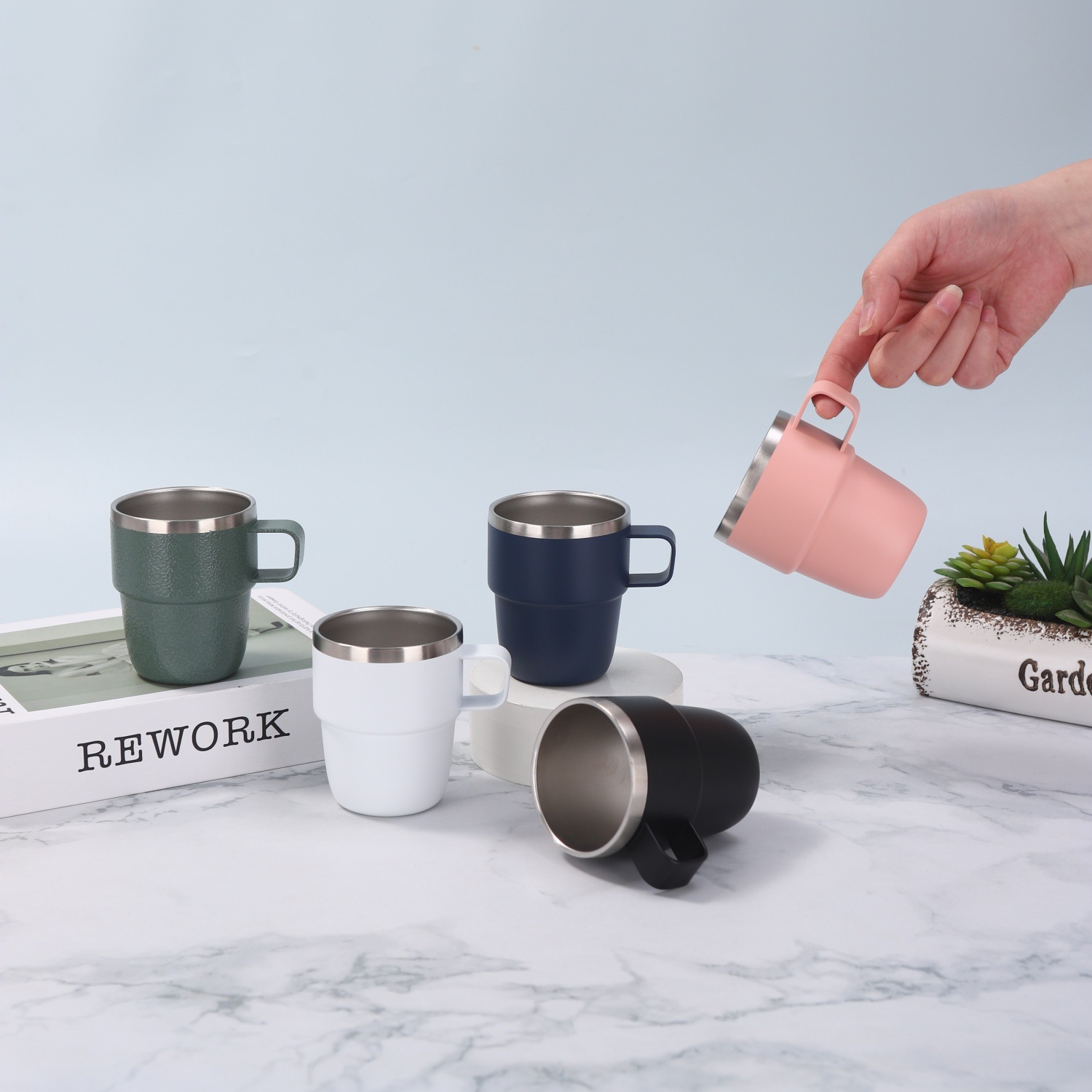 국경 간 304 스테인레스 스틸 이중층 진공 절연 컵 홈 오피스 커피 컵 캠핑 머그잔 손잡이 포함