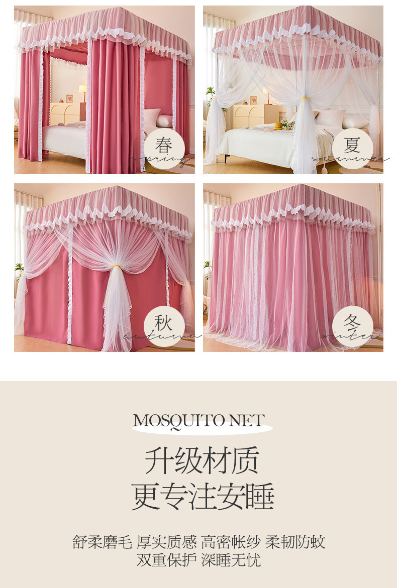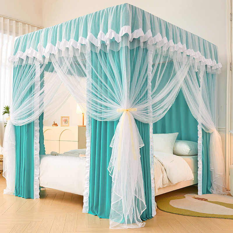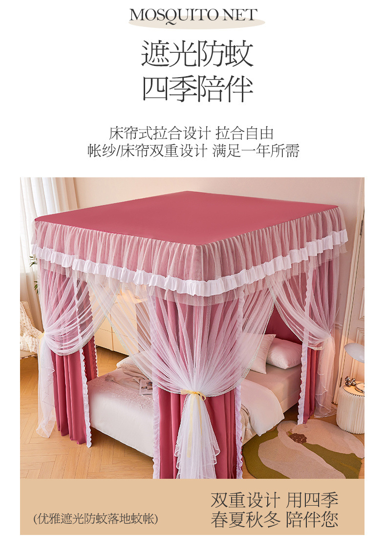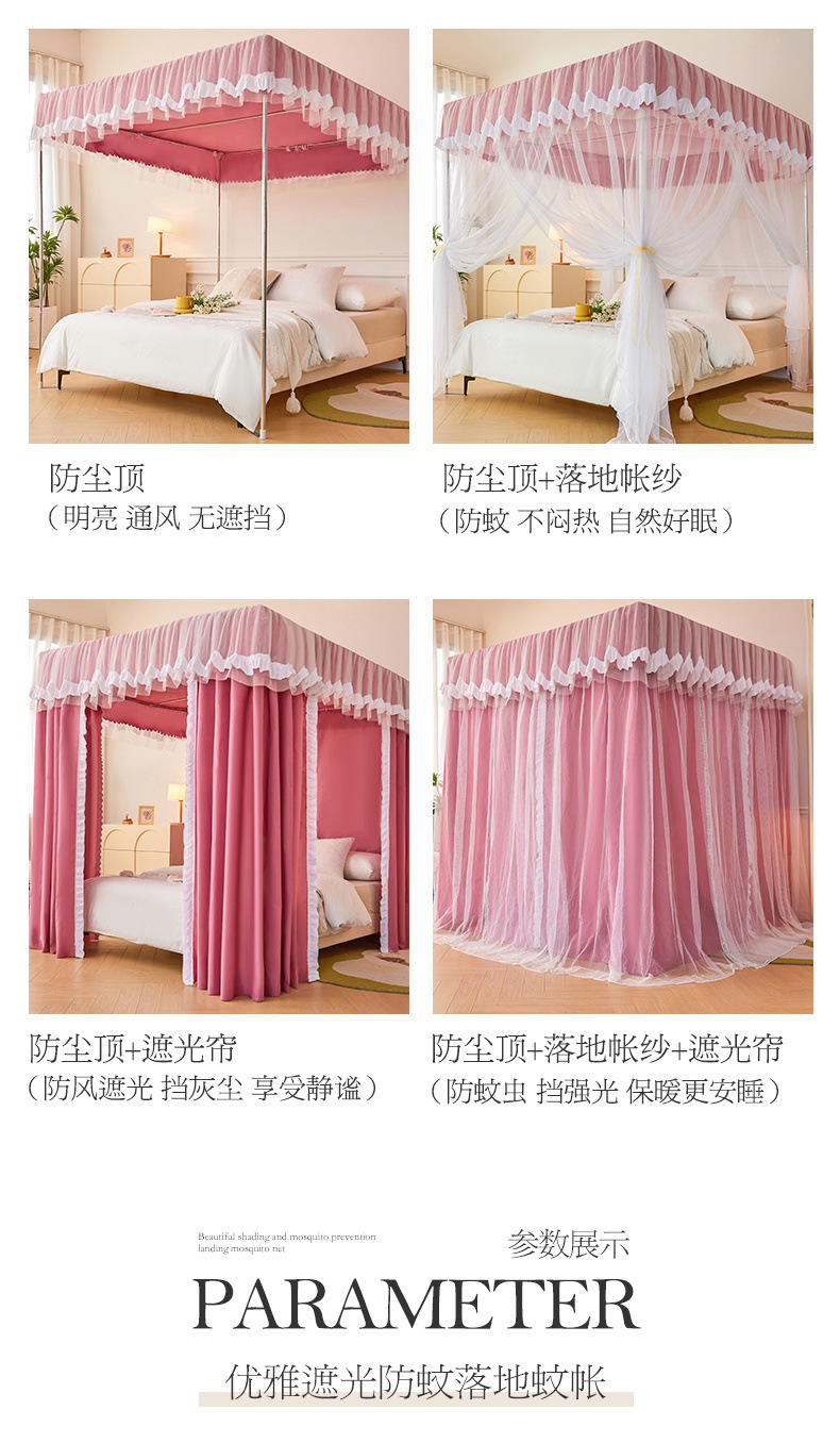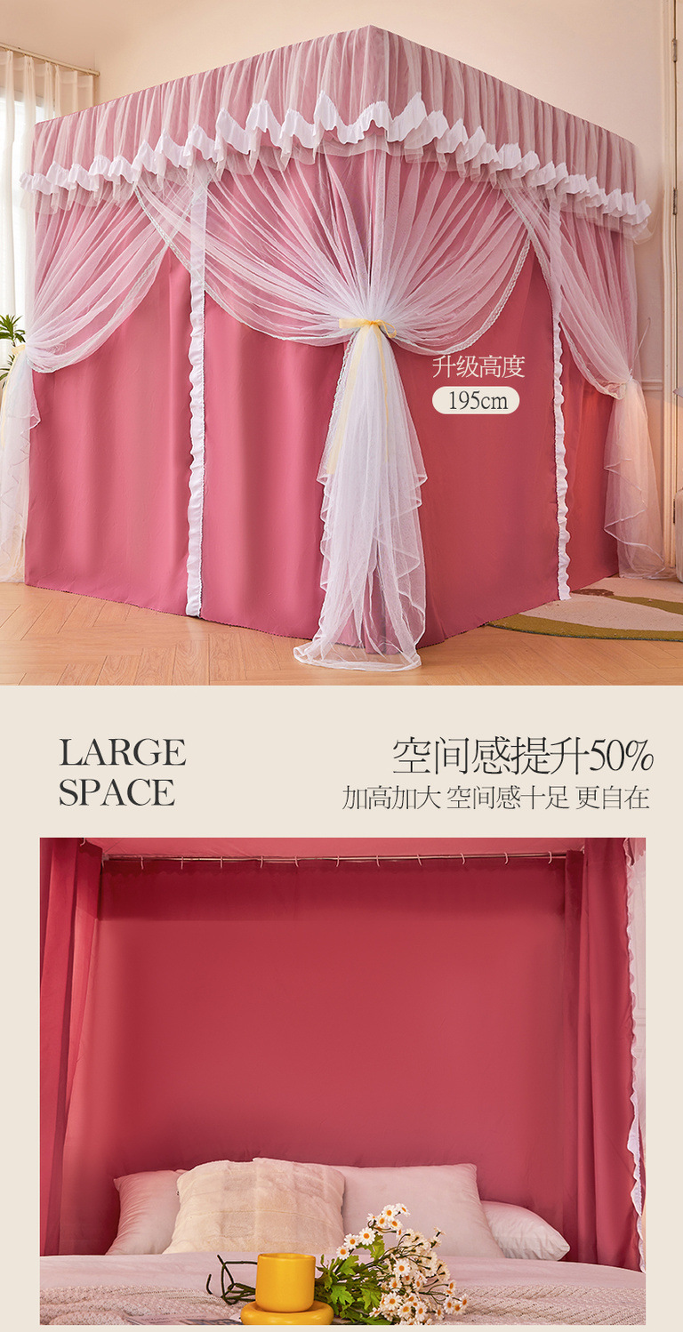 가정용 모기장과 침대 커튼 일체형 공주풍 차광 및 방진 침대 커튼 암호화 및 두꺼운 3도어 모기장