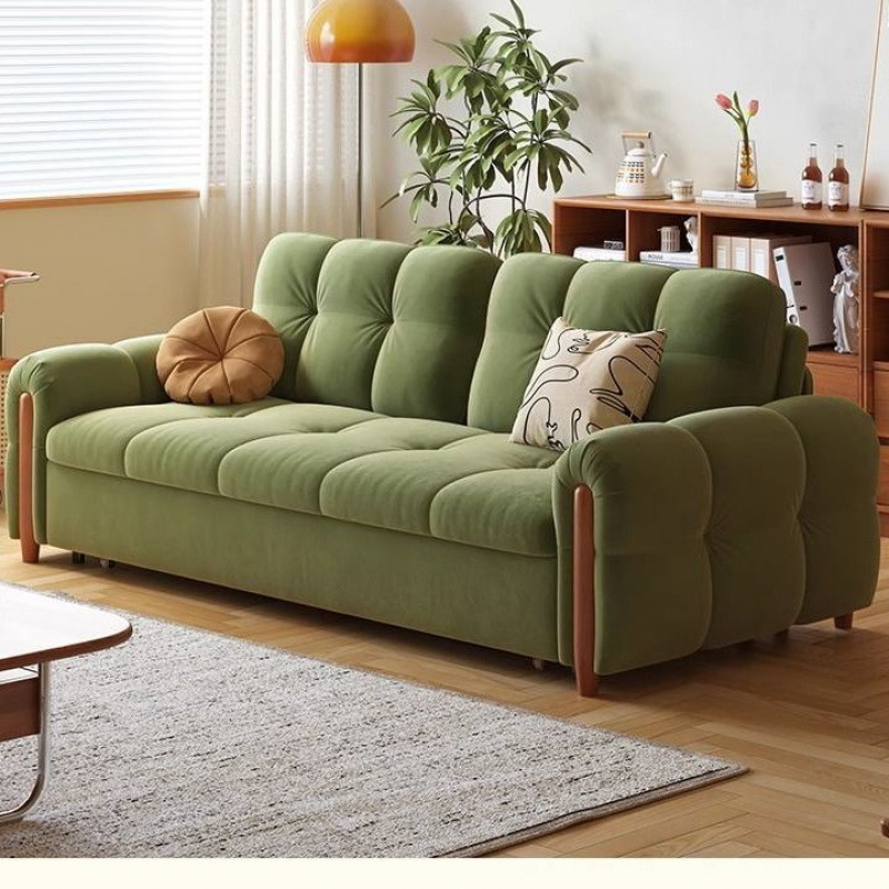 작은 아파트 솔방울 소파 침대 가정용 다기능 접이식 수납 이중 목적 소파 로그 크림 스타일 소파 침대